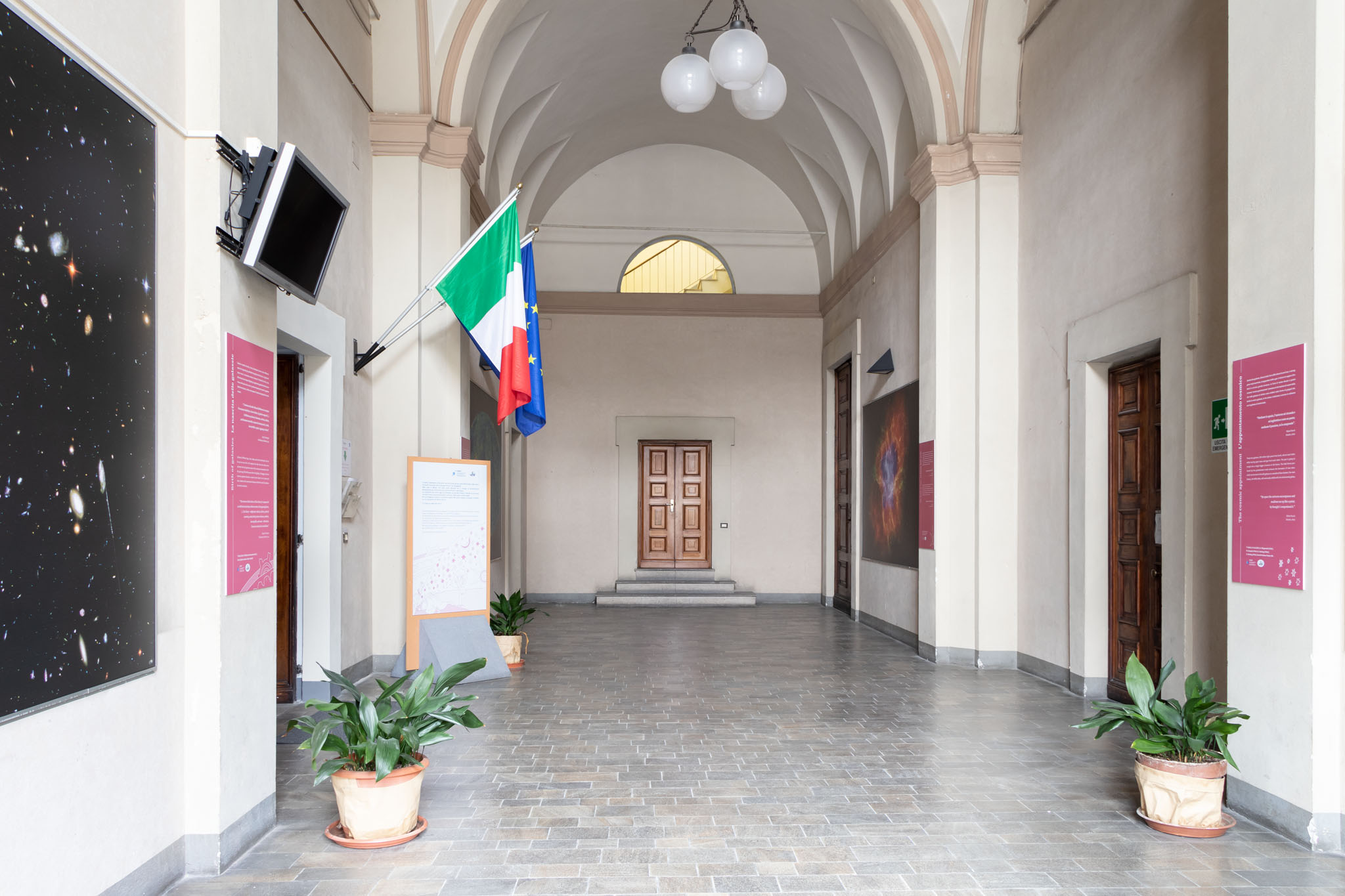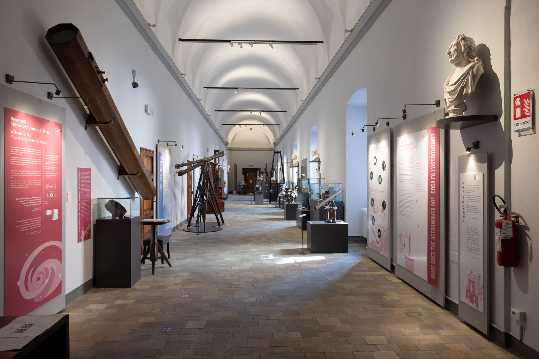 Dal portone d'ingresso dell'Osservatorio si accede alla galleria del Museo astronomico, in cui sono esposti gli strumenti scientifici usati dai ricercatori dell'Osservatorio Astronomico di Brera nei suoi 250 anni di storia. La galleria funge anche da corridoio di comunicazione con il resto dell'Osservatorio, in quanto ai suoi lati si aprono le porte che conducono alla portineria, ai locali dell'amministrazione, all'auletta dei seminari e alla scala che porta ai piani superiori, dove si trovano gli studi dei ricercatori, la cupola a fiore e la cupola Schiaparelli.