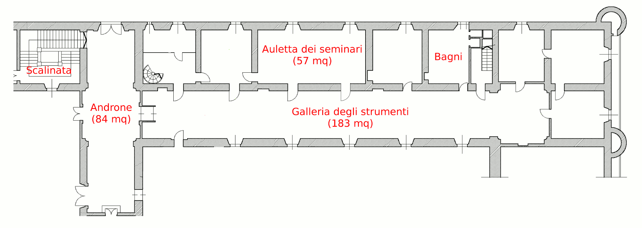 L'auletta dei seminari è una stanza adibita a lezioni, conferenze e incontri. È dotata di lavagna (tradizionale, di ardesia) e di videoproiettore con relativo schermo motorizzato. Vi si accede da due porte poste circa alla metà della galleria degli strumenti.