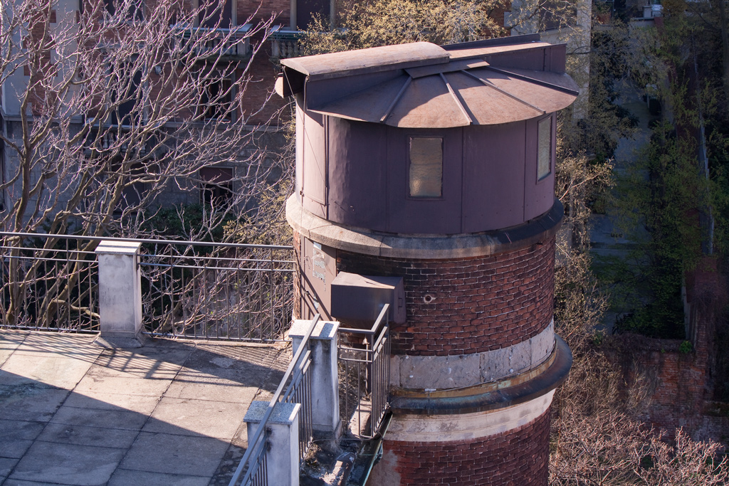 La Cupola Schiaparelli, fatta costruire da Virginio Schiaparelli sulla torretta nord-est dell'Osservatorio (dove in precedenza si trovava il telescopio riflettore di Amici) per installarvi il telescopio rifrattore Merz da 22 cm. Appena a destra della cupola si vede il campanile della chiesa di San Marco.