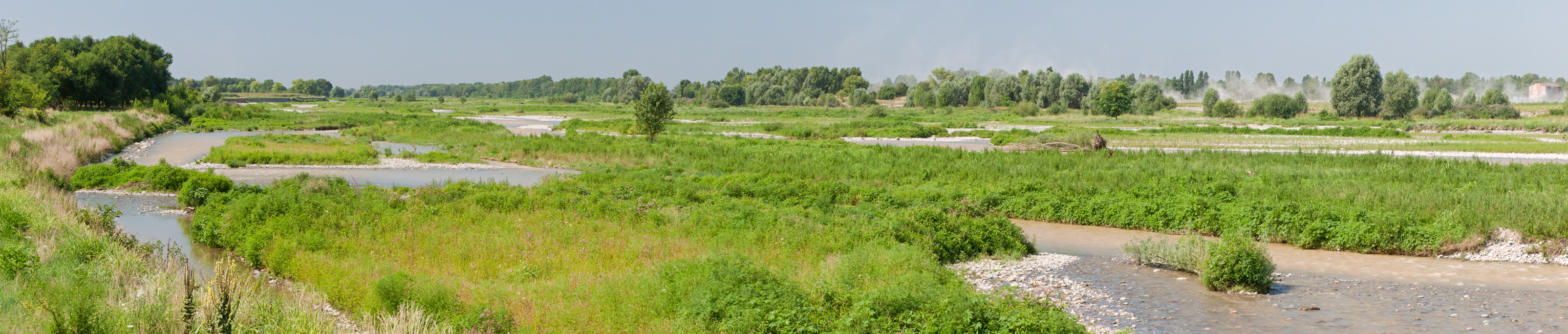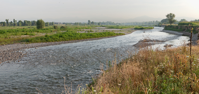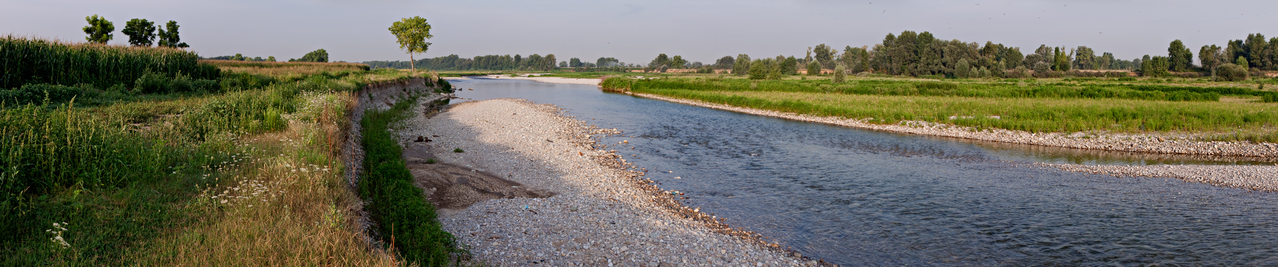 Il Serio nei pressi di Martinengo; l'acqua del fiume è intorbidita da lavori di scavo nel greto che sono in corso poco più a monte.