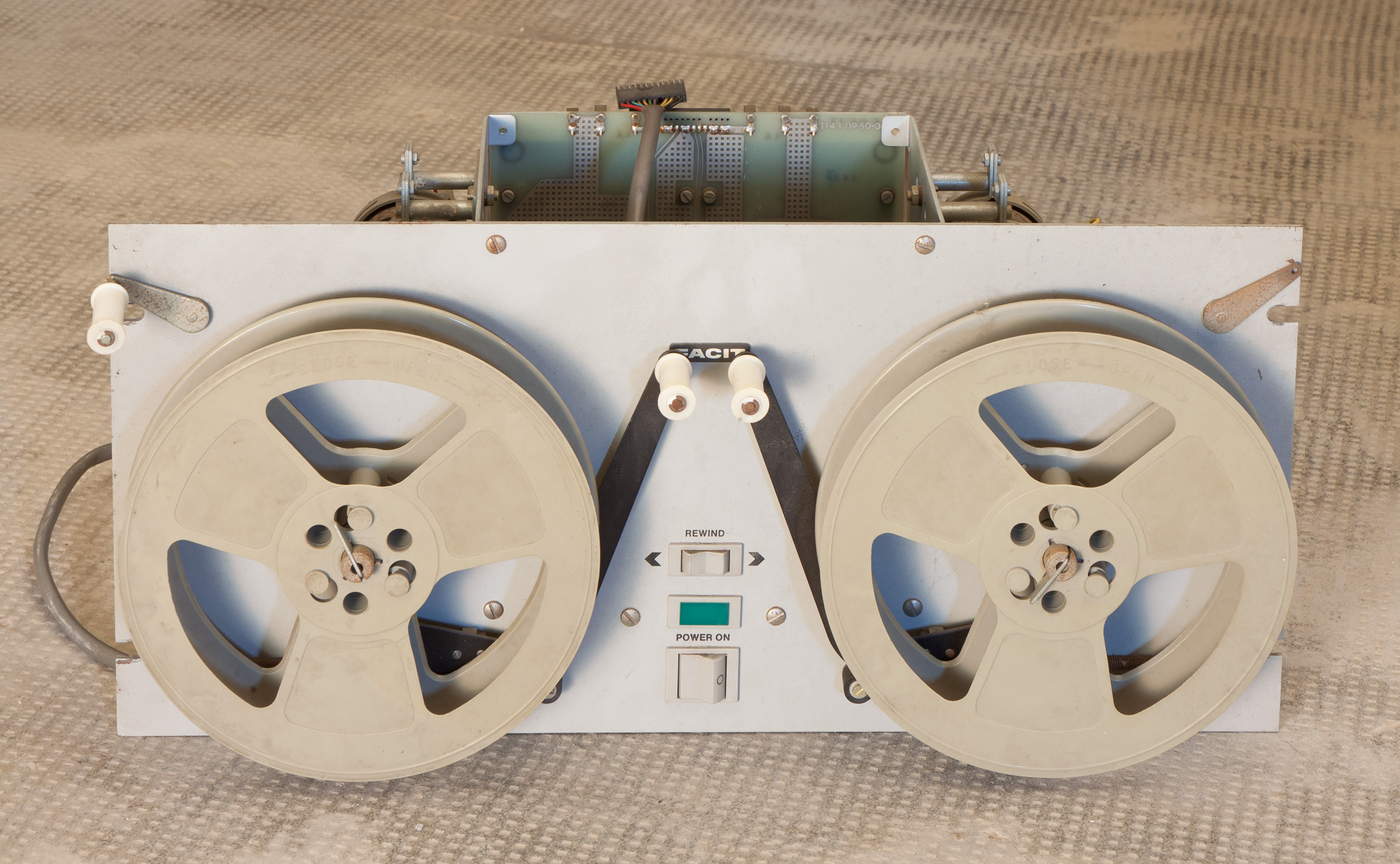 FACIT (Sweden) | Abbastanza buono. | M506 | Probabilmente si tratta di un lettore di nastro di carta perforato a 8 tracce. Fotografare l'etichetta sul retro della parte A (testina di lettura). Fotografare i due pezzi sovrapposti. | ||