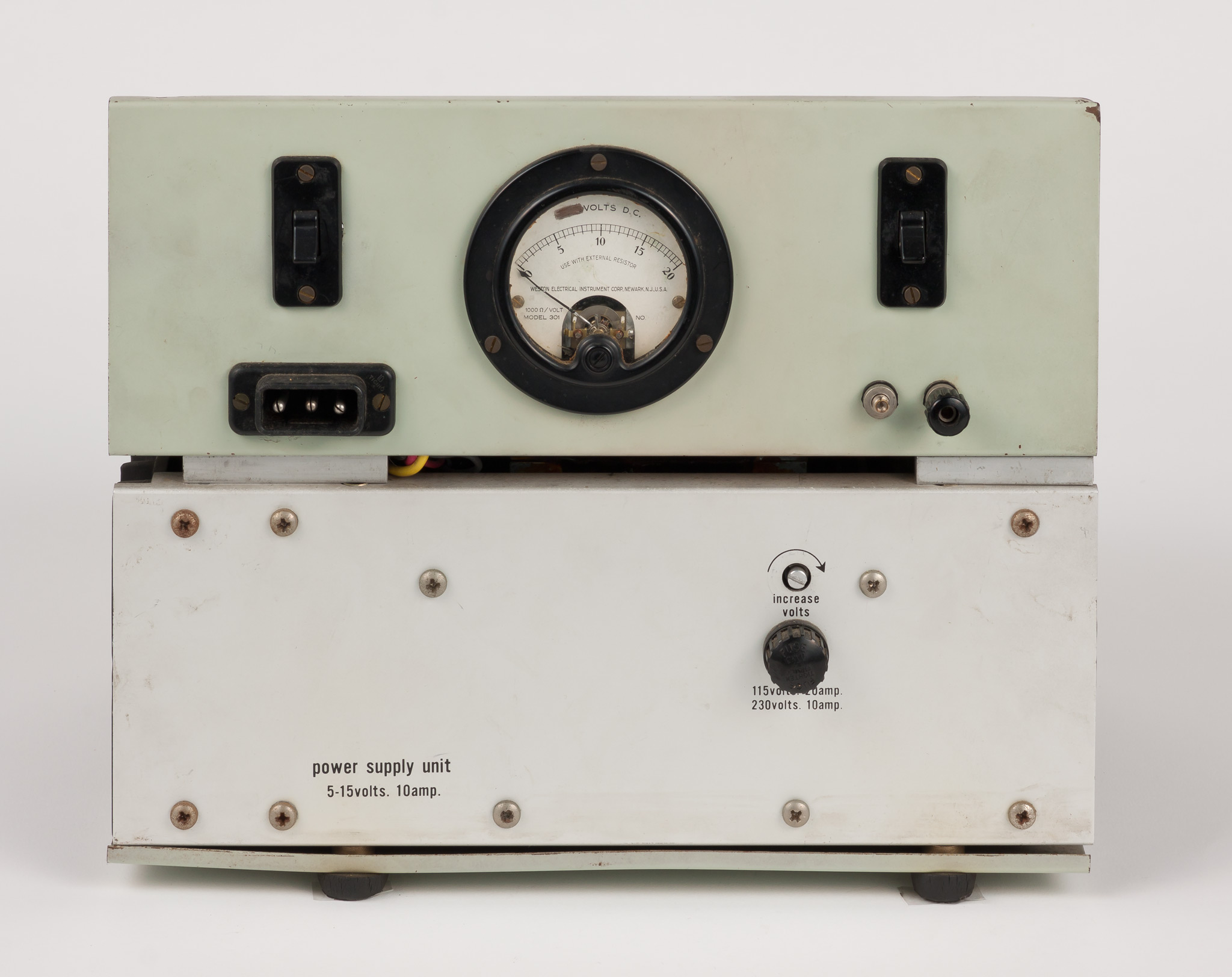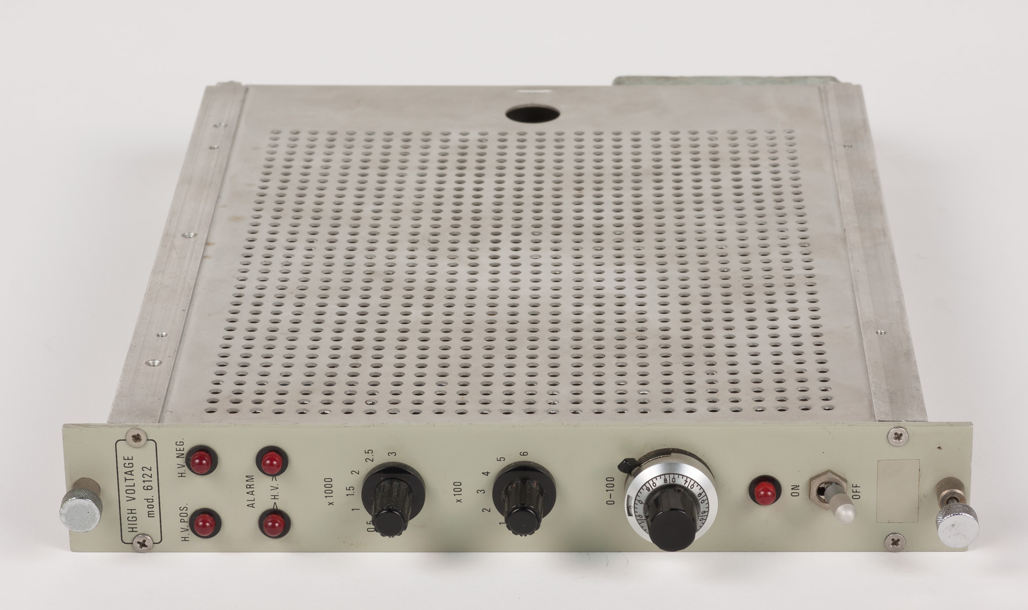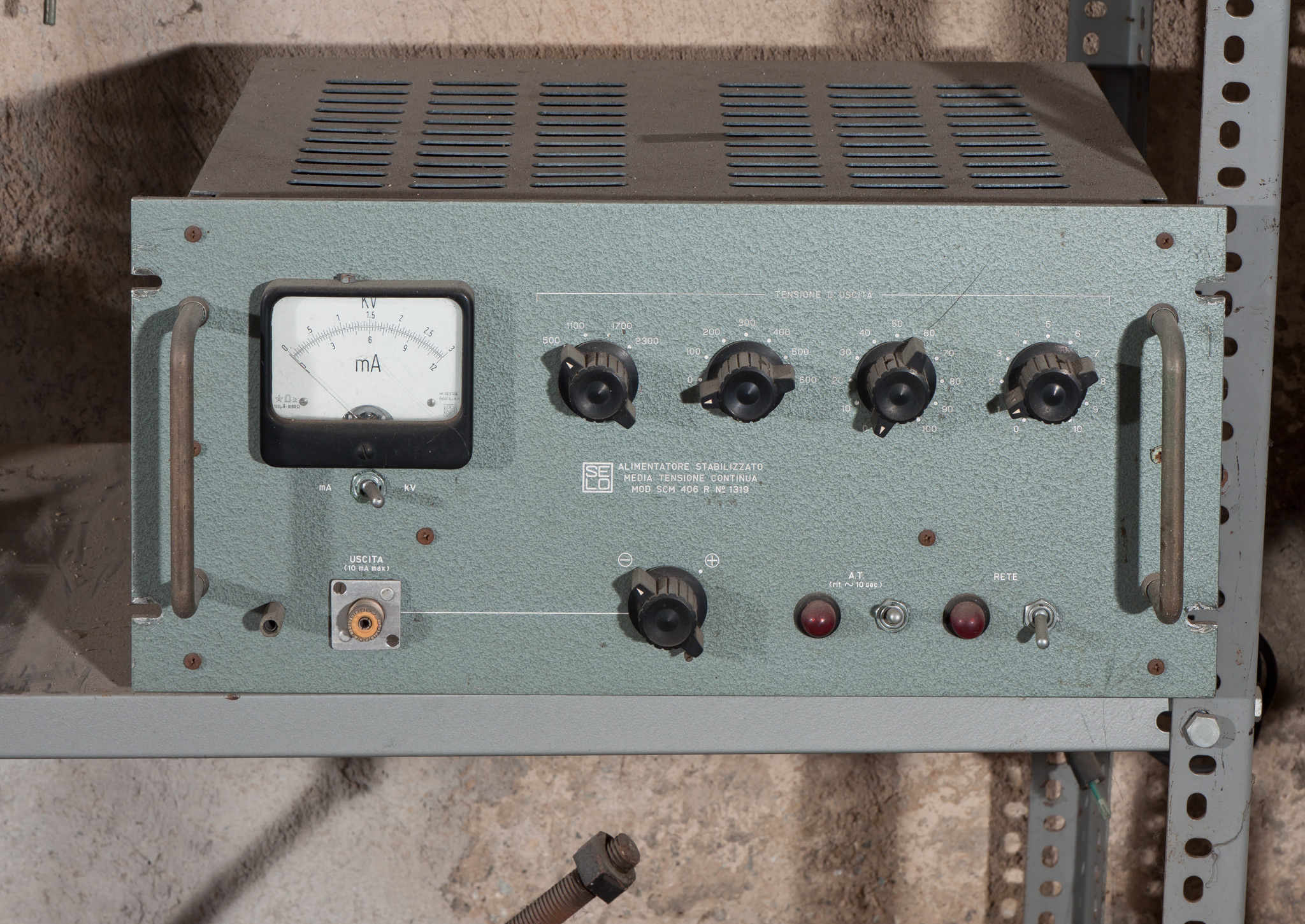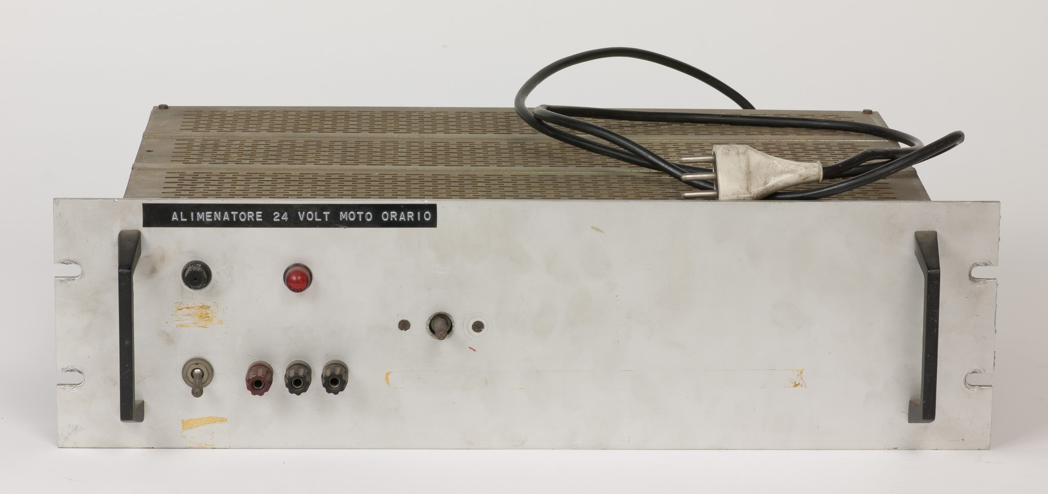 Alimentatore CC Hewlett Packard 6268A | 48(w) ☓ 47(p) ☓ 17.6(h) | Hewlett Packard (Böblingen, West Germany) | 1969 o 1971 | Buono. | M701 | Compare anche nella fotografia del Centro di Cronometria di Merate fornita da Mazzoleni (POS7B). Forse un esemplare era usato nel Centro di Cronometria e l'altro nel laboratorio di elettronica. | |
