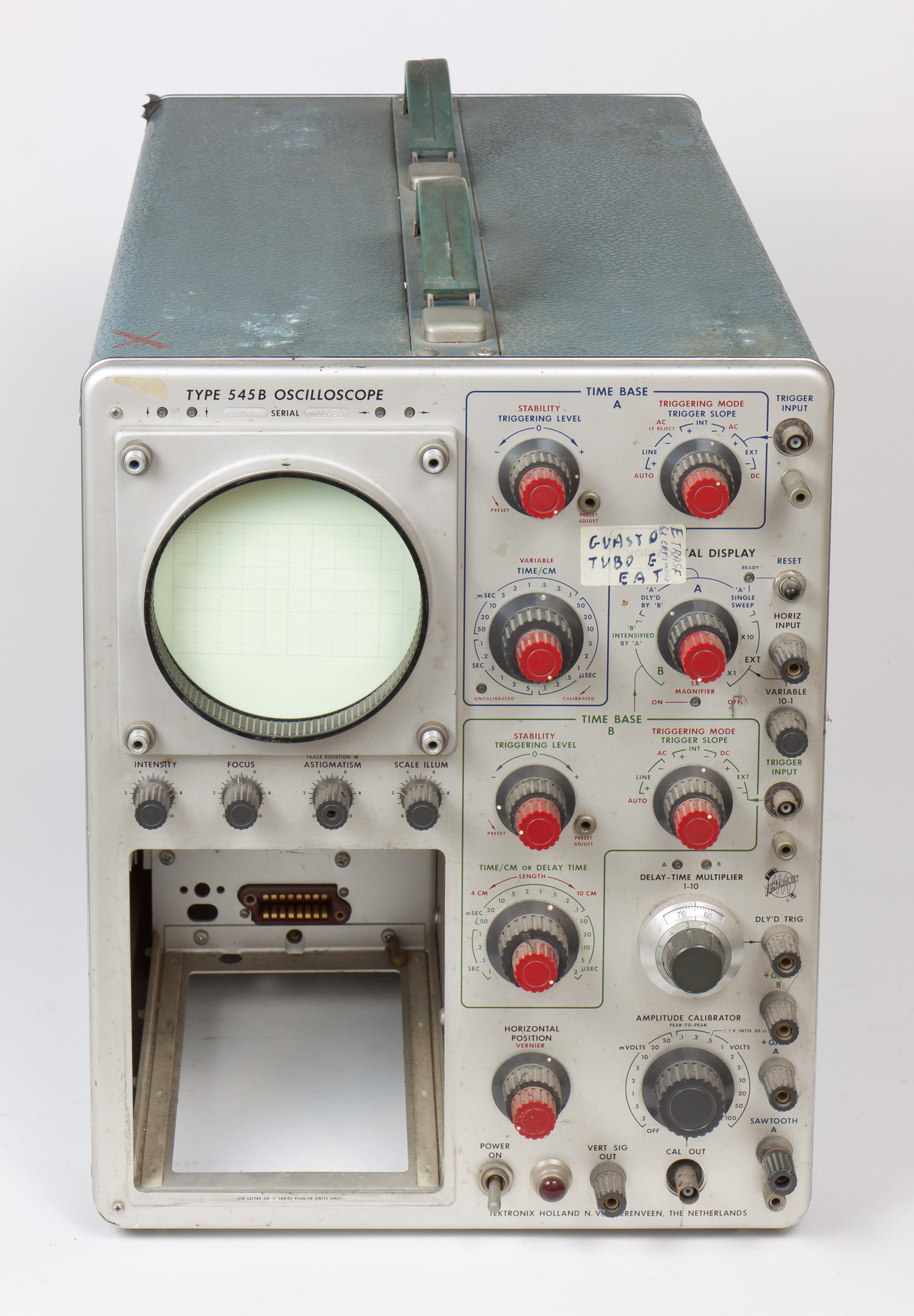 Oscilloscopio Tektronix 545B | 32.5(w) ☓ 59(p) ☓ 42(h) | Tektronix (Heerenveen, Holland) | 1967 | Abbastanza buono (ma manca di un modulo ed è fuori uso). | M701 | ||