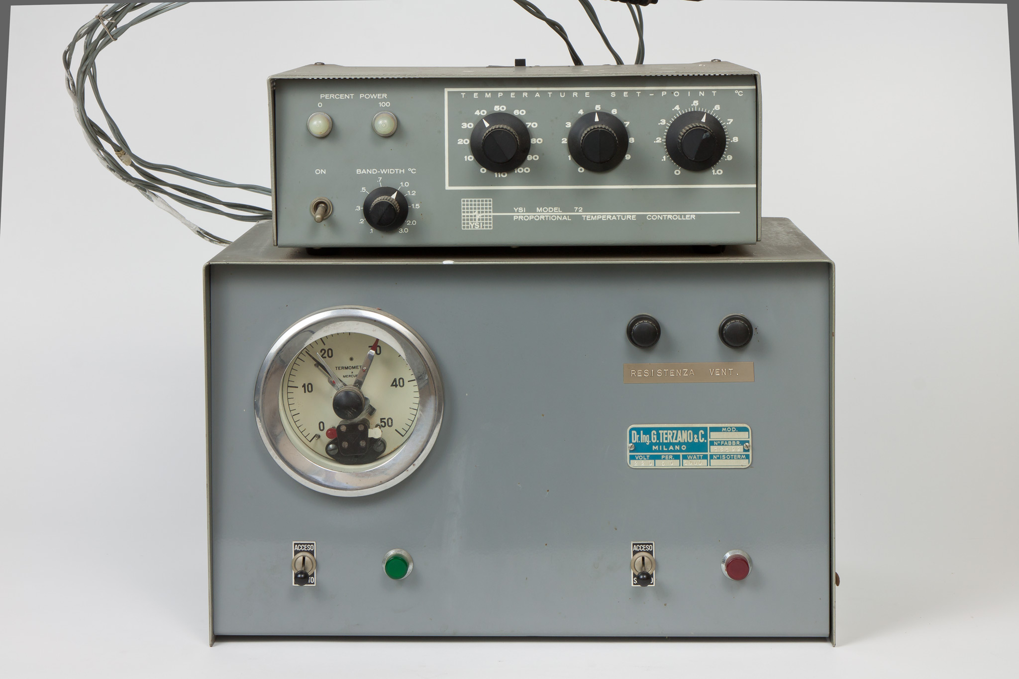 Apparato di controllo della temperatura Terzano YSI 72 | 40.3(w) ☓ 28(p) ☓ 37.5(h) | Dr. Ing. G. Terzano & C. (Milano) | Buono. | M701 | Chiedere a Mazzoleni. Aggiungere documentazione sulla camera termostatata (mappe, ecc.) | ||
