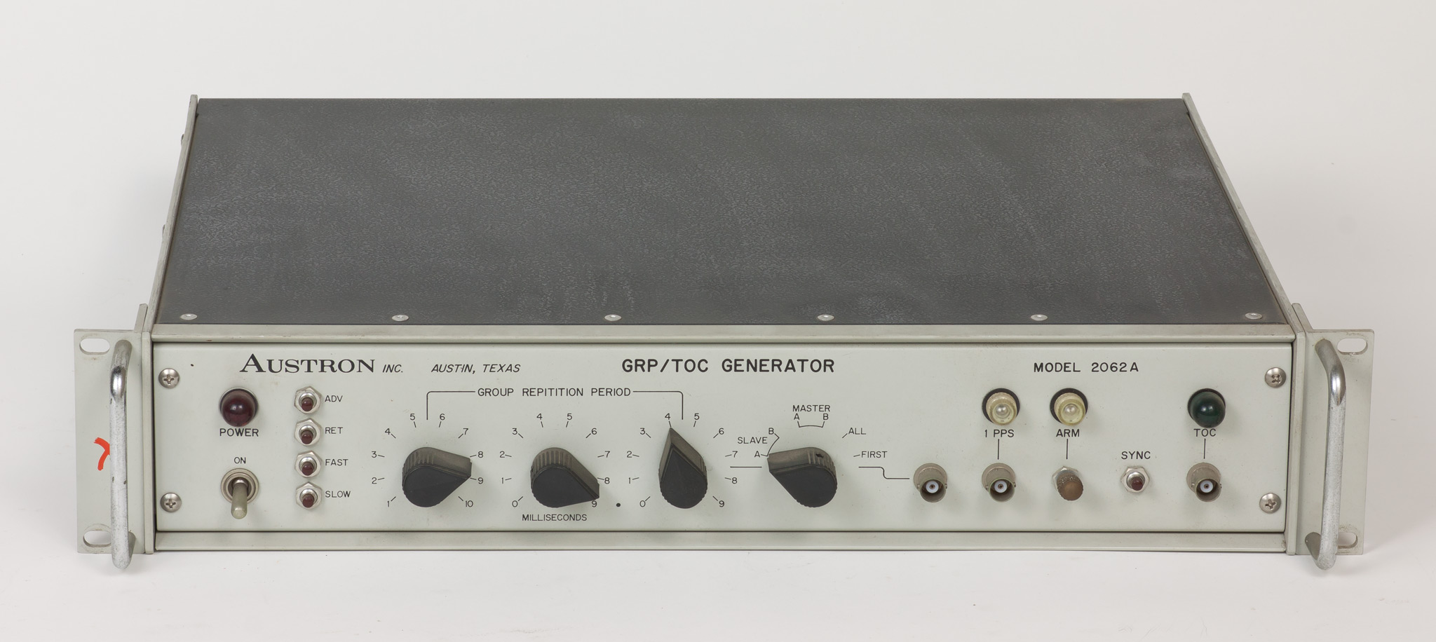 GPR/TOC generator Austron 2062A | 48.1(w) ☓ 33.5(p) ☓ 9(h) | Austron Inc. (Austin, Texas, U.S.A.) | Buono. | M701 | POS3D. Qual'era la funzione di questo strumento nella catena di elaborazione del segnale? | ||