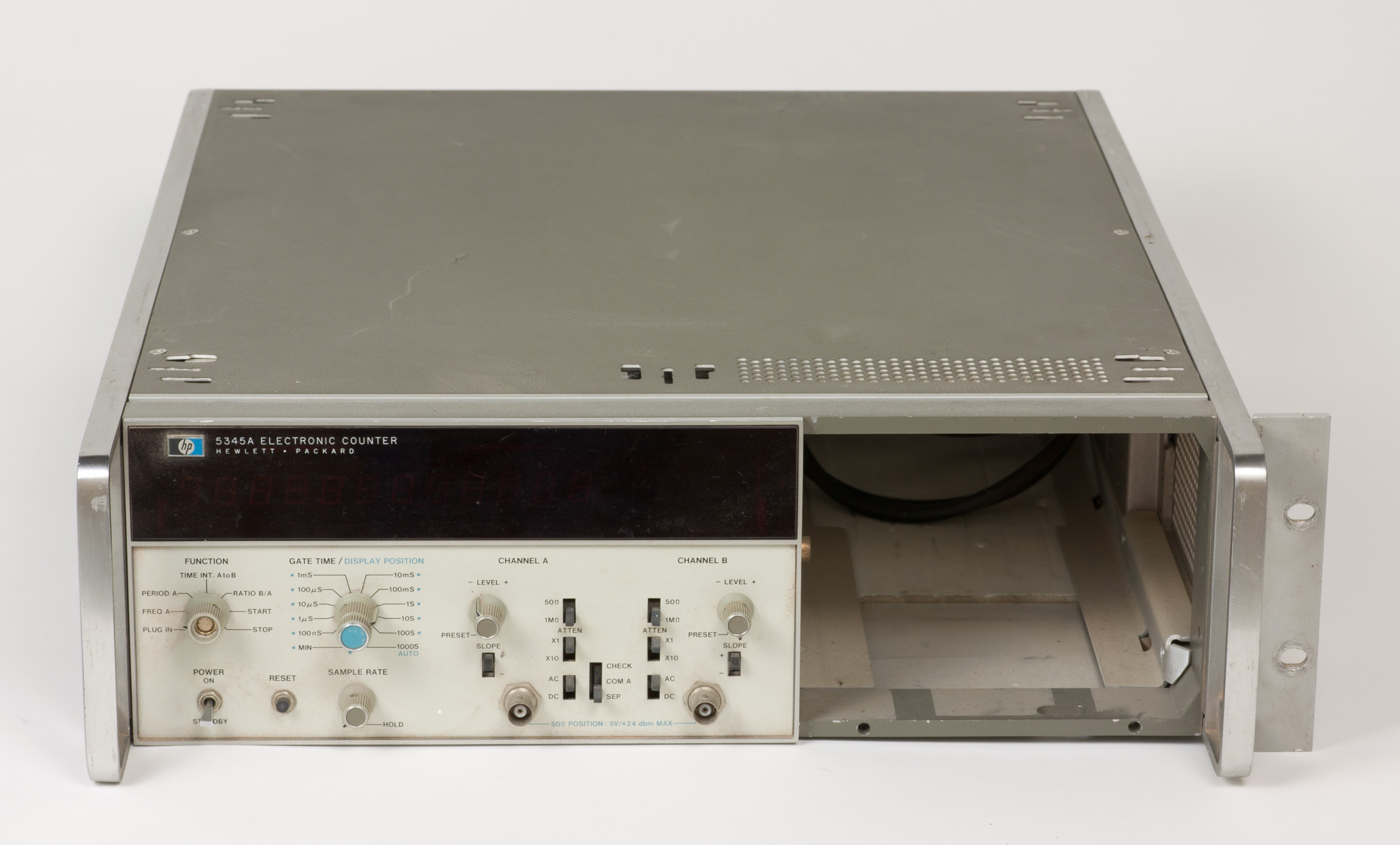 Contatore elettronico HP 5345A | 45.5(w) ☓ 54.3(p) ☓ 13.4(h) | Hewlett Packard (U.S.A.) | Buono ma incompleto (manca un modulo). | M595 | Chi lo usava? Con quale fotometro? | ||