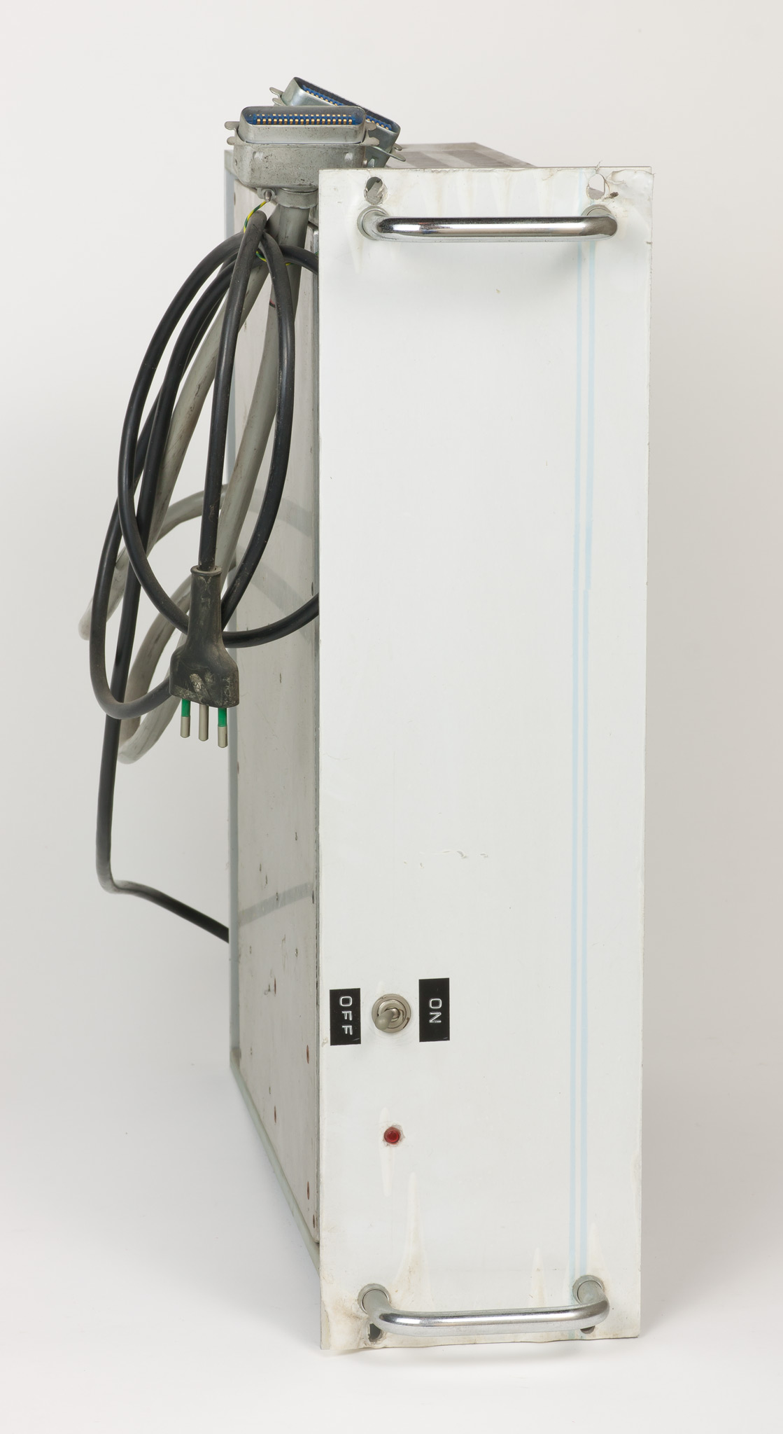 Unità di controllo PM3000 del CCD Photometrics | 48.3(w) ☓ 56.5(p) ☓ 27(h) | Photometrics Ltd. (Tucson, Arizona, U.S.A.) | circa 1986 (?) | Abbastanza buono. | M506 | Era quello di OAB o del CNR? Esistono manuali? Riferire problemi ricordati da Poretti ("Questi controller avevano problemi, continuavano a guastarsi: nel corso della notte il sistema si piantava e bisognava farlo ripartire")? Riferire notizie su campo di vista limitato, problemi nel moto orario dello Zeiss, ecc.? | |