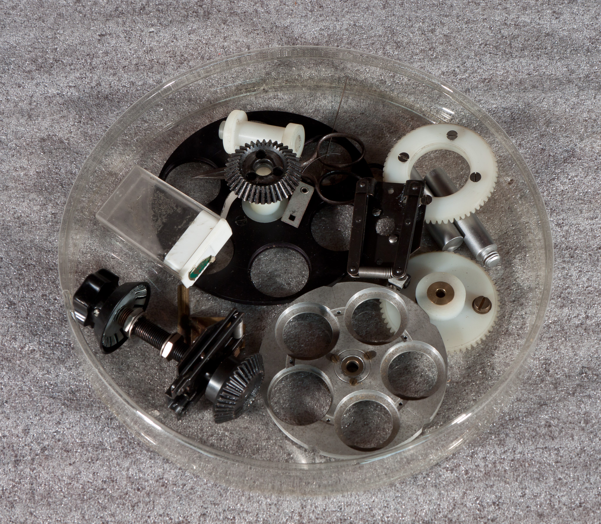 Parti di una ruota portafiltri | scatola: 24.5(d) | Buono. | M702 | Ennio Poretti (che ho sentito perché mi avevano suggerito che forse ne sapeva qualcosa) mi ha detto di non averlo mai visto, ma mi ha suggerito che, in base alle dimensioni, forse poteva essere usato sullo Zeiss. | |||