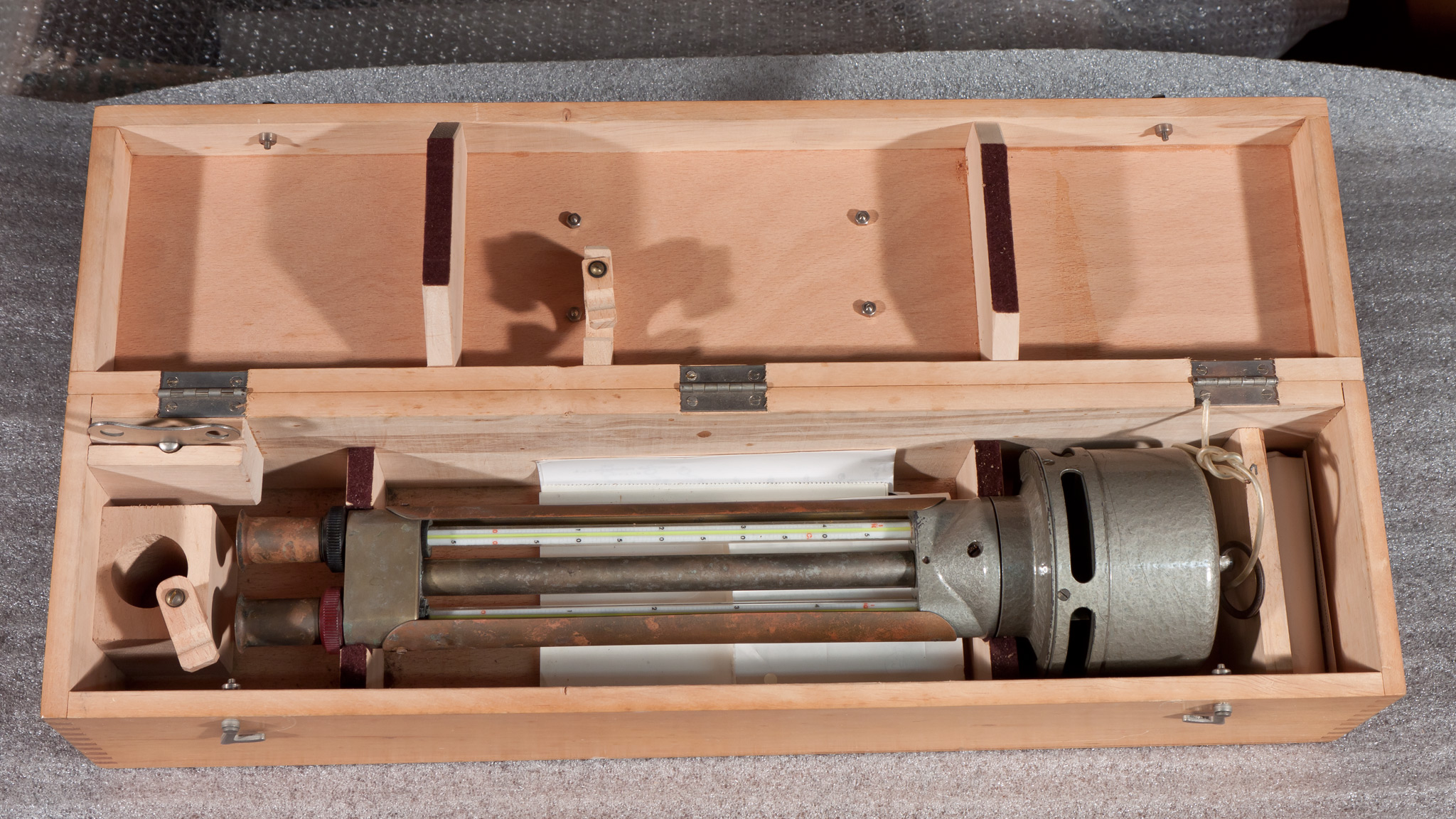 Piranografo bimetallico S.I.A.P (tipo Robitzsch SO 28) | 38(w) ☓ 20(p) ☓ 26(h) | S.I.A.P. (Società Italiana Apparecchi Precisione, Bologna) | 1965 | Buono. | BAul | ||