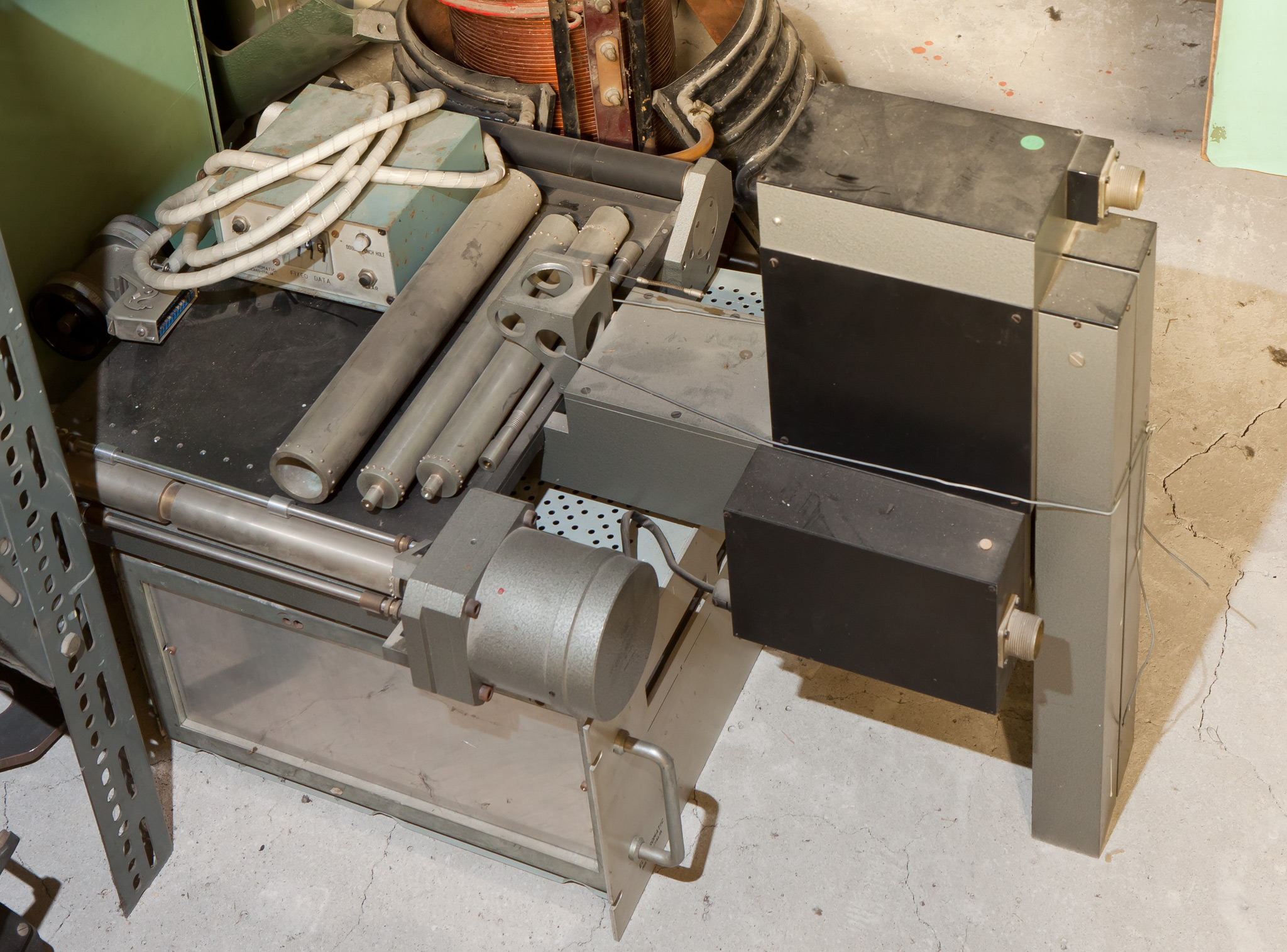 Misuratore di spettri ("asciometro") | 91(w) ☓ 76(p) ☓ 145(h) (incluso tavolo) | A. Ascione | 1973 | Cattivo; incompleto. | M703 | Fotografare targhetta; verificare se mancano pezzi. | |