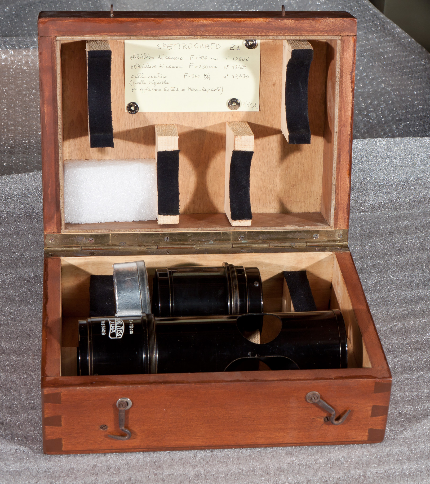 Obiettivi dello spettrografo Zeiss Z1 | cassetta: 29(w) ☓ 21.5(p) ☓ 12(h) | Zeiss (Jena) | 1923 | Buono. | M702 | ||