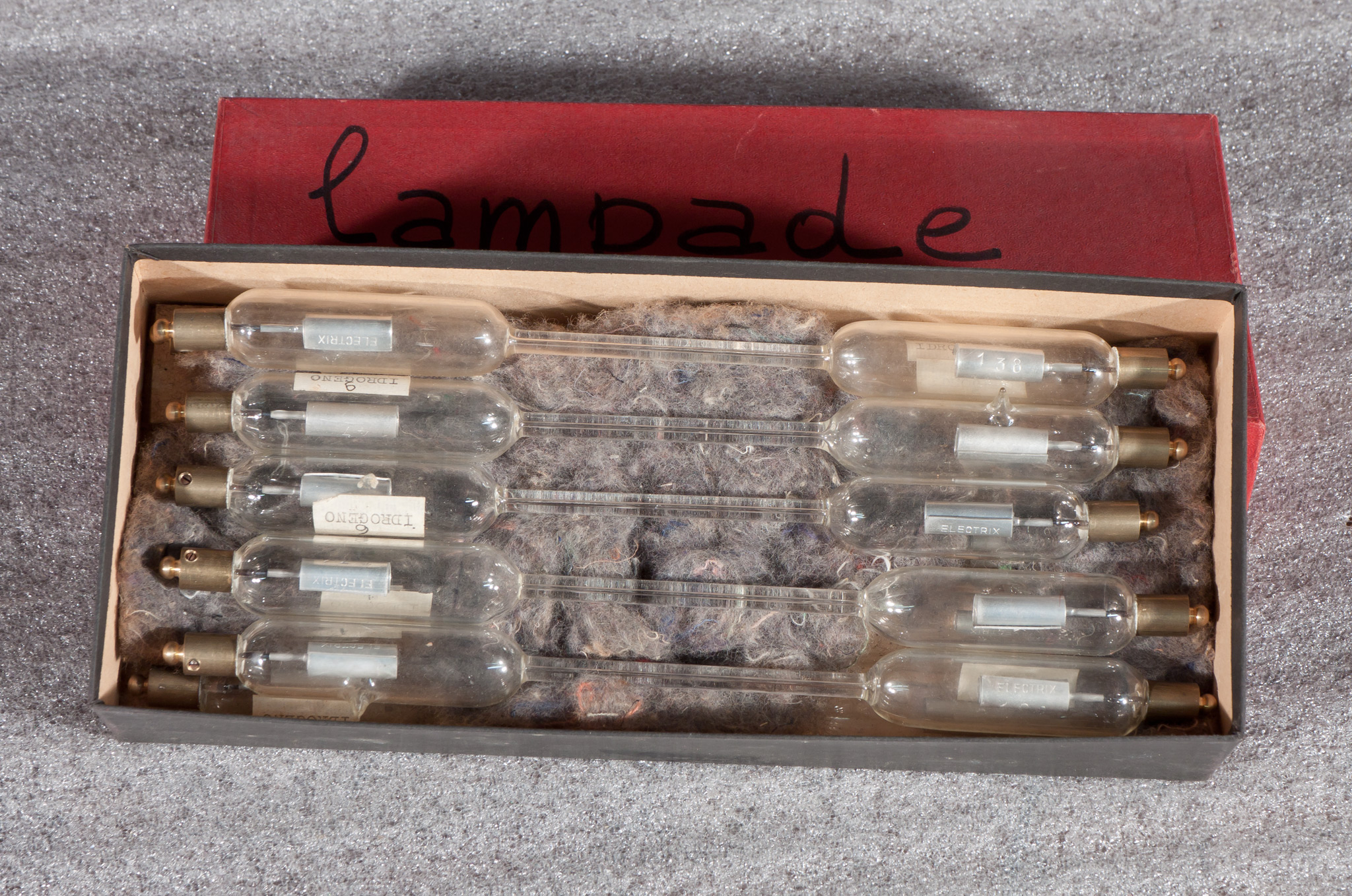 Lampade a idrogeno (tubi di Plücker) | scatola: 26.5(w) ☓ 11.5(p) ☓ 5.5(h) una lampada: 2(d) ☓ 24.5(l) |