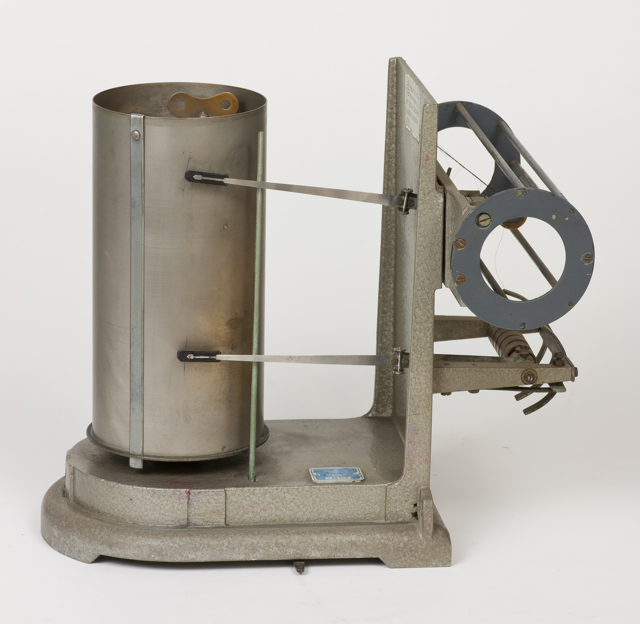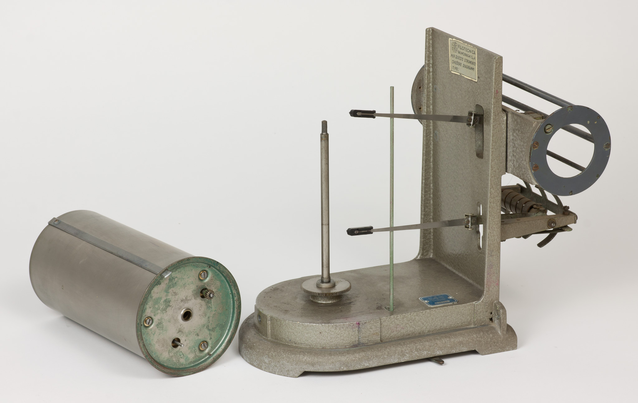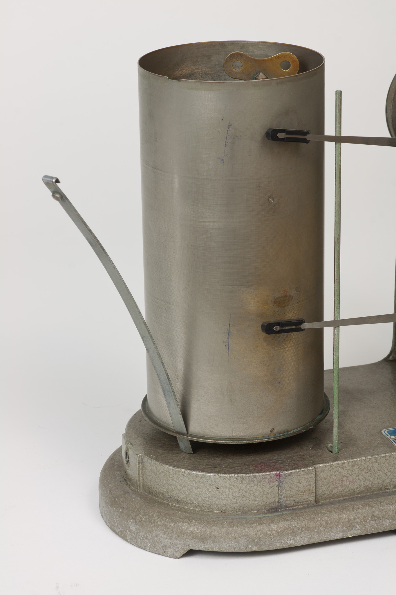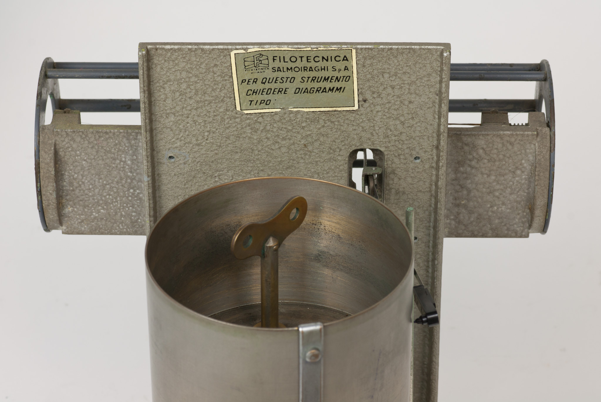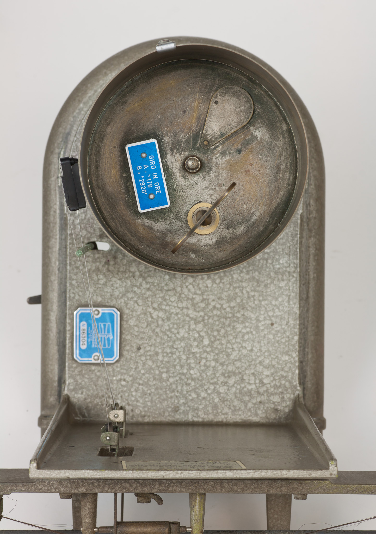 La velocità di rotazione può essere selezionata scegliendo tra due valori che corrispondono approssimativamente a una rotazione completa del cilindro in una settimana oppure in un giorno. In realtà, come riportato su una targhetta posta nella parte superiore del cilindro, la durata di una rivoluzione completa è un po' superiore, rispettivamente 7.33 giorni (posizione A) o 29.20 ore (posizione B), sia per dare un certo margine di tempo a chi deve cambiare la carta, sia perché una piccola parte della carta non è scrivibile perché coperta dalla lamina metallica che fissa il foglio al tamburo. La selezione della velocità si fa spostando il pignone dentato tra i due alberi motori che sporgono dalla base inferiore del cilindro e che ruotano a velocità diverse, contrassegnati con le lettere A e B. Lo strumento veniva usato con carta da grafico stampata appositamente, con le divisioni dei tempi sull'asse delle ascisse poste alla distanza esatta richiesta dalla velocità di rotazione e con le indicazioni dei giorni della settimana o delle ore del giorno, e con gli assi delle ordinate non rettilinei ma tracciati secondo un arco di cerchio, in modo da seguire la traiettoria curva del braccio del pennino attorno al suo fulcro (vedi scheda 45).