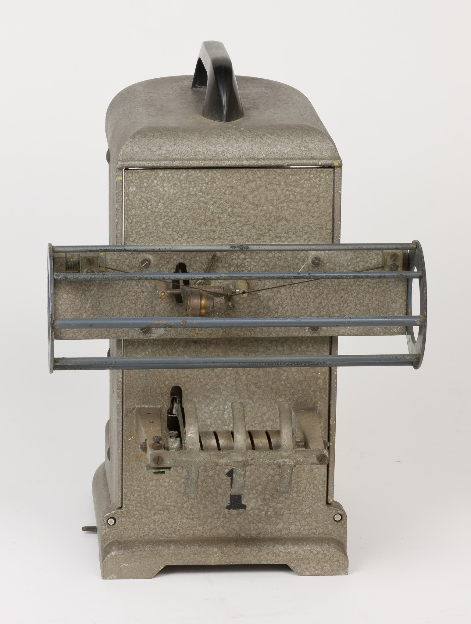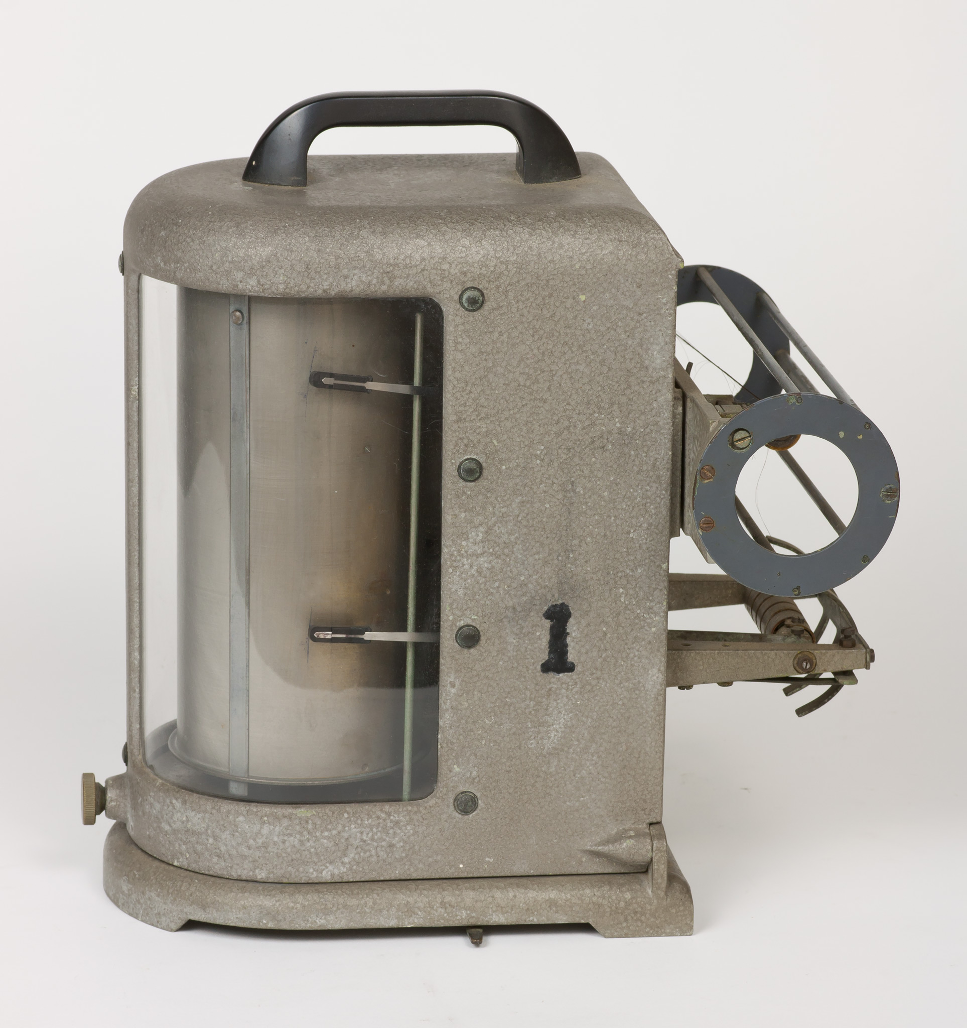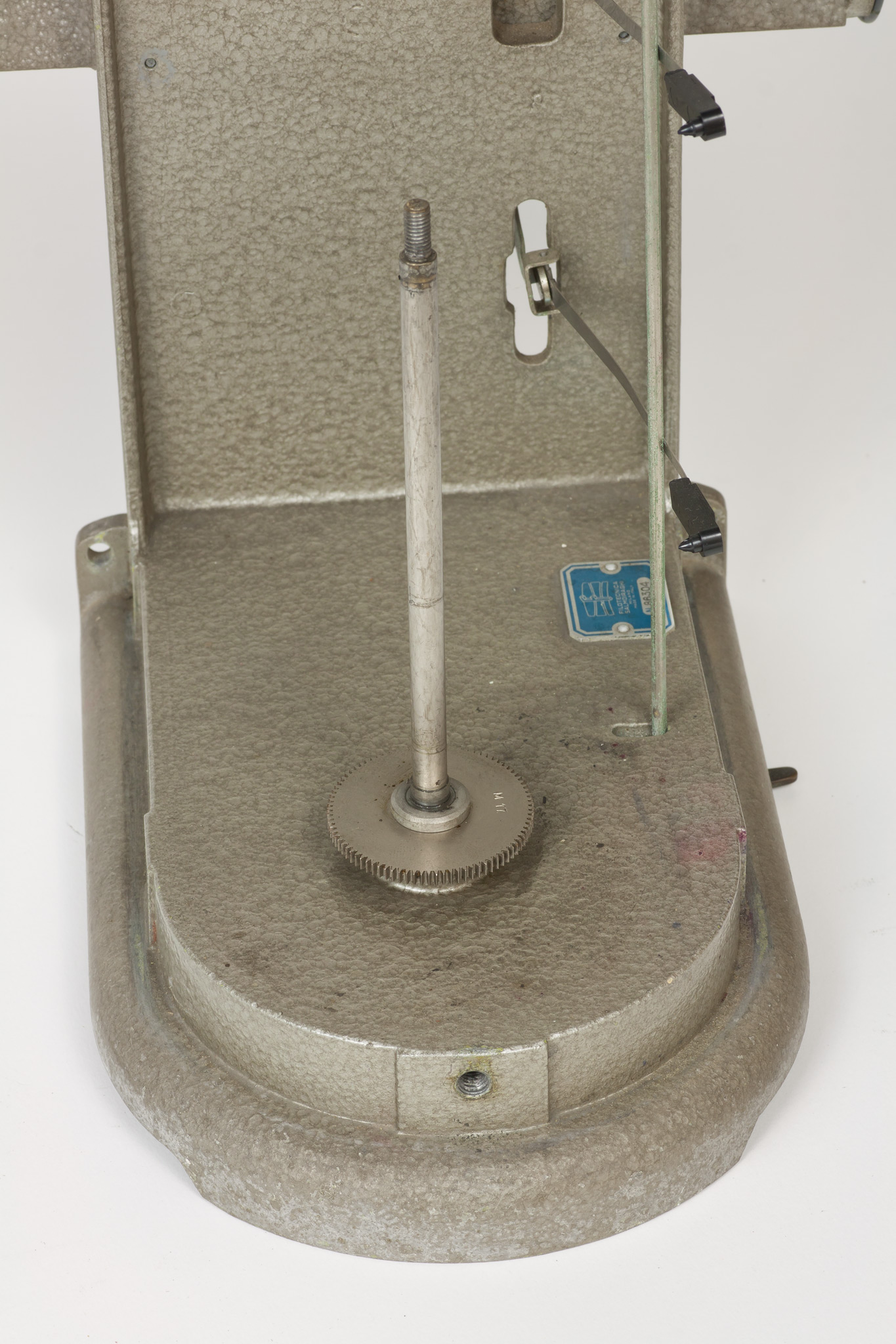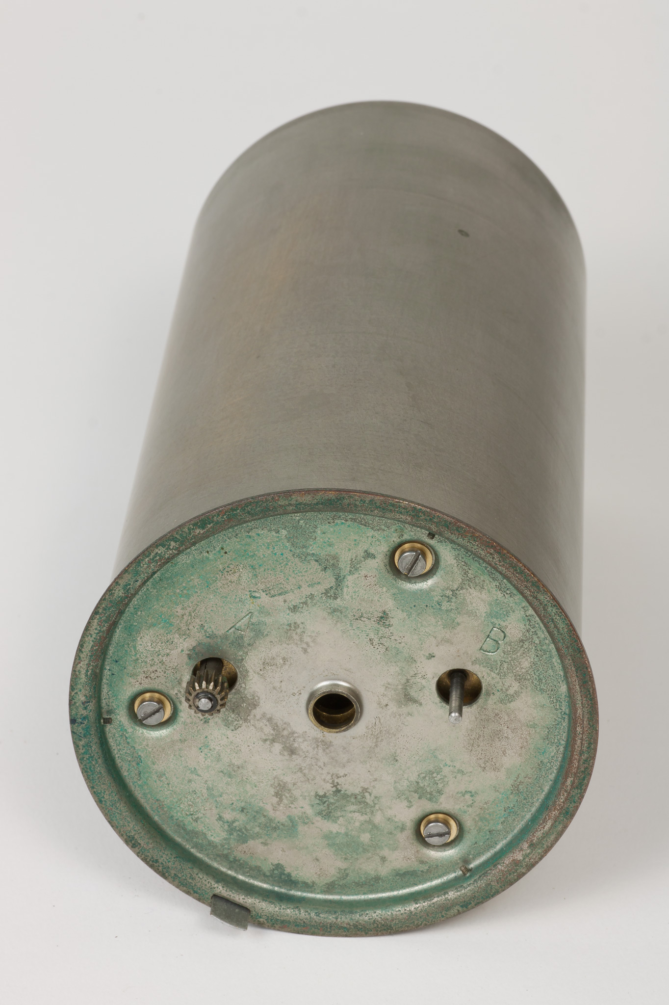 La velocità di rotazione può essere selezionata scegliendo tra due valori che corrispondono approssimativamente a una rotazione completa del cilindro in una settimana oppure in un giorno. In realtà, come riportato su una targhetta posta nella parte superiore del cilindro, la durata di una rivoluzione completa è un po' superiore, rispettivamente 7.33 giorni (posizione A) o 29.20 ore (posizione B), sia per dare un certo margine di tempo a chi deve cambiare la carta, sia perché una piccola parte della carta non è scrivibile perché coperta dalla lamina metallica che fissa il foglio al tamburo. La selezione della velocità si fa spostando il pignone dentato tra i due alberi motori che sporgono dalla base inferiore del cilindro e che ruotano a velocità diverse, contrassegnati con le lettere A e B. Lo strumento veniva usato con carta da grafico stampata appositamente, con le divisioni dei tempi sull'asse delle ascisse poste alla distanza esatta richiesta dalla velocità di rotazione e con le indicazioni dei giorni della settimana o delle ore del giorno, e con gli assi delle ordinate non rettilinei ma tracciati secondo un arco di cerchio, in modo da seguire la traiettoria curva del braccio del pennino attorno al suo fulcro (vedi scheda 45).