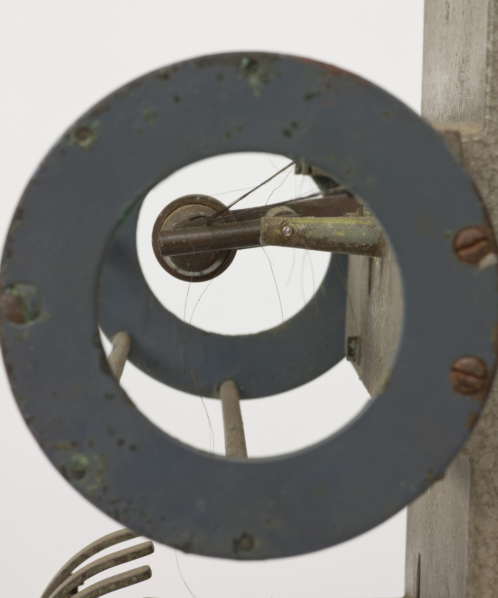 Il sensore di umidità è costituito da una ciocca di capelli e sfrutta il fatto che la lunghezza dei capelli aumenta al crescere dell'umidità: le molecole di acqua si inseriscono nei legami idrogeno delle catene di cheratina che costituiscono il capello e ne cambiano la struttura secondaria. Questo effetto è maggiore per i capelli biondi, che possono subire un allungamento fino al 2.5% quando l'umidità passa dallo 0% al 100%. I capelli sono tesi tra due morsetti contenuti in una gabbia cilindrica di protezione. Su di essi, al centro, è appoggiato un peso collegato a un bilancere; quando il capello si allunga il peso scende, trasmettendo il suo movimento, amplificato da una leva, al pennino scrivente.