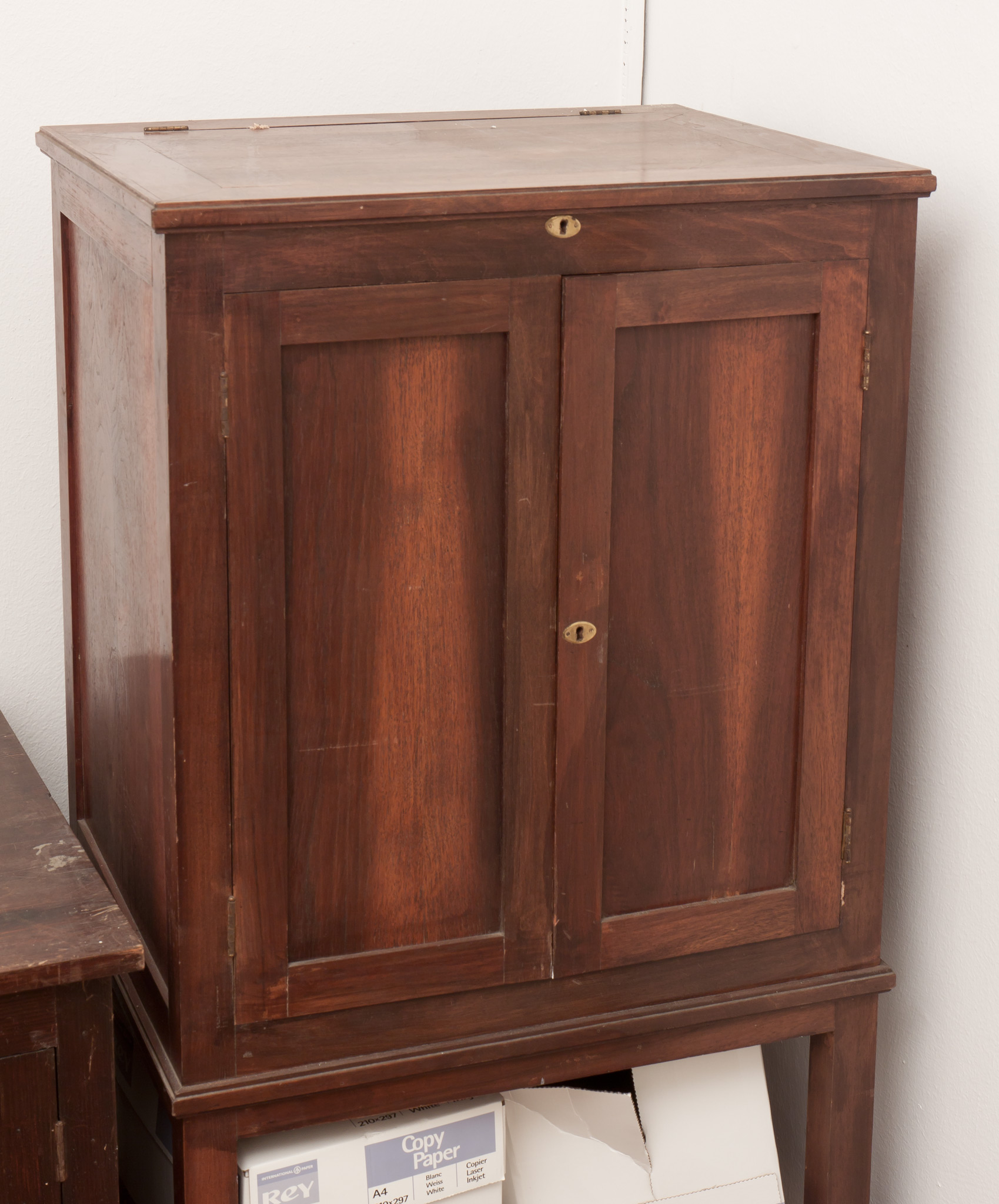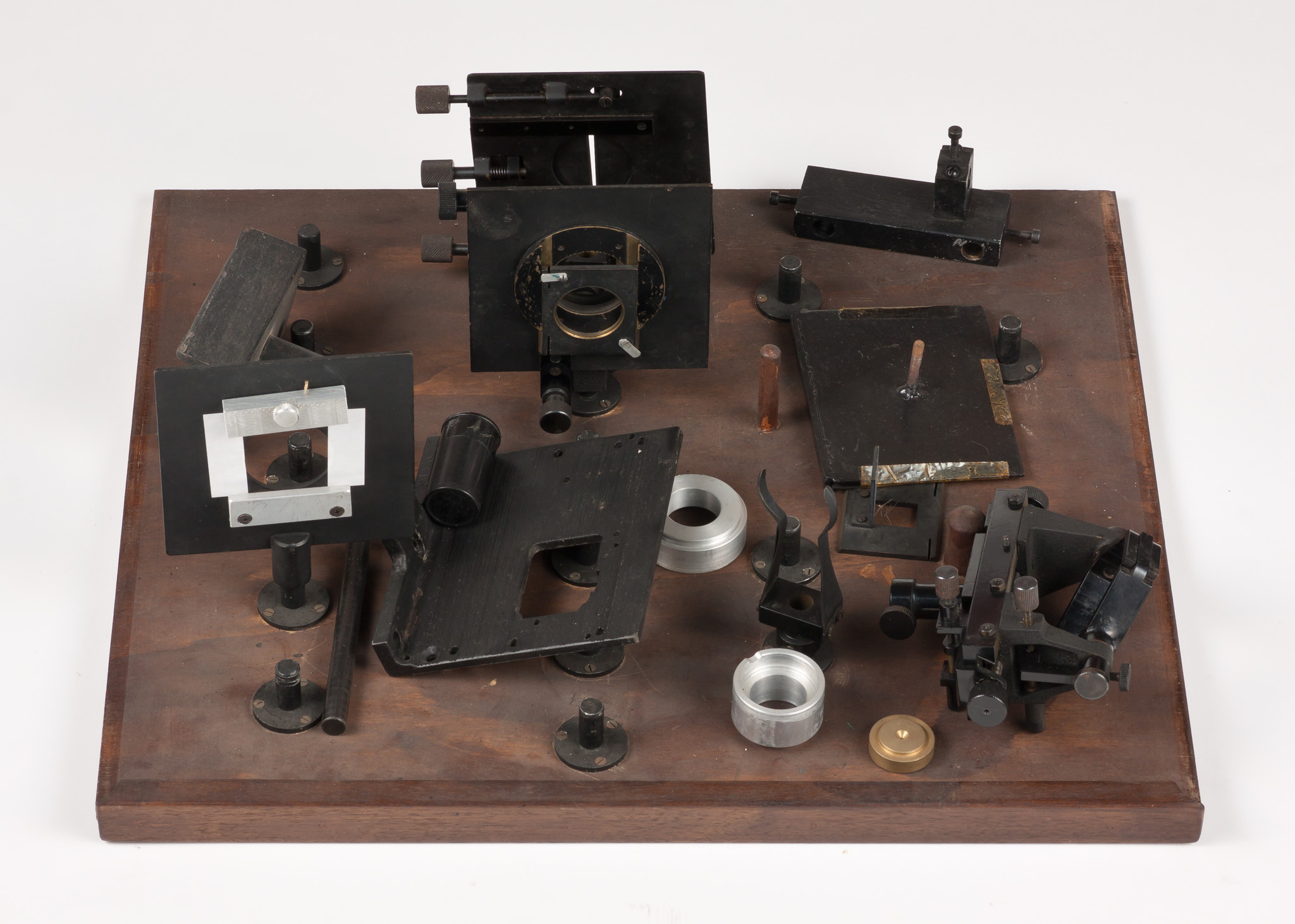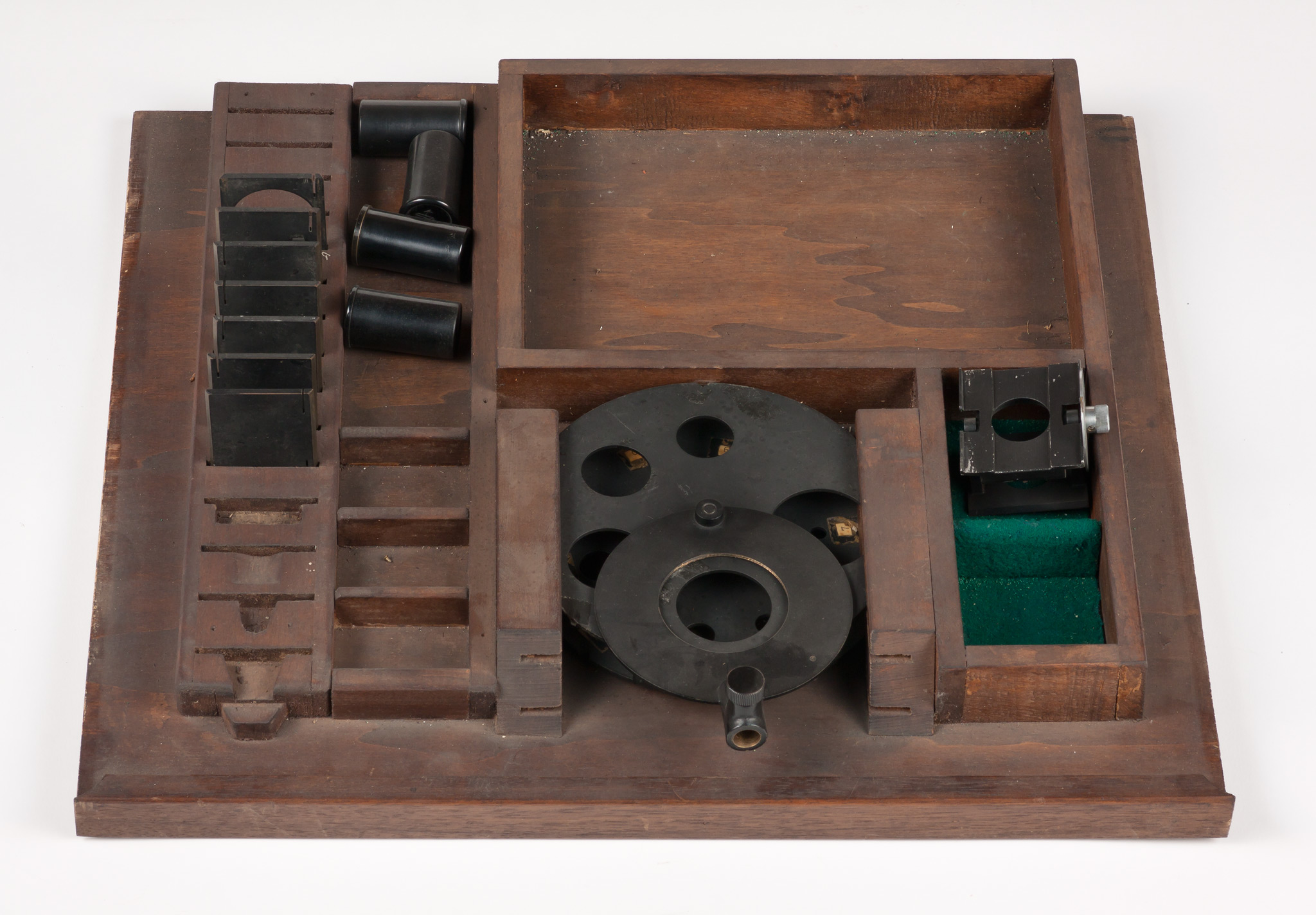 - Armadietto in legno contenente accessori per un banco ottico; parte