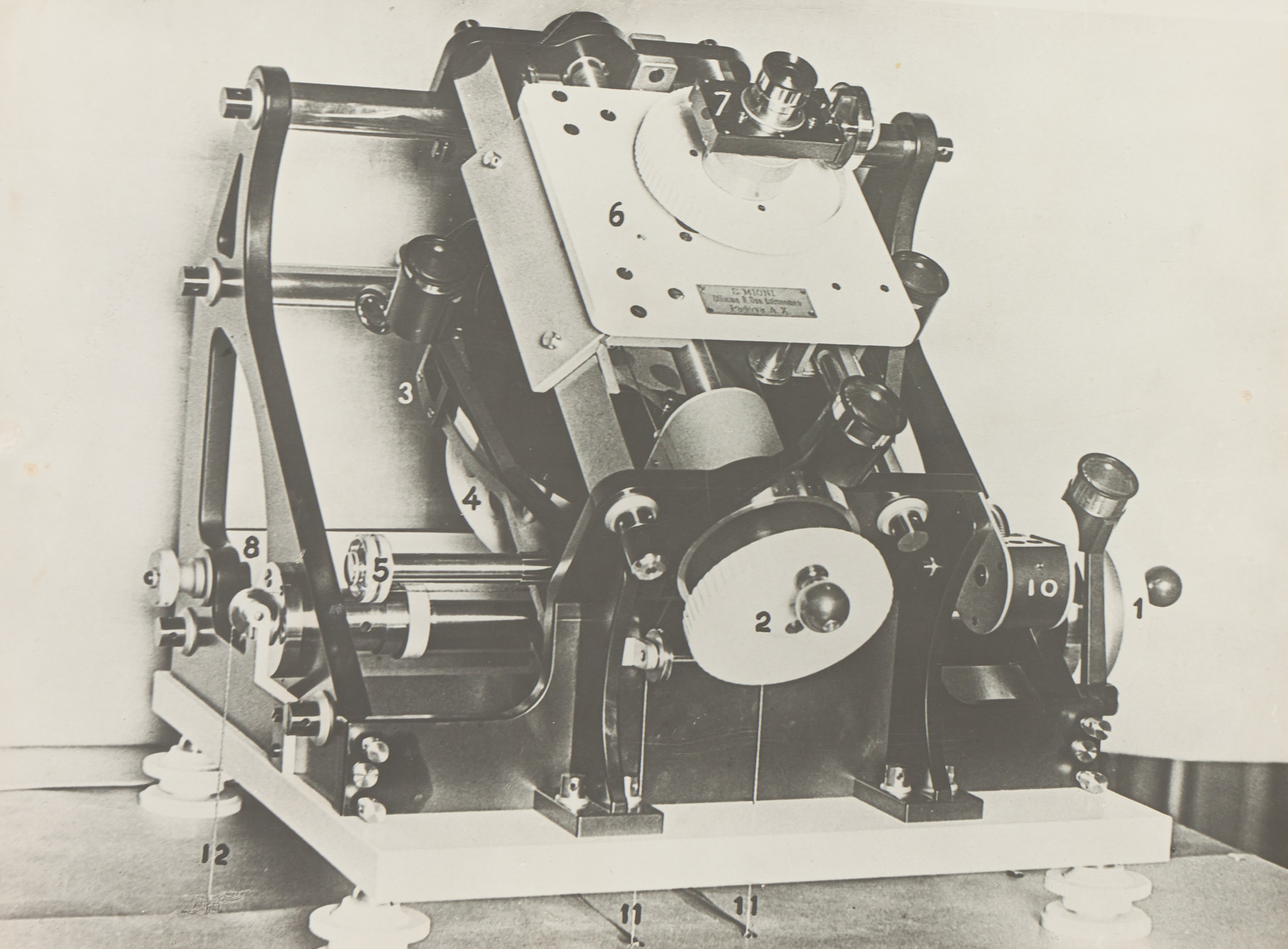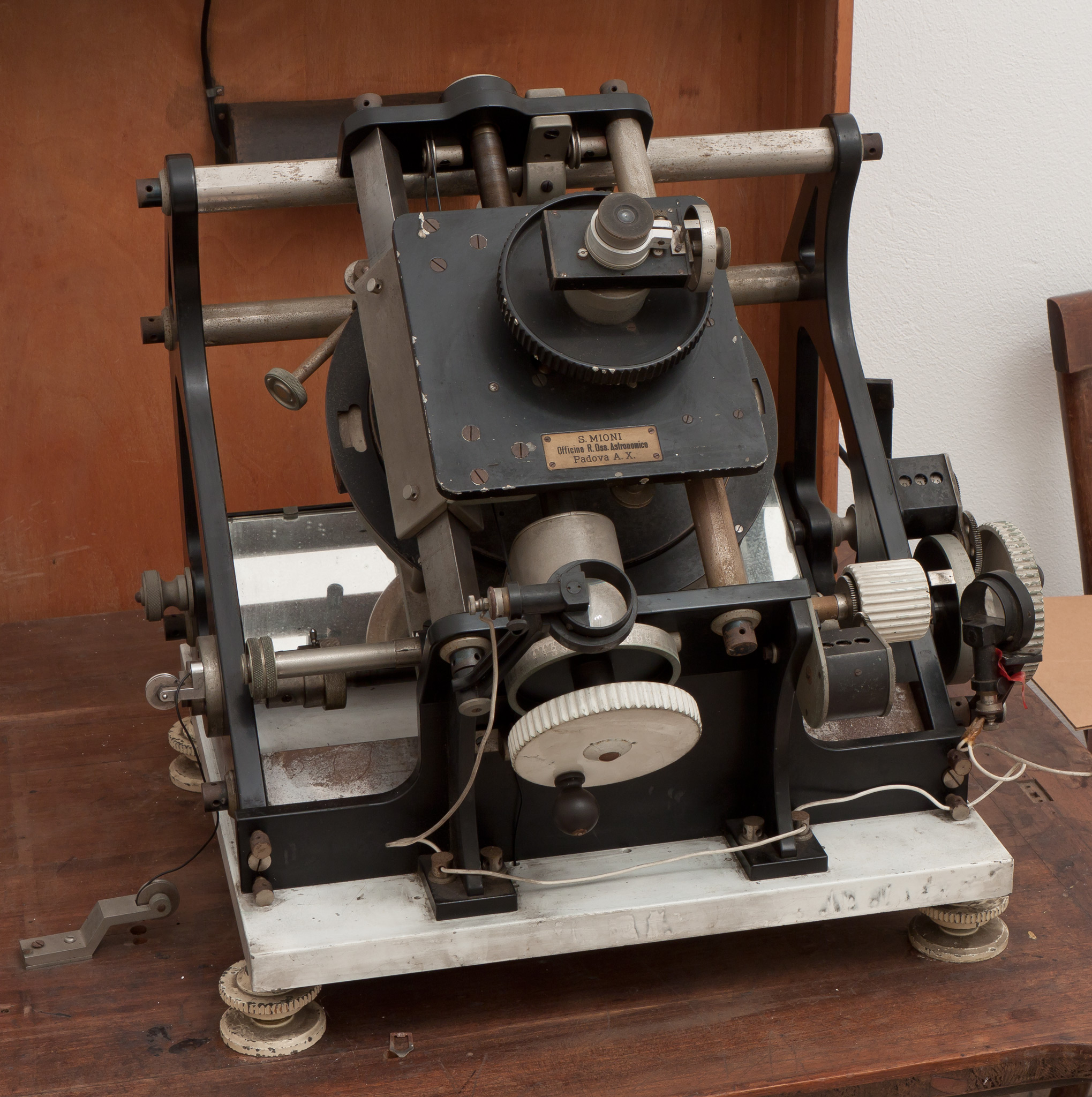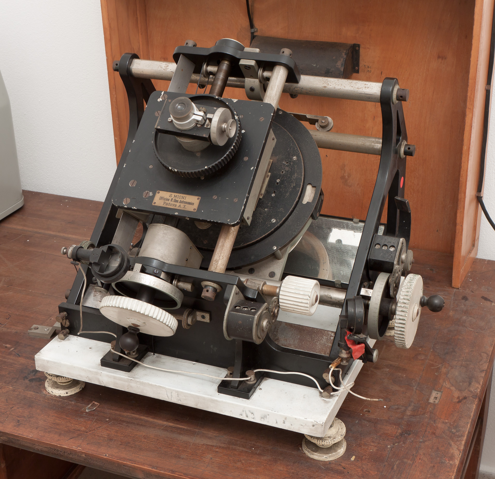 In seguito, per misurare le lastre ottenute al telescopio Zeiss per determinare le parallassi trigonometriche di stelle deboli, l'Officina Mioni, associata all'Osservatorio di Padova, fornì il comparatore a due assi descritto in questa scheda. Lo strumento venne poi utilizzato nelle misure sia di velocità radiali di stelle sia di doppie fotografiche.