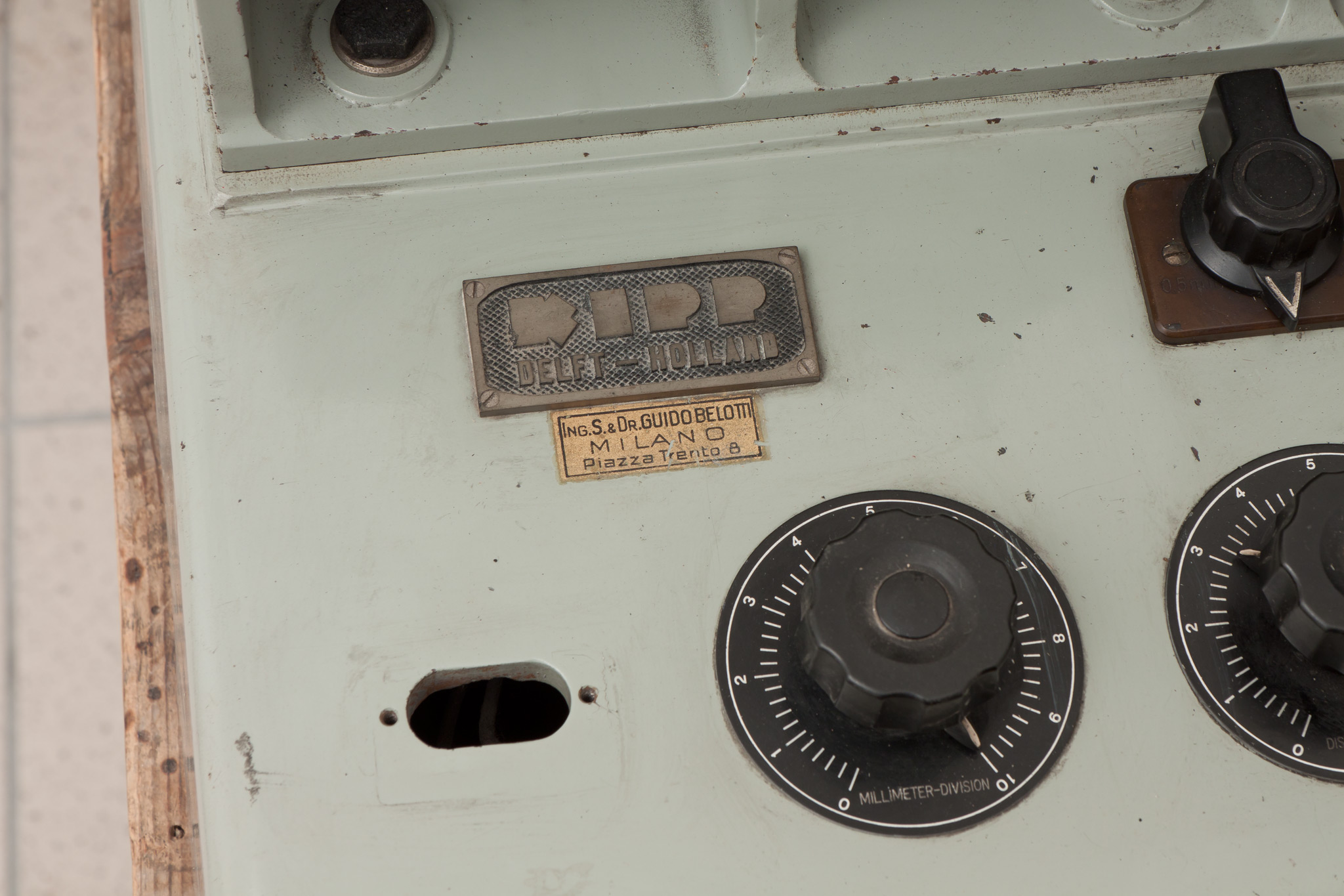 Note di Pietro Broglia.Verso la metà degli anni '50, il direttore Francesco Zagar acquisì un microfotometro registratore costruito dalla ditta Kipp di Delft (Holland), tuttora esistente, e che rappresenta lo stadio finale nell'evoluzione dei microfotometri tipo Moll a registrazione fotografica. Una base molto solida porta un banco ottico che comprende una lampada con condensatore per illuminare una fenditura finemente regolabile in larghezza e altezza in base al potere risolvente dello spettrografo e della lastra. Un microscopio, con una lente ausiliaria mobile per gli aggiustamenti (dipendenti dallo spessore della lastra fotografica), focalizza l'immagine della fenditura sulla lastra fotografica. Il carrello portalastra, dotato di opportuni aggiustamenti, si muove in direzione normale all'asse ottico del microscopio, manualmente per un rapido posizionamento della zona dello spettro da esaminare, oppure grazie ad un motore durante la registrazione. Un secondo microscopio, coassiale al primo e dotato pure di lente di aggiustamento, ingrandisce la zona della lastra esplorata dal primo proiettandola su uno schermo bianco che reca al centro una seconda fenditura, pure regolabile. Si può così controllare l'esplorazione dello spettro, come col Vocca, e trasmettere solo la zona interessata dal pennello luminoso esplorante. Un terzo microscopio concentra sulla giunzione della termopila la luce trasmessa dalla seconda fenditura.