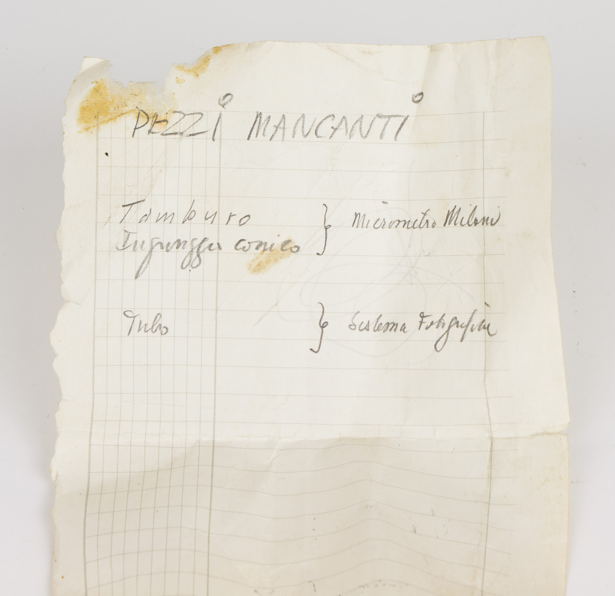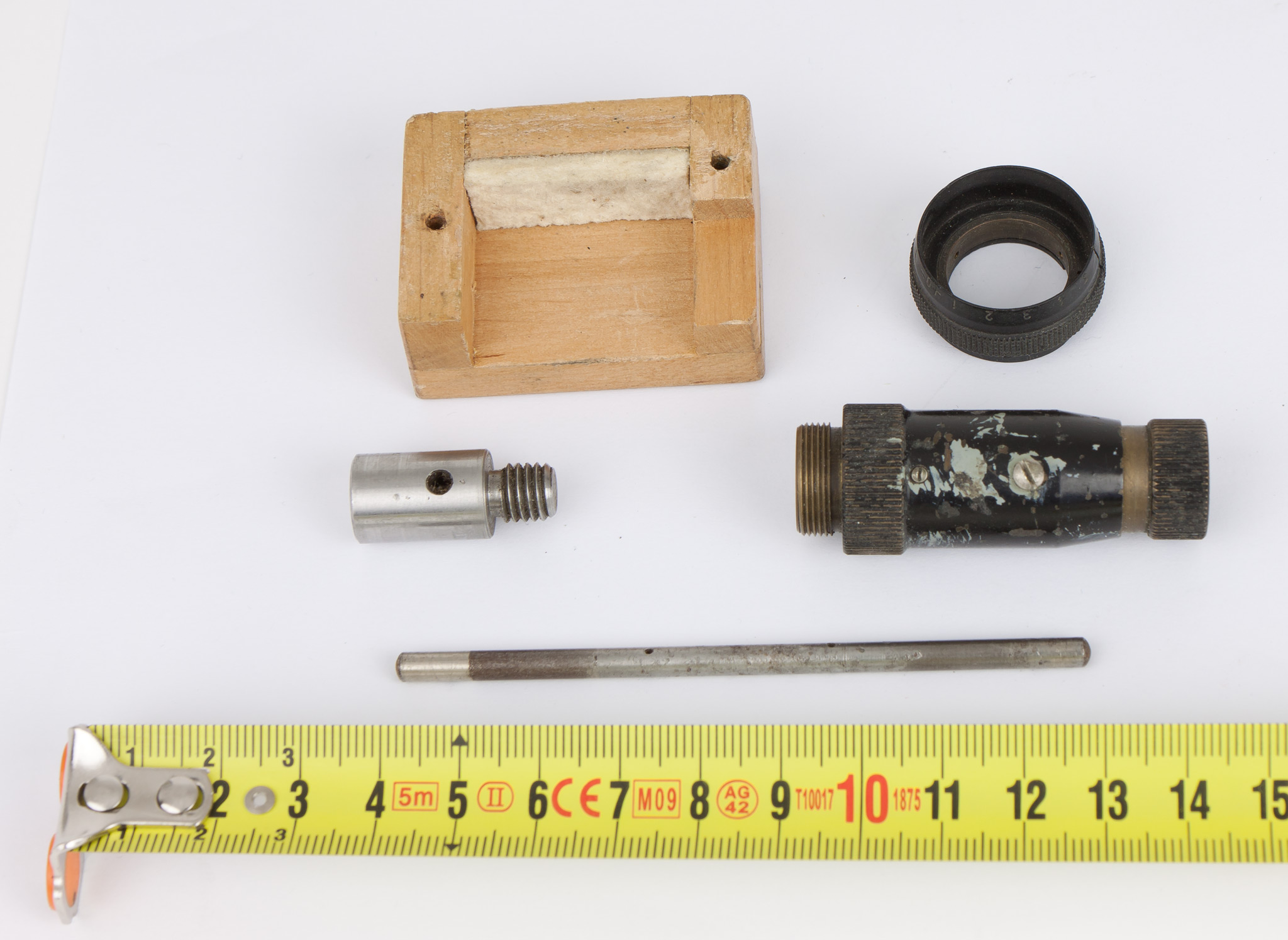 Askania) che contiene diverse parti di ricambio (alcune sfuse, altre
