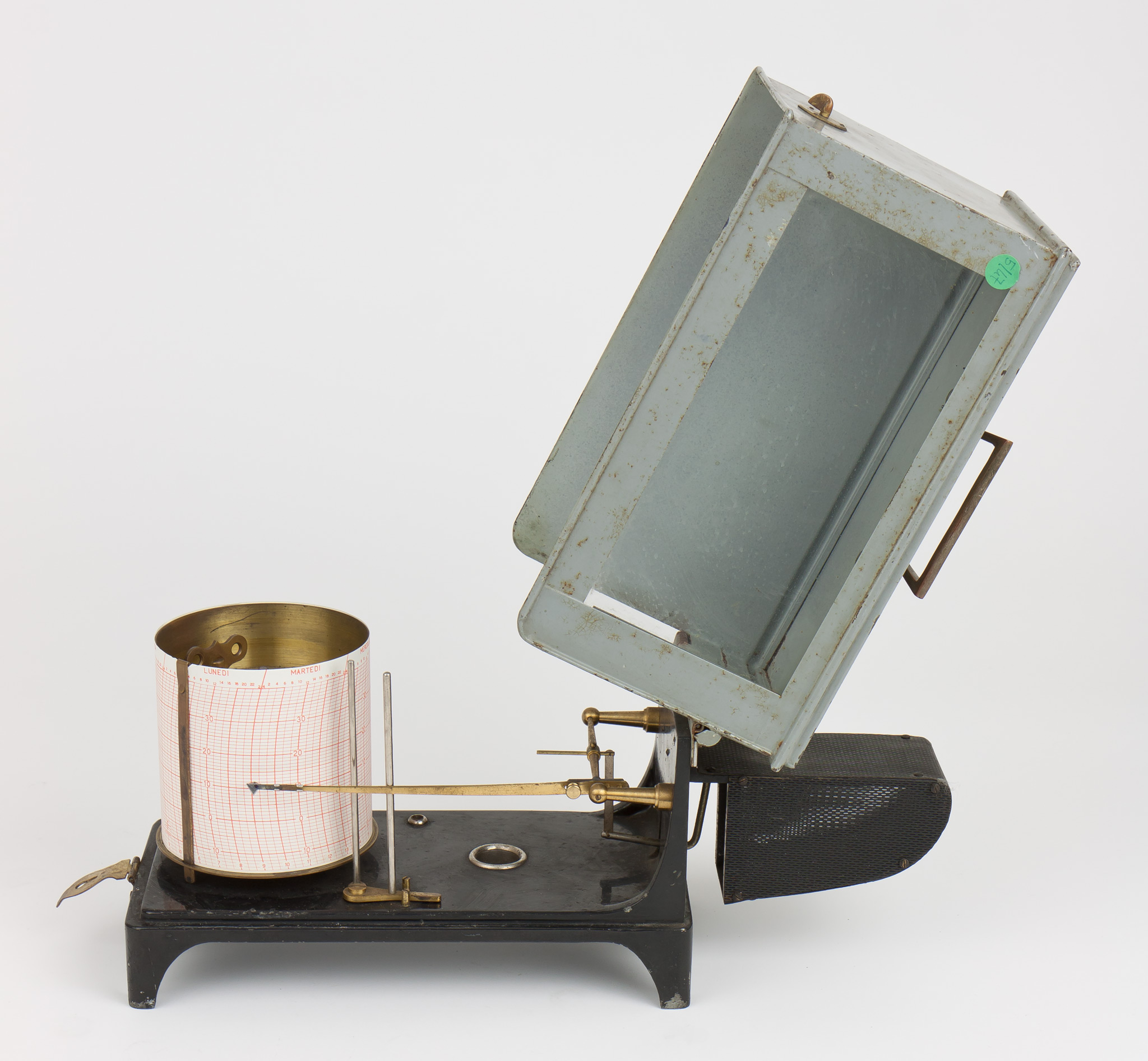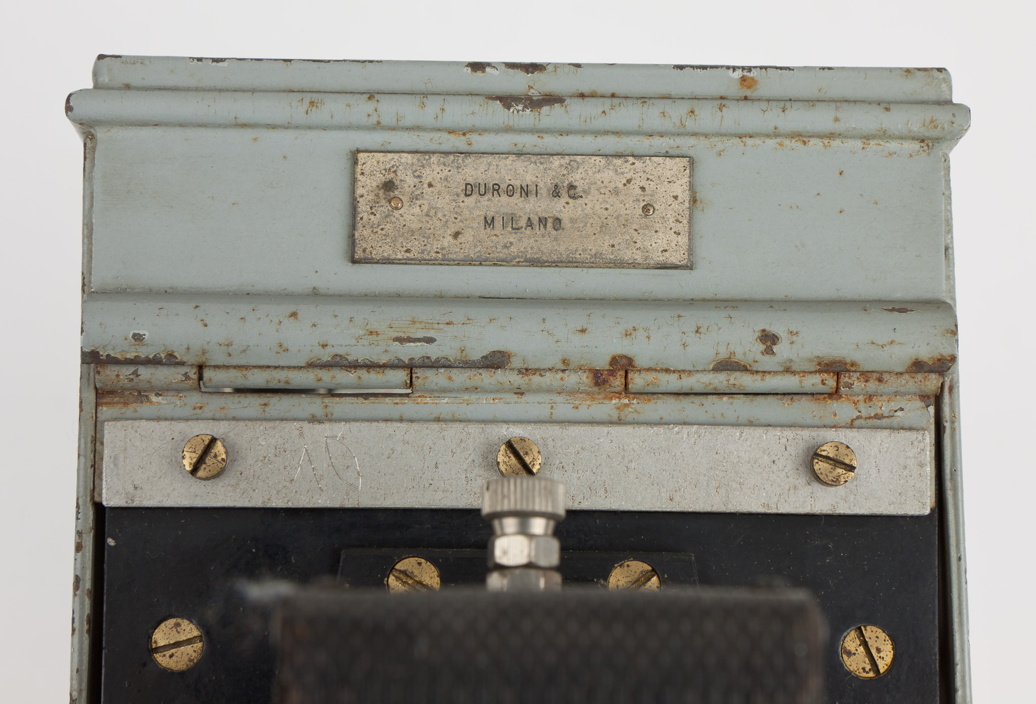 - Termografo con struttura esterna in metallo. Sulla parte superiore del coperchio manca una targhetta; la targhetta metallica sul fianco del coperchio riporta: DURONI & C. / MILANO.