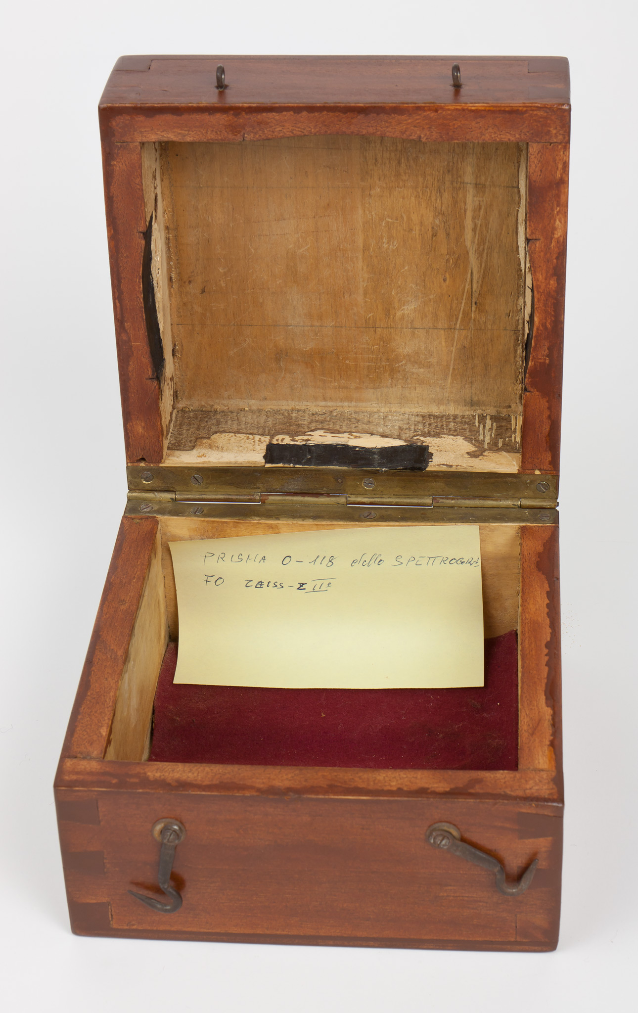 - Custodia di legno (vuota) del prisma O118 che faceva parte della dotazione