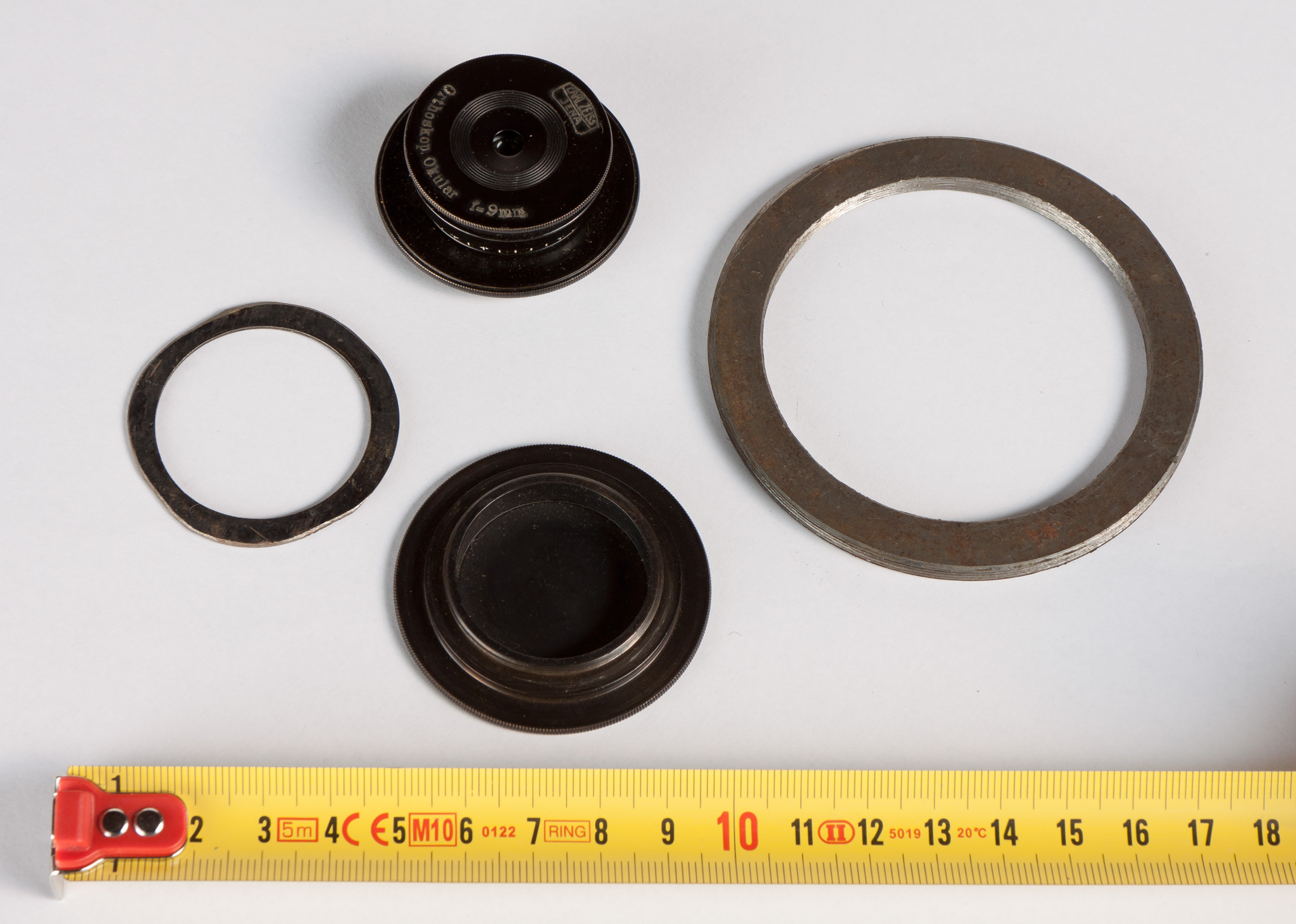 oculare ortoscopico da 9 mm di focale, un coperchietto e due anelli