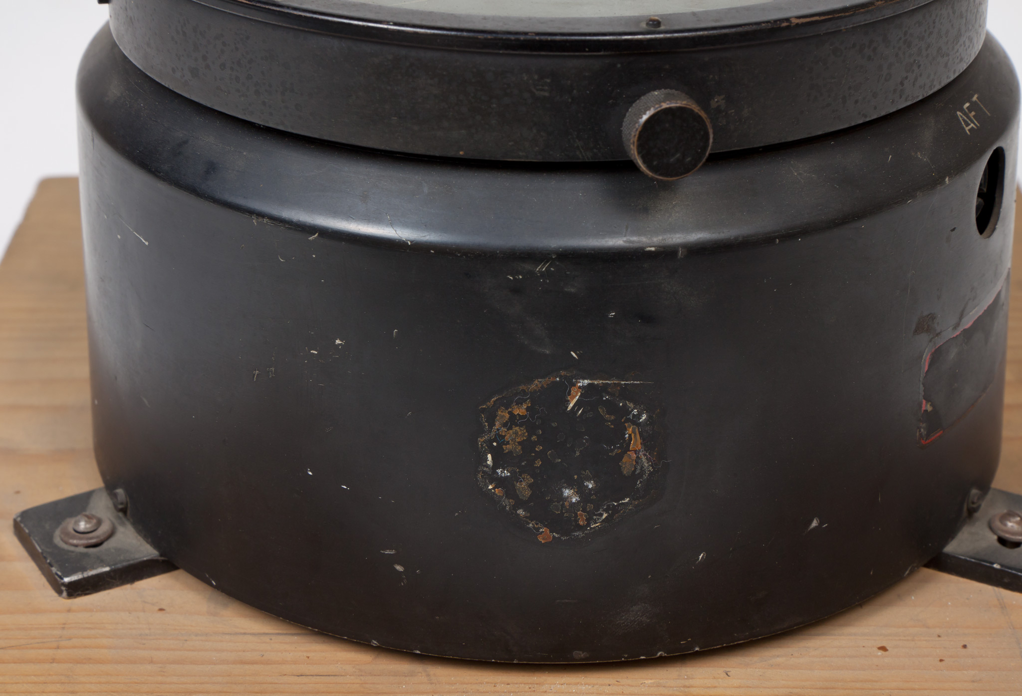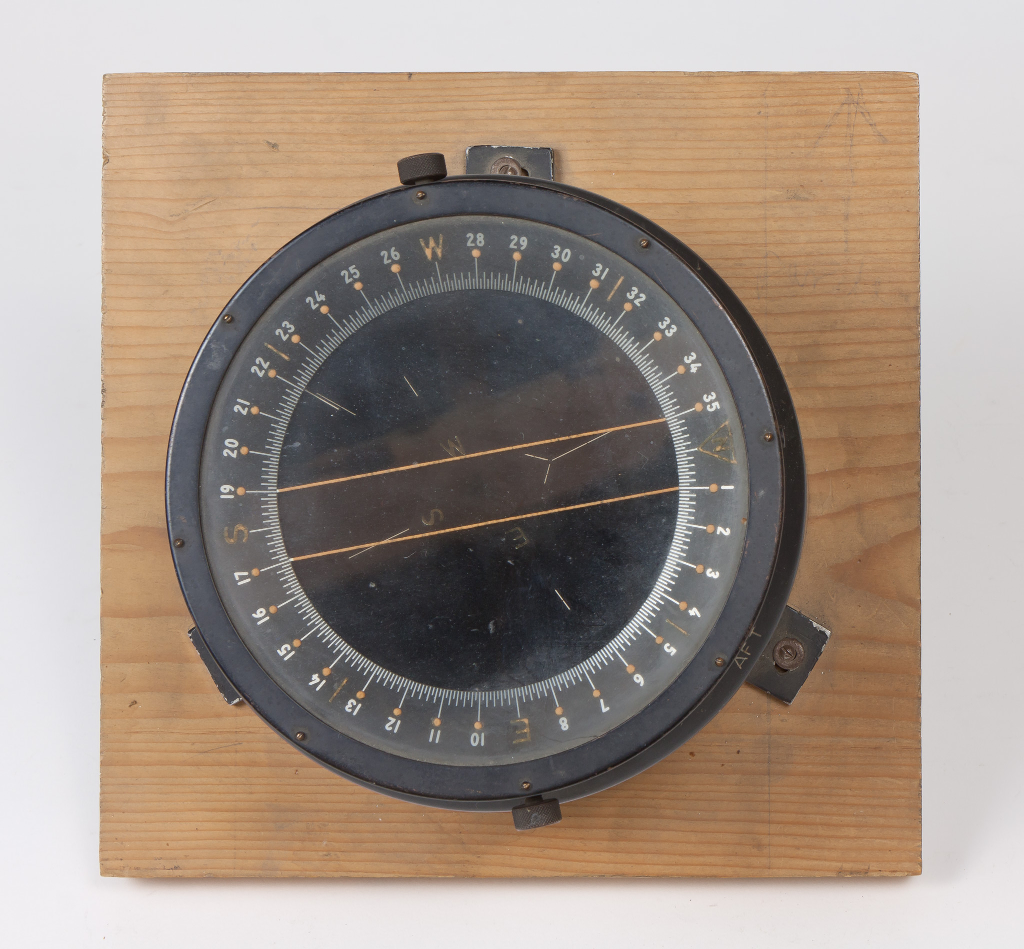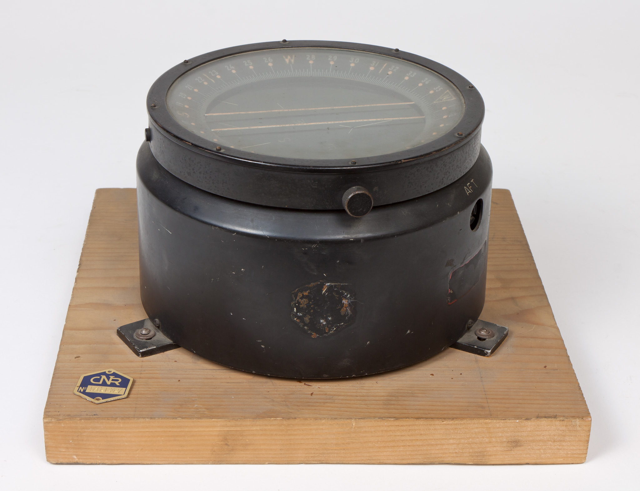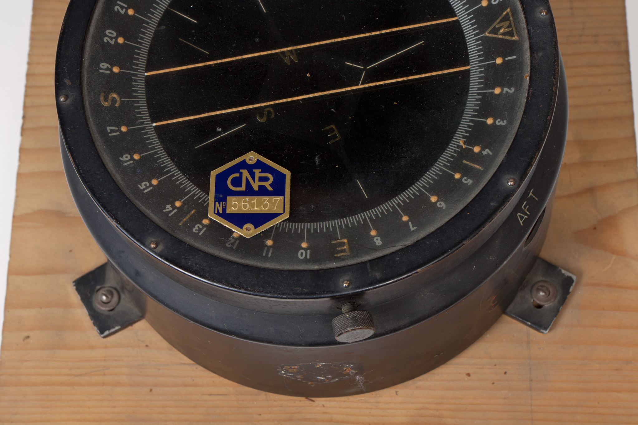 Sui lati della bussola sono evidenti i segni lasciati da due etichette, ora mancanti. Sopra la bussola è stata rinvenuta una targhetta di inventario CNR (non incollata, semplicemente appoggiata); data la provenienza dello strumento, sembra verosimile che la targhetta non abbia nessuna relazione con esso e che si trovi qui casualmente.