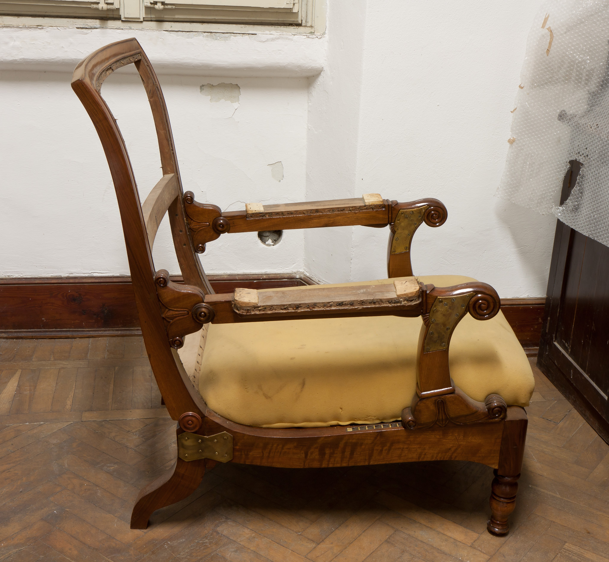 restaurata, ma mancano le coperture e le imbottiture dei braccioli