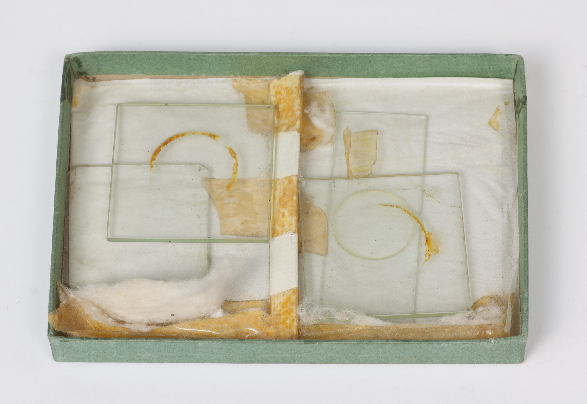- Scatoletta di cartone contenente quattro lastrine di vetro con incisi