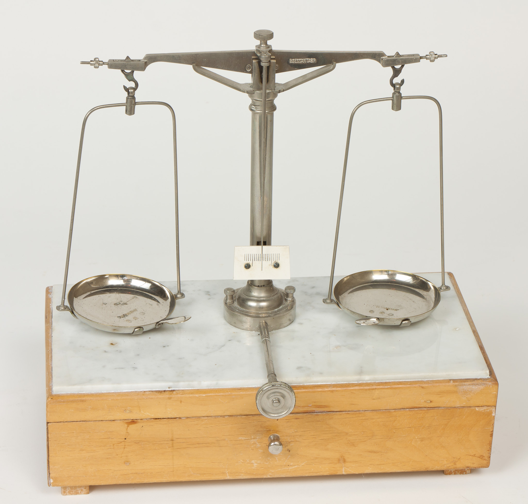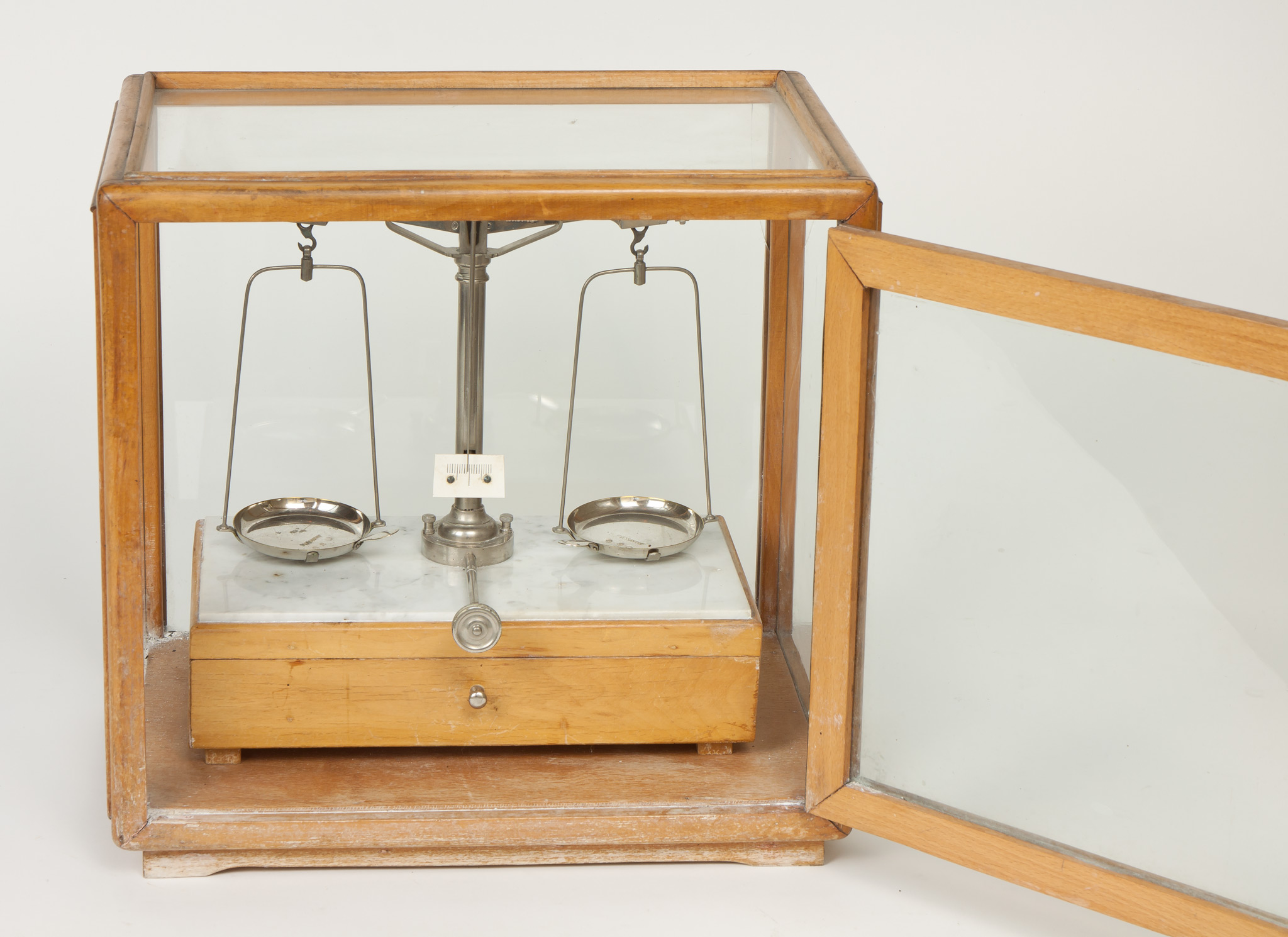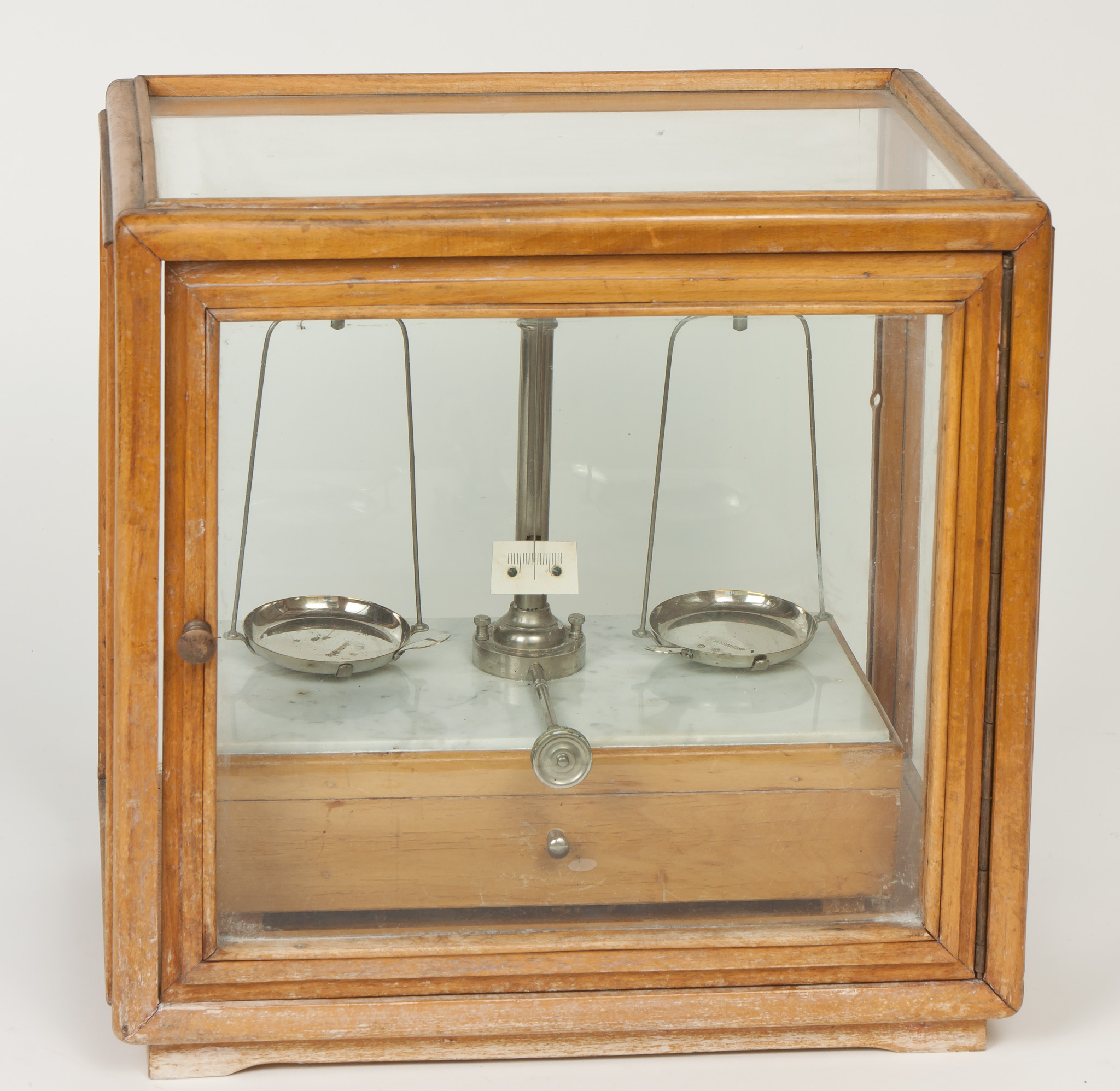 - Bilancia da laboratorio, completa di vetrinetta chiusa contro le