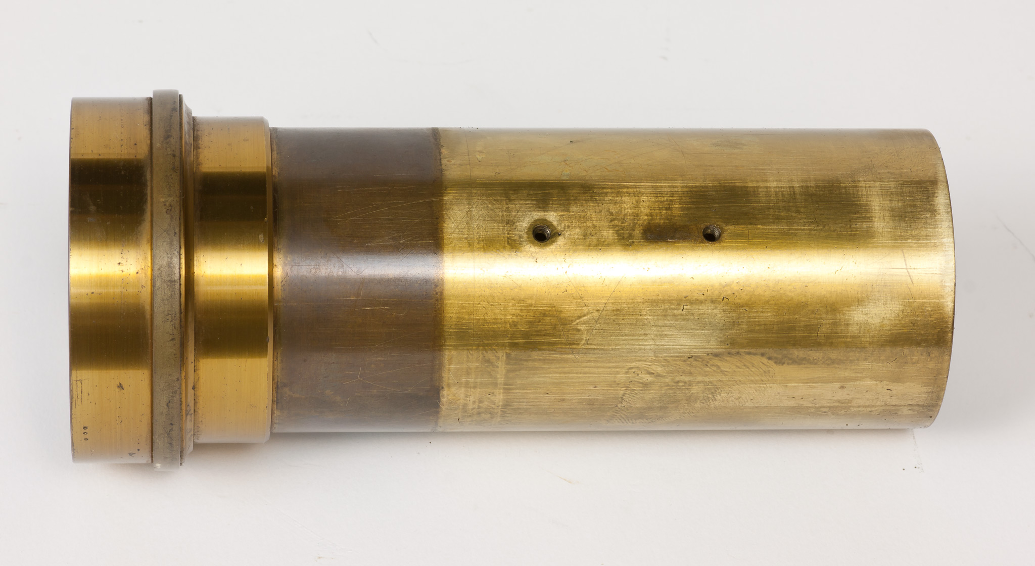 La parte del tubo opposta alla sede dell'obiettivo ha tre fori passanti non filettati spaziati di circa 120° tra di loro, alla distanza di 6.2 mm dal bordo del tubo. In posizione angolare intermedia tra due di questi fori sono praticati altri due fori passanti, allineati secondo l'asse del tubo, distanti rispettivamente 13.9 e 26.1 mm dal bordo del tubo. In corrispondenza del foro più distante dal bordo è posto, all'interno del tubo, un blocchetto di ottone che ospita una madrevite; il blocchetto è fissato al tubo per mezzo di due viti, poste a lato della madrevite.