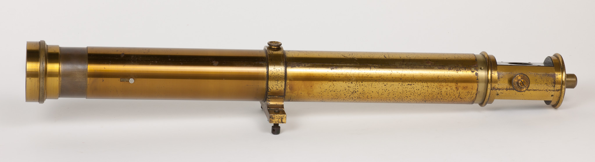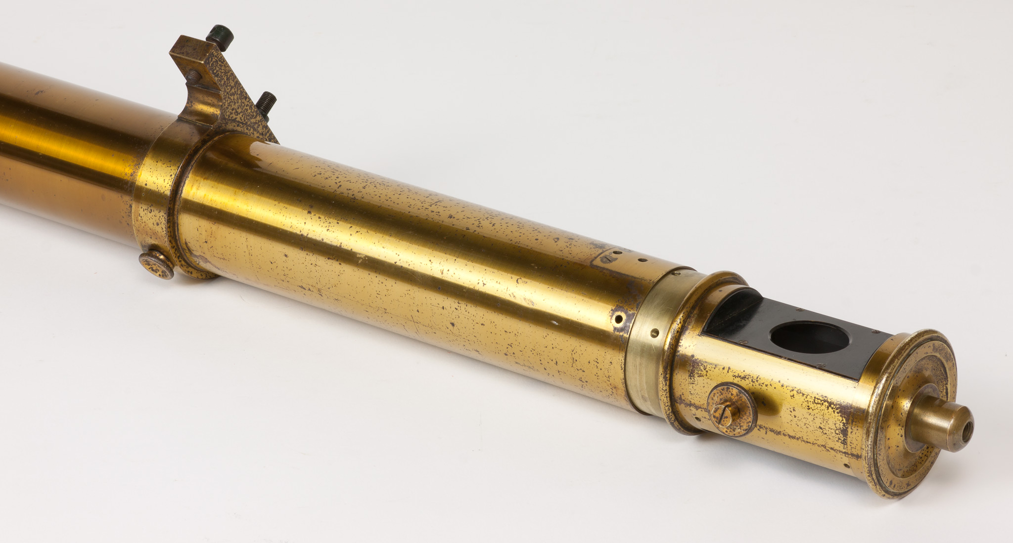 Il raccordo presente all'estremità aperta di questo pezzo si inserisce abbastanza bene nel tubo di cannocchiale descritto alla scheda 339, nell'apertura all'estremità opposta all'attacco dell'obiettivo, tanto da far pensare che i due pezzi facessero parte dello stesso strumento (in realtà per inserire un pezzo nell'altro occorre esercitare una certa forza). Anche la posizione dei tre fori corrisponde. In entrambi i casi i fori sono spaziati di circa 120° tra di loro; nel pezzo descritto in questa scheda la distanza di ciascuno dei tre fori dalla battuta in rilievo è di 6.4 mm, che corrisponde alla distanza di 6.2 mm tra i tre fori filettati e l'estremità del tubo della scheda 339.