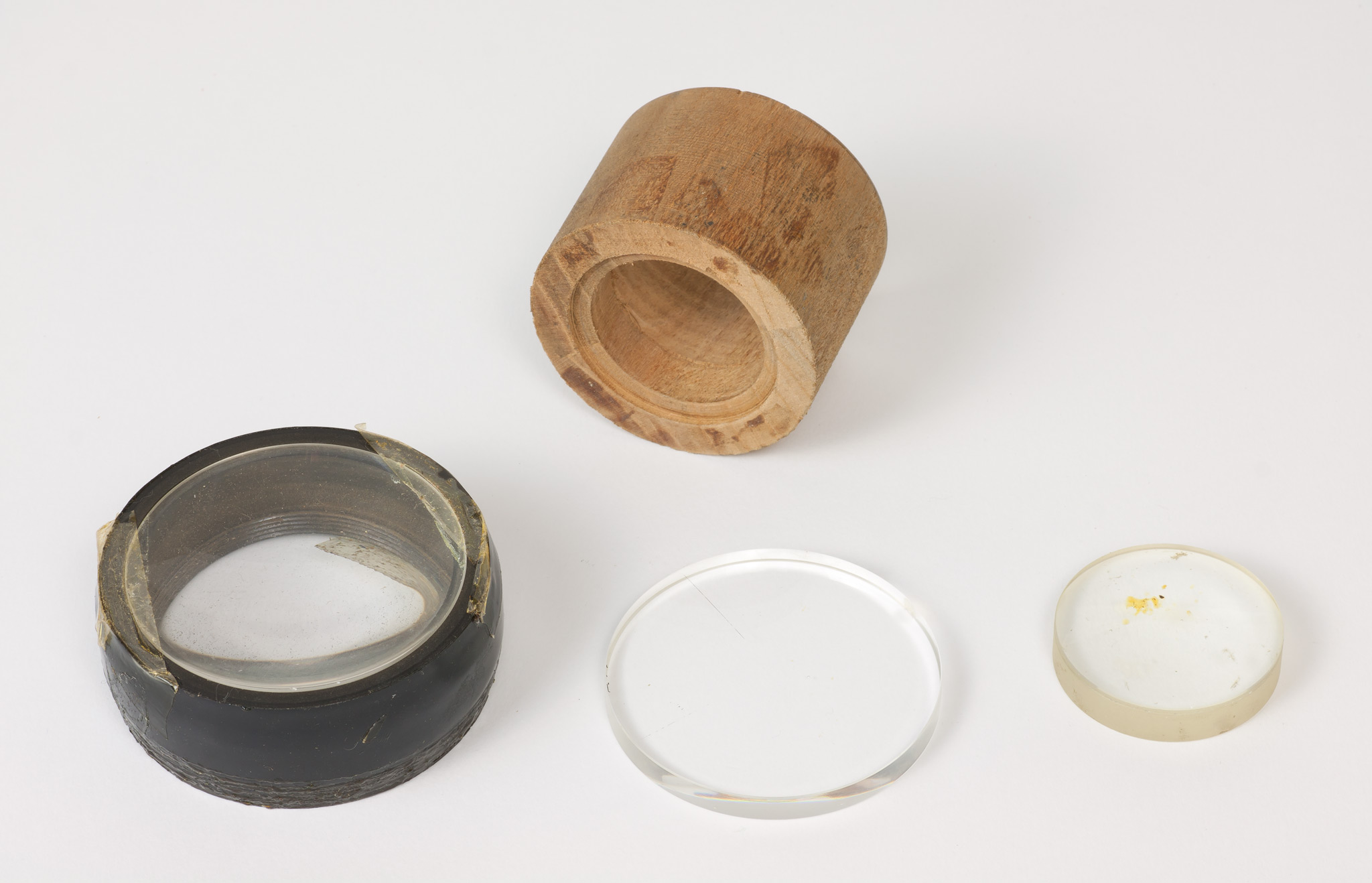 provvisoriamente con barilotti di plastica e di legno. L'oculare