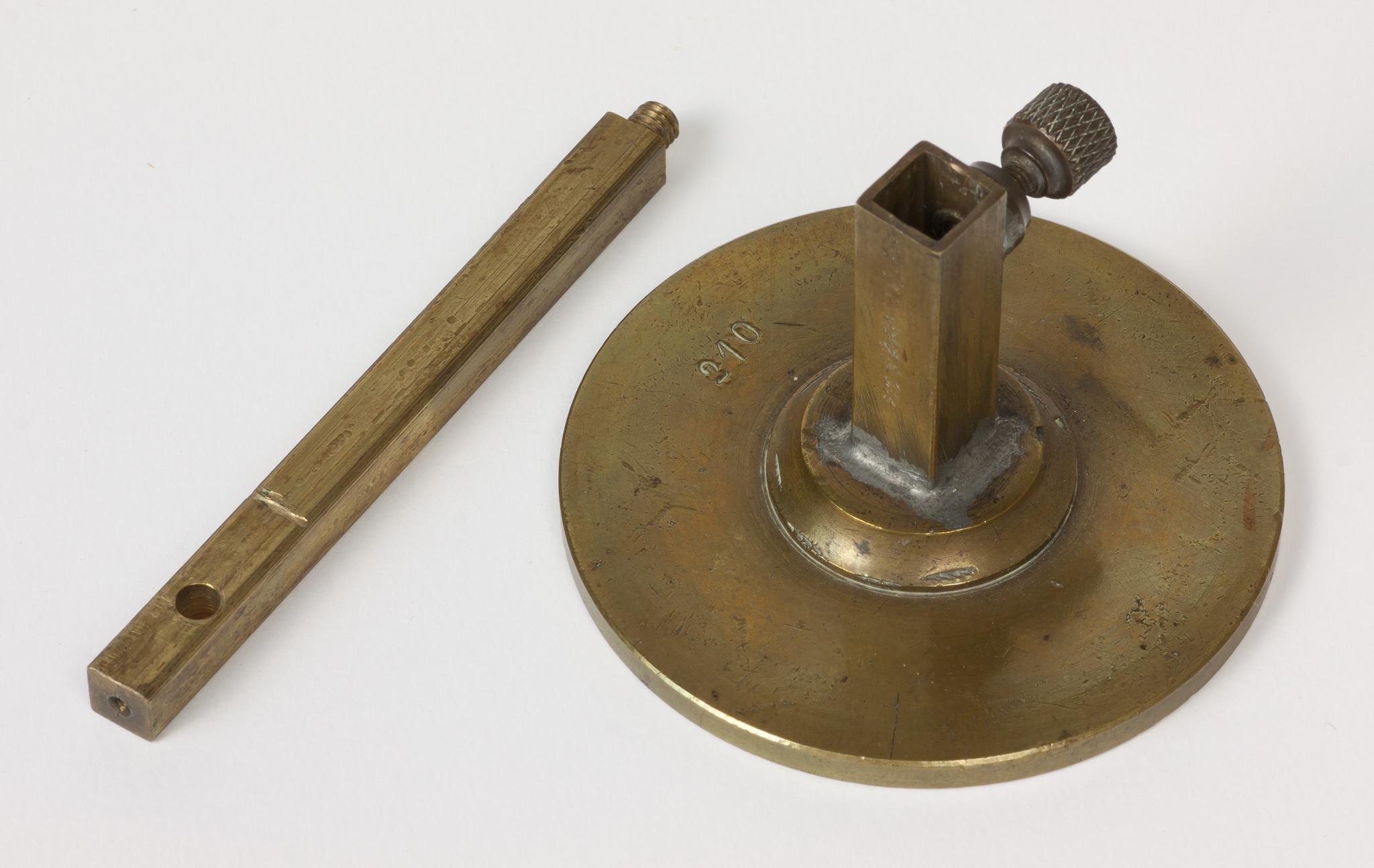 Supporto costituito da una base rotonda in ottone su cui è saldato un