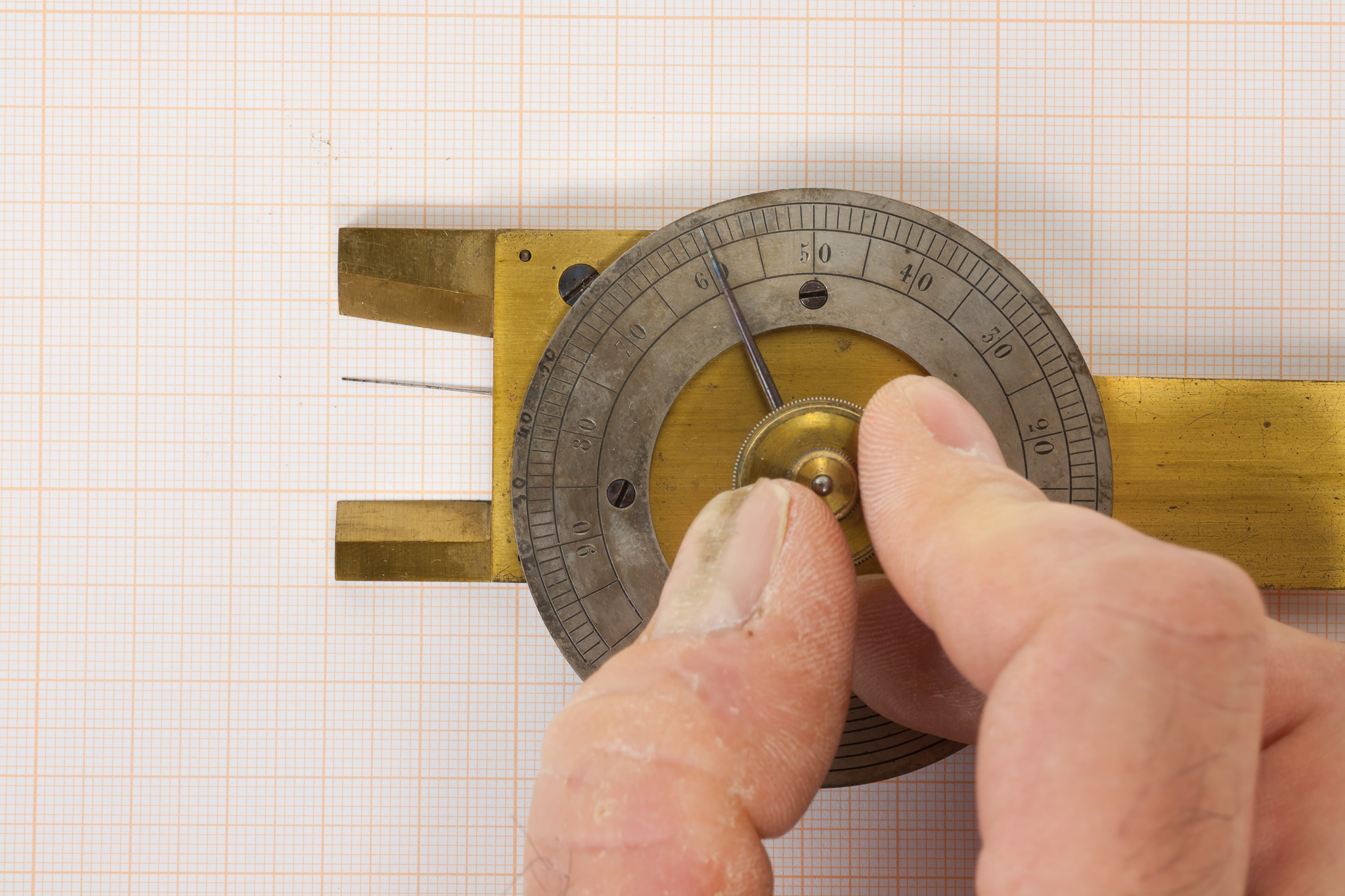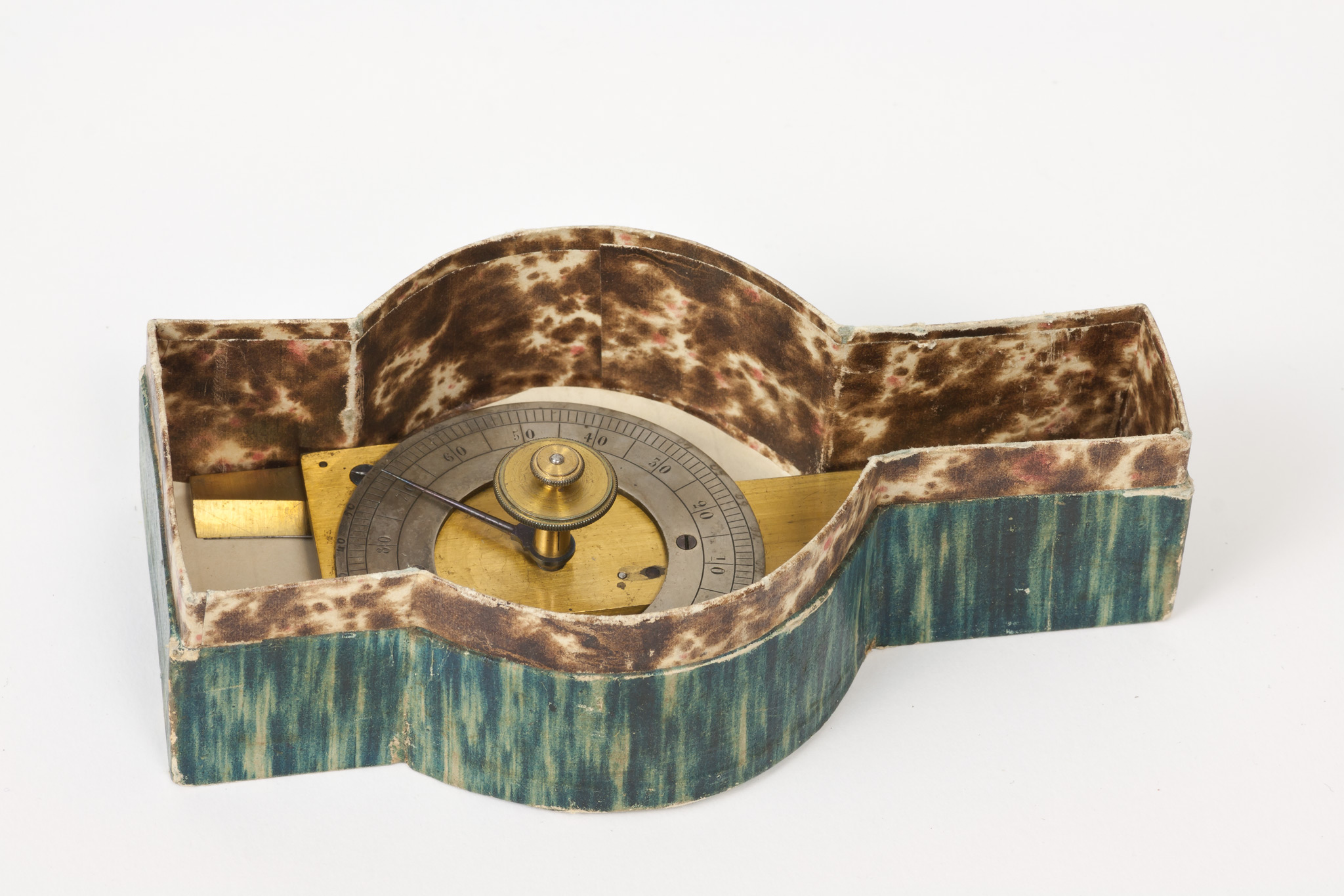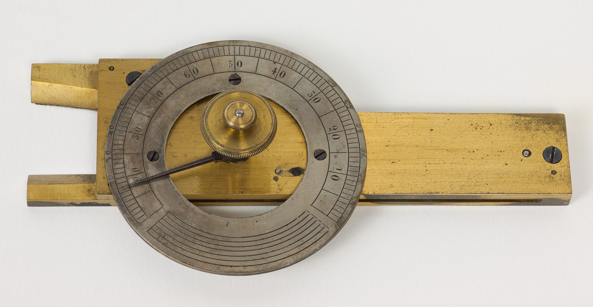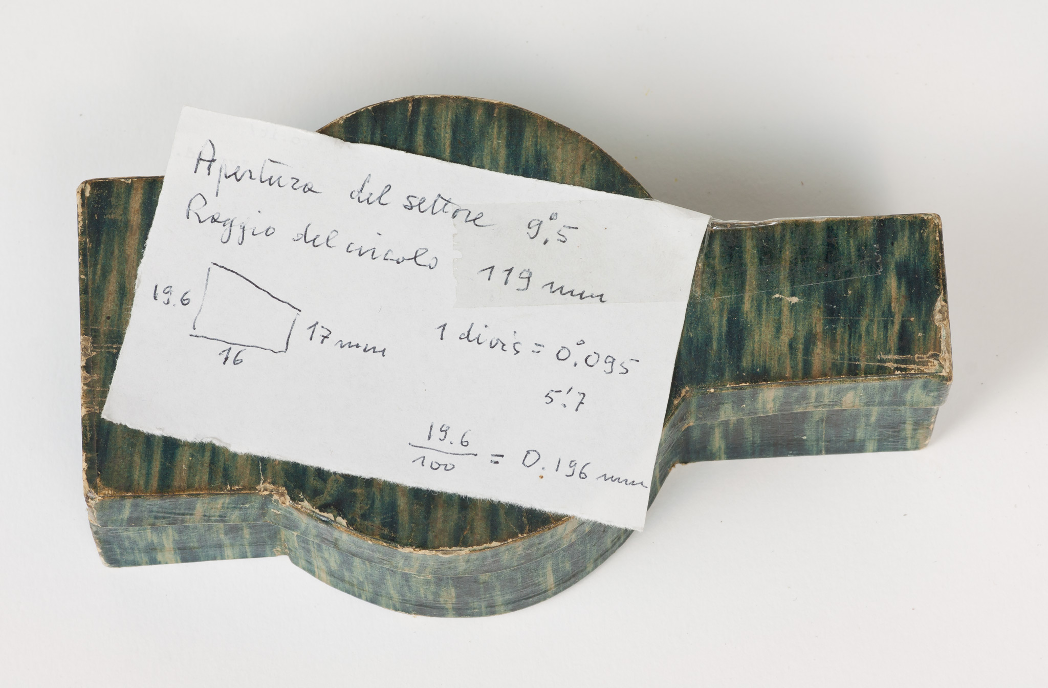 Note di Pietro Broglia.È contenuto in una scatoletta di cartone che ricopia la sagoma del piccolo strumento. Verosimilmente è ricondicibile a Carlini e a Francesco Grindel. Scrive infatti Schiaparelli: «[Carlini] divise colle proprie mani il lembo argenteo nuovamente adattato al settore equatoriale di Sisson. In generale egli ebbe molta inclinazione alle operazioni meccaniche, in cui trovava sollievo alla mente stanca dalle continue e profonde meditazioni.»