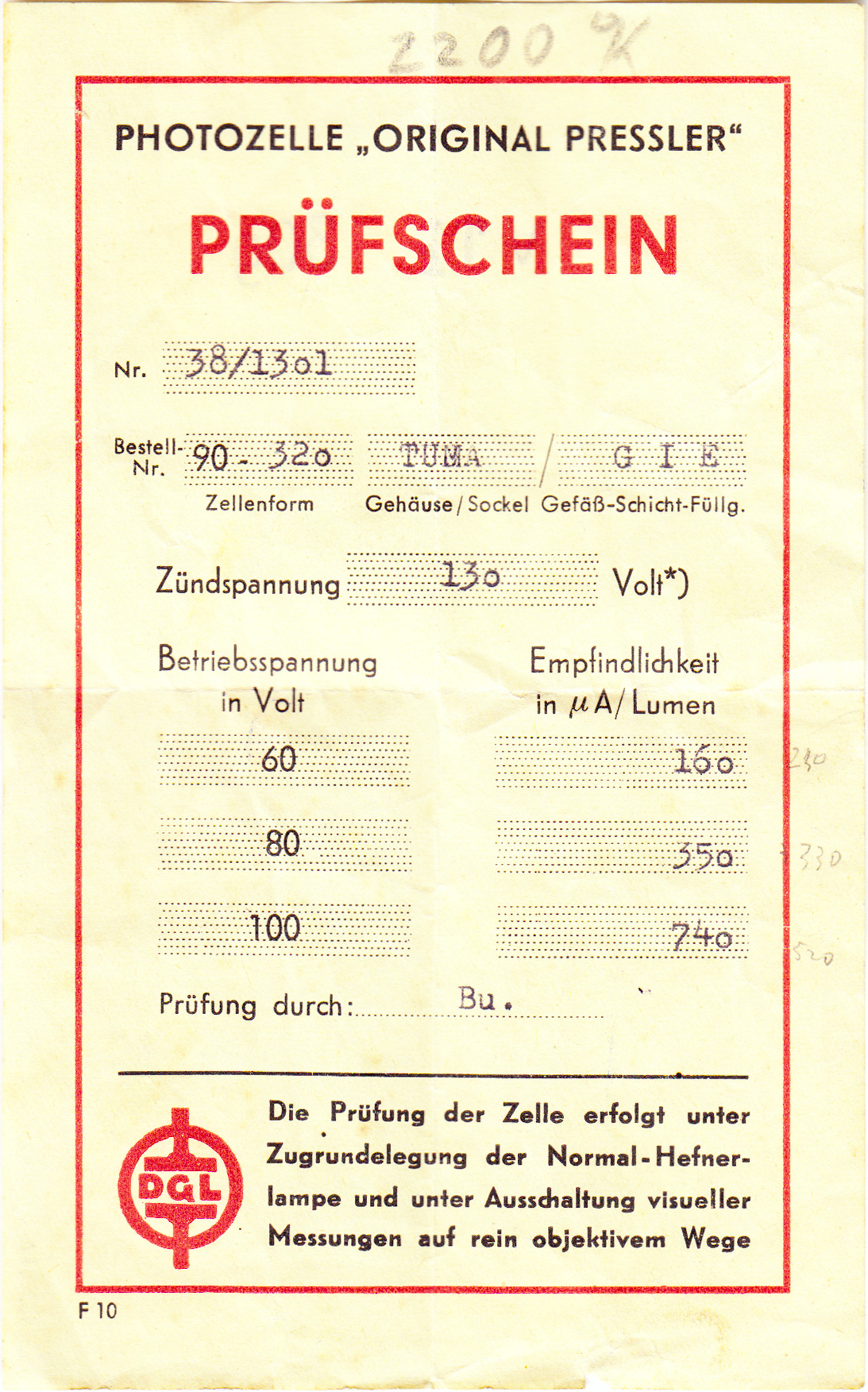 (J) Cellula fotoelettrica Zeiss