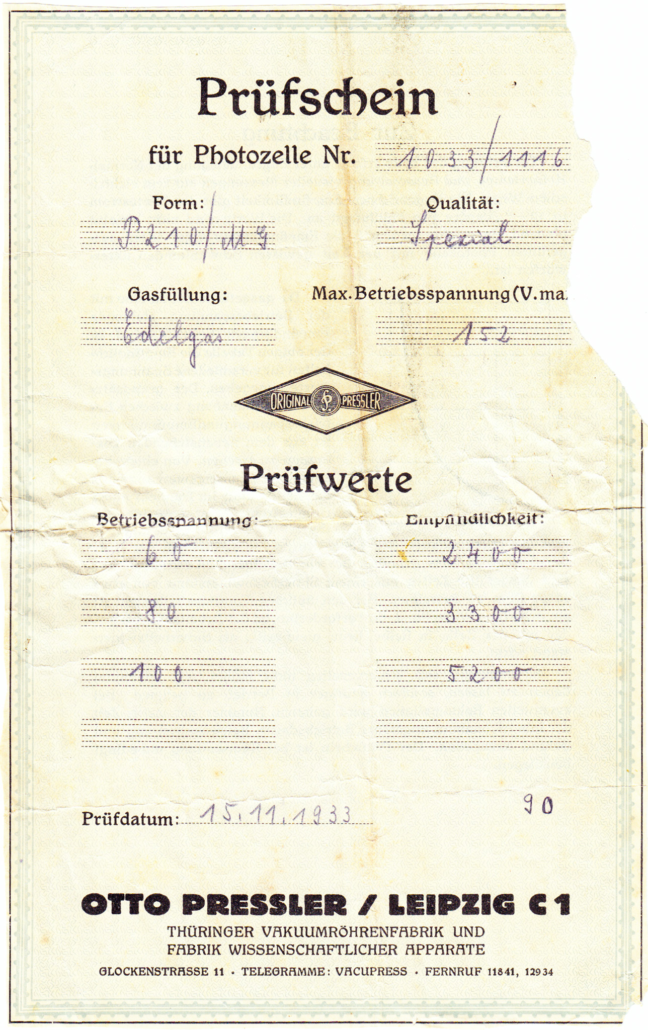 (A) Cellula fotoelettrica Pressler