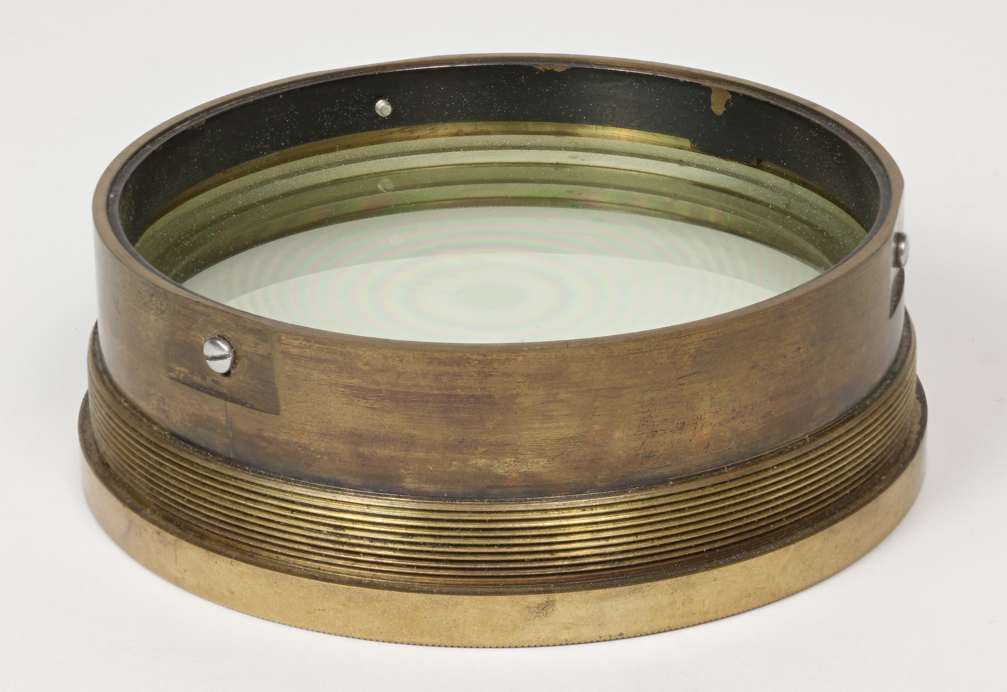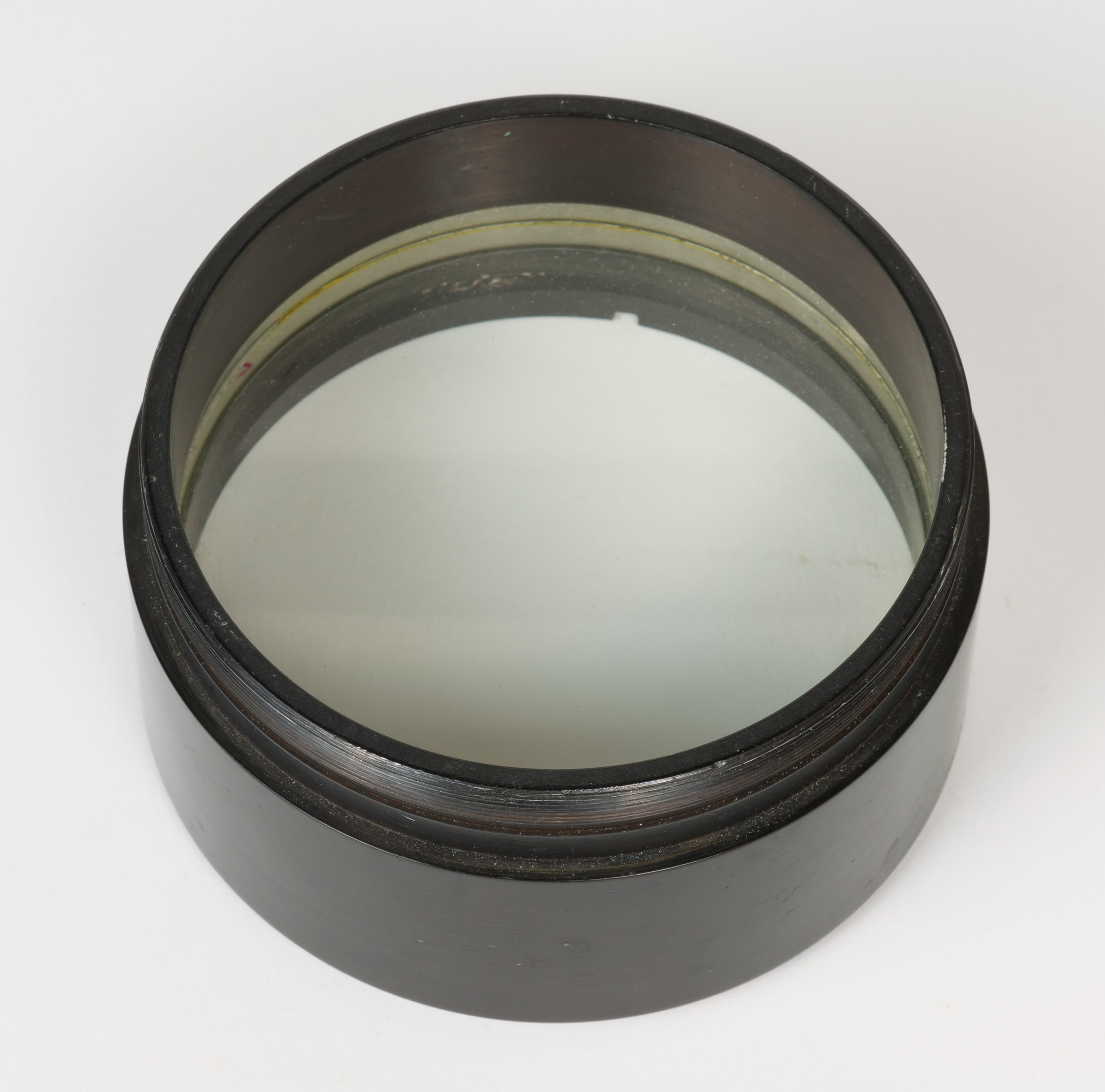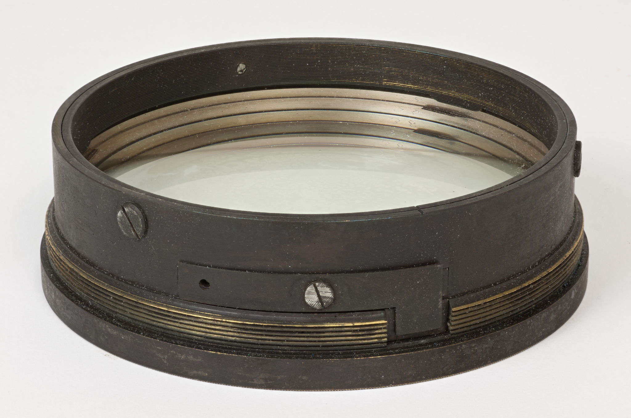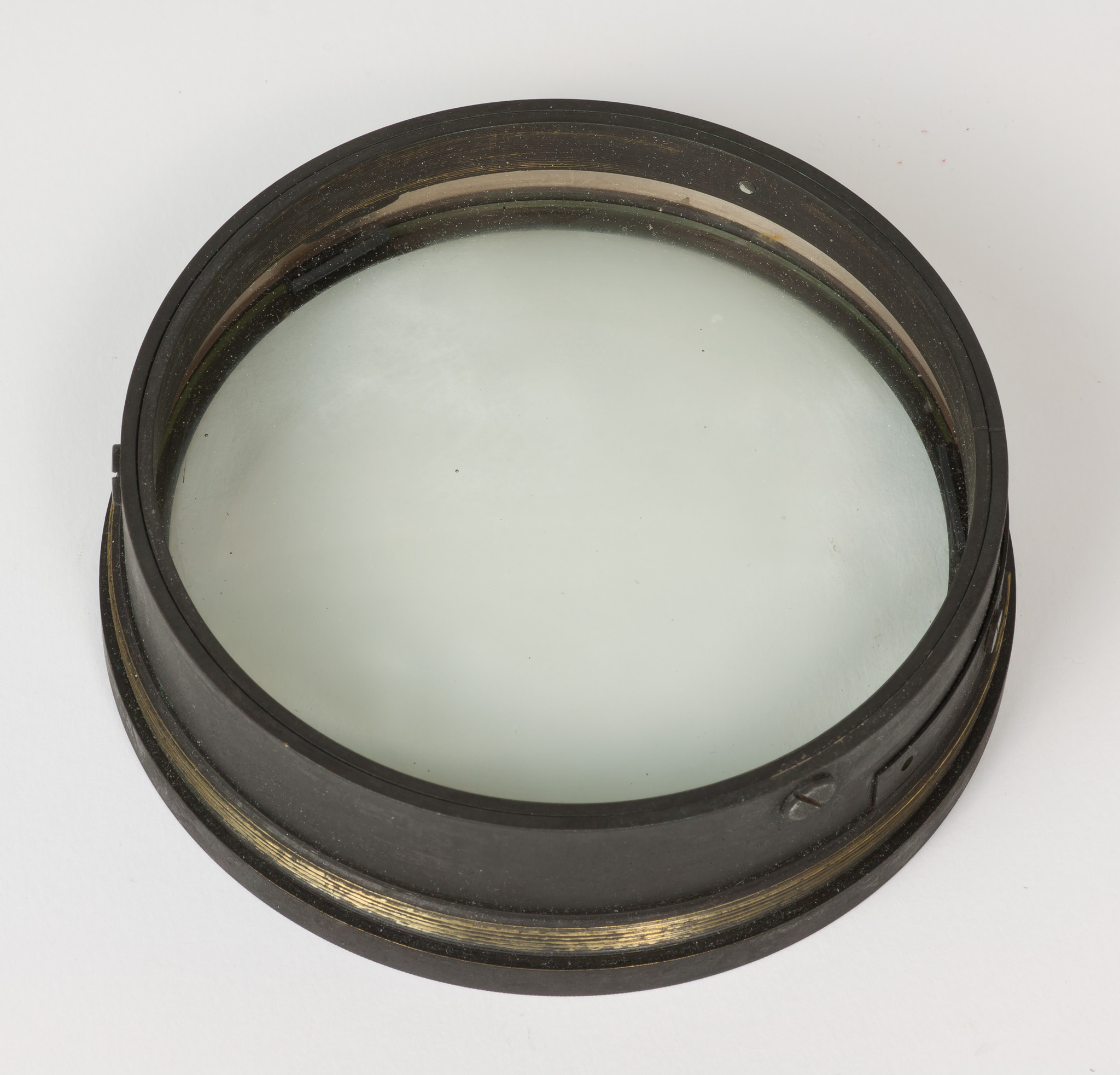 Obiettivo (B). La lunghezza focale e il diametro suggeriscono che si tratti dell'obiettivo del circolo meridiano di Starke, collocato nel 1834 a Brera sulla torre che era stata il campanile della chiesa di Santa Maria in Brera, e distrutto in un bombardamento aereo durante la Seconda Guerra Mondiale; tuttavia all'inizio della guerra gli obiettivi di diversi strumenti erano stati trasportati a Merate, proprio in previsione di possibili danni per i bombardamenti. Nell'introduzione al catalogo stellare prodotto con il circolo di Starke negli anni 1860-72, Schiaparelli e Celoria riportano le misure approssimate della lente (l'obbiettivo è di 4 pollici, misura di Parigi, la distanza focale di 5 piedi) e aggiungono: Una esatta idea della sua costruzione si può avere consultando la descrizione e il disegno pubblicato da Santini del Circolo Meridiano della Specola di Padova, il quale è quasi perfettamente eguale al nostro. Nella pubblicazione citata, Santini riporta (pag. 13): Il cannocchiale acromatico ad obbiettivo duplicato [...] ha 48.5 linee (misura di Parigi) di apertura; la sua distanza focale è di pollici parigini 60.5. Il pollice parigino (pouce) equivale a 2.707 cm e la linea (ligne) ne è la dodicesima parte, cioè equivale a 2.256 mm. Quindi le misure indicate dal Santini equivalgono a 10.94 cm di apertura e 163.35 cm di focale, in buon accordo con i valori determinati per l'obiettivo (B).