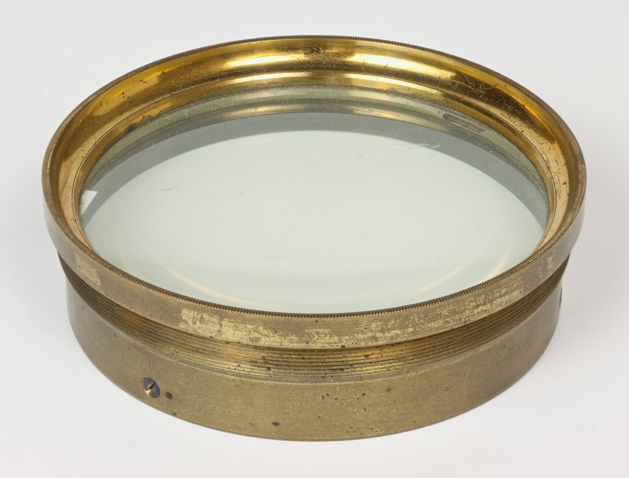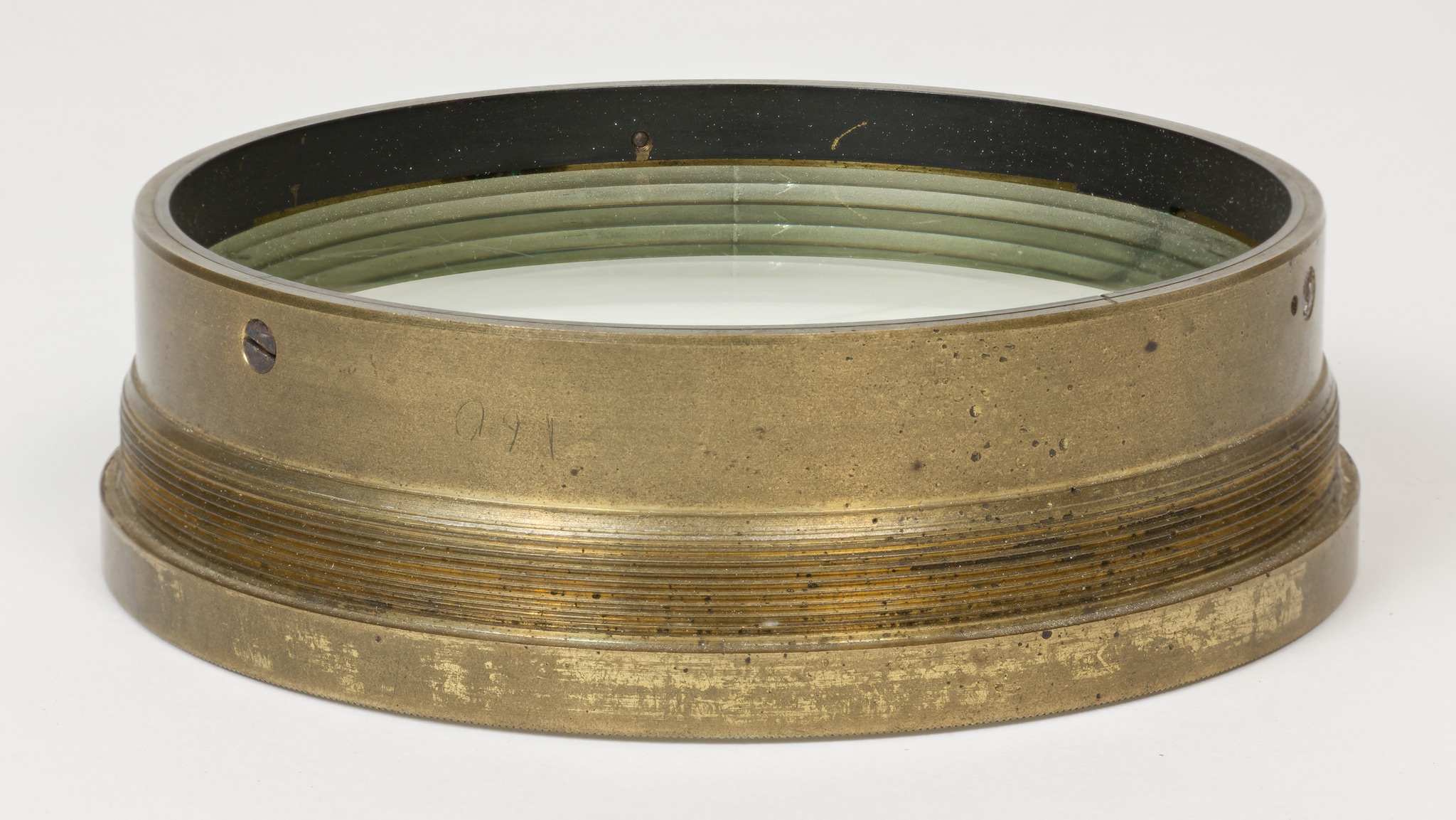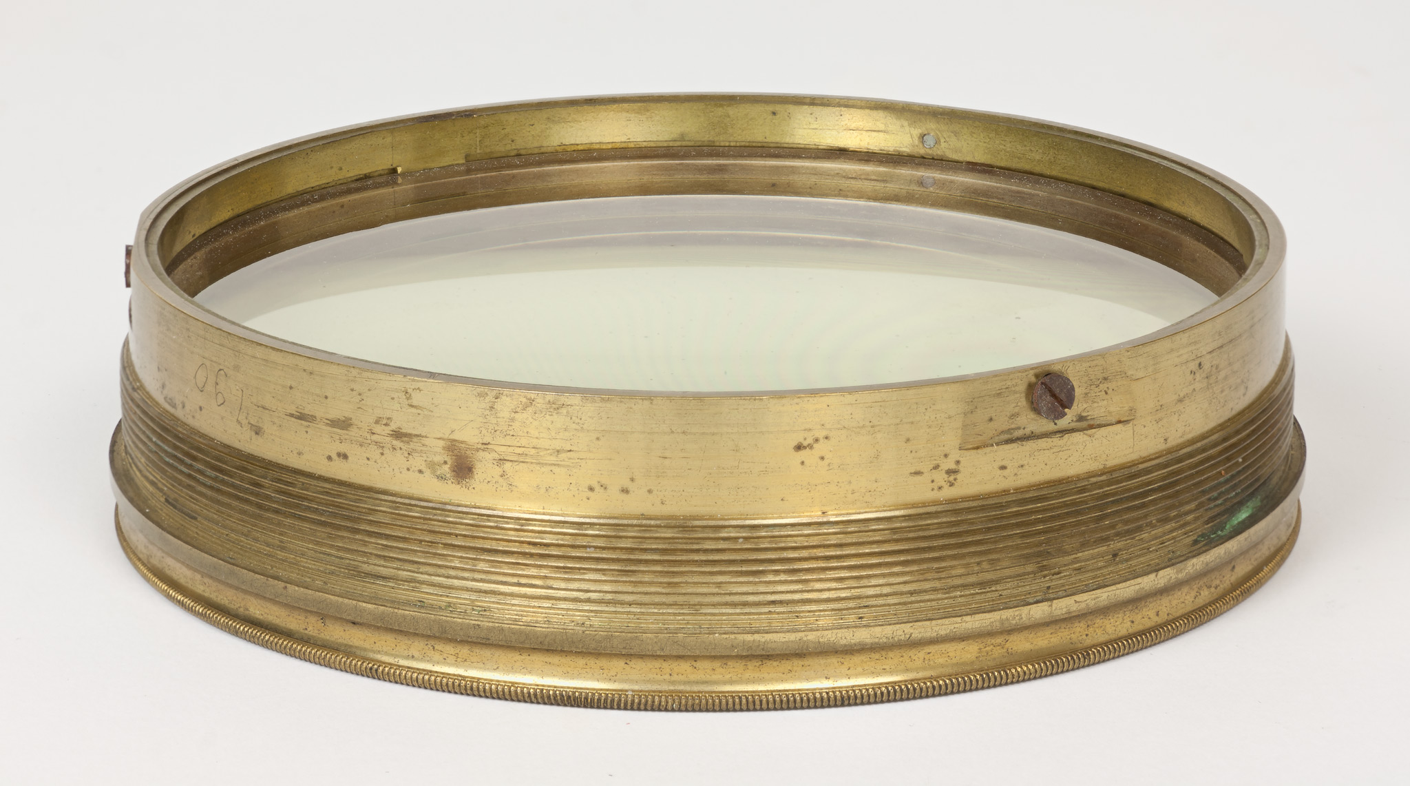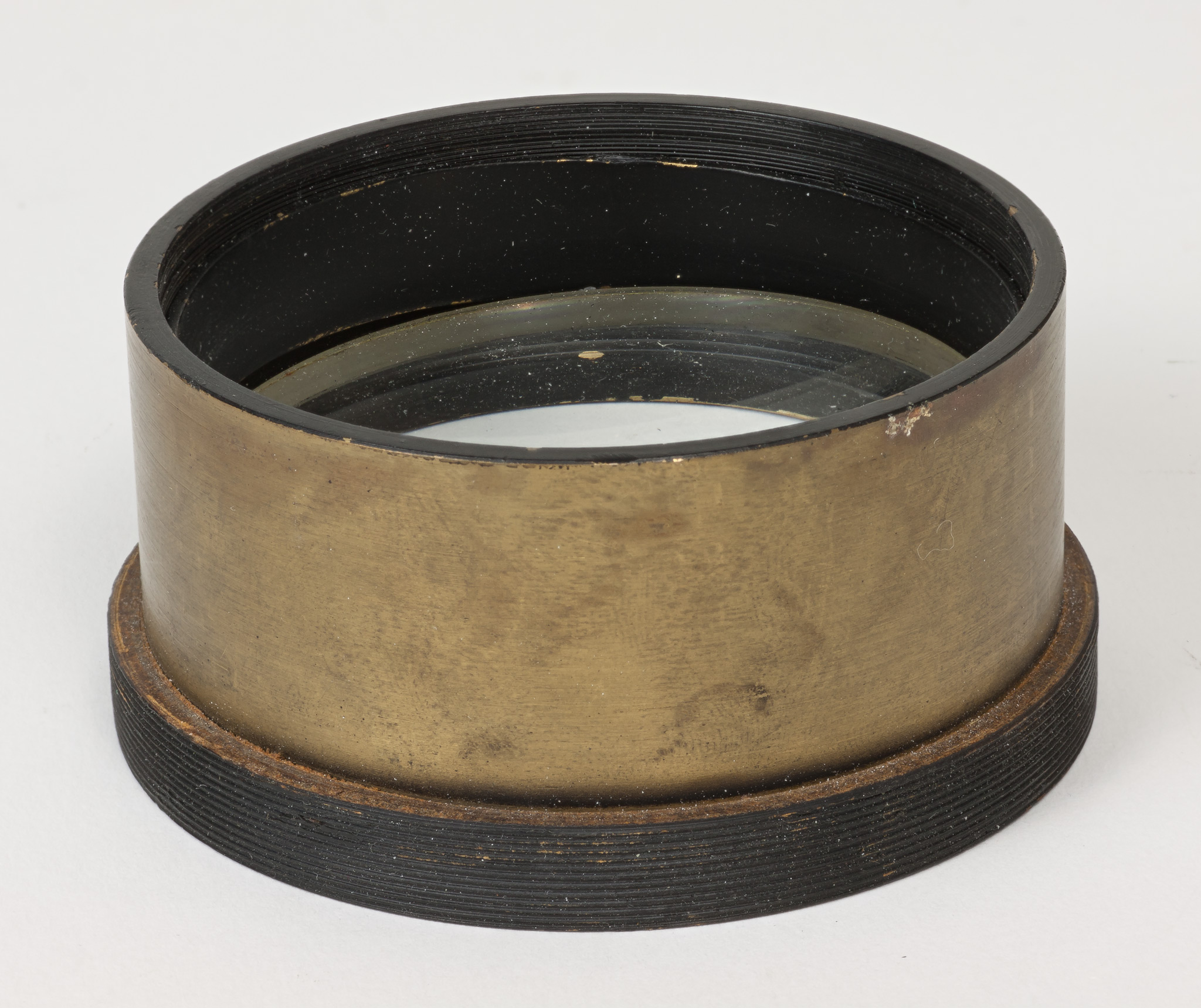 Obiettivo (B). La lunghezza focale e il diametro suggeriscono che si tratti dell'obiettivo del circolo meridiano di Starke, collocato nel 1834 a Brera sulla torre che era stata il campanile della chiesa di Santa Maria in Brera, e distrutto in un bombardamento aereo durante la Seconda Guerra Mondiale; tuttavia all'inizio della guerra gli obiettivi di diversi strumenti erano stati trasportati a Merate, proprio in previsione di possibili danni per i bombardamenti. Nell'introduzione al catalogo stellare prodotto con il circolo di Starke negli anni 1860-72, Schiaparelli e Celoria riportano le misure approssimate della lente (l'obbiettivo è di 4 pollici, misura di Parigi, la distanza focale di 5 piedi) e aggiungono: Una esatta idea della sua costruzione si può avere consultando la descrizione e il disegno pubblicato da Santini del Circolo Meridiano della Specola di Padova, il quale è quasi perfettamente eguale al nostro. Nella pubblicazione citata, Santini riporta (pag. 13): Il cannocchiale acromatico ad obbiettivo duplicato [...] ha 48.5 linee (misura di Parigi) di apertura; la sua distanza focale è di pollici parigini 60.5. Il pollice parigino (pouce) equivale a 2.707 cm e la linea (ligne) ne è la dodicesima parte, cioè equivale a 2.256 mm. Quindi le misure indicate dal Santini equivalgono a 10.94 cm di apertura e 163.35 cm di focale, in buon accordo con i valori determinati per l'obiettivo (B).