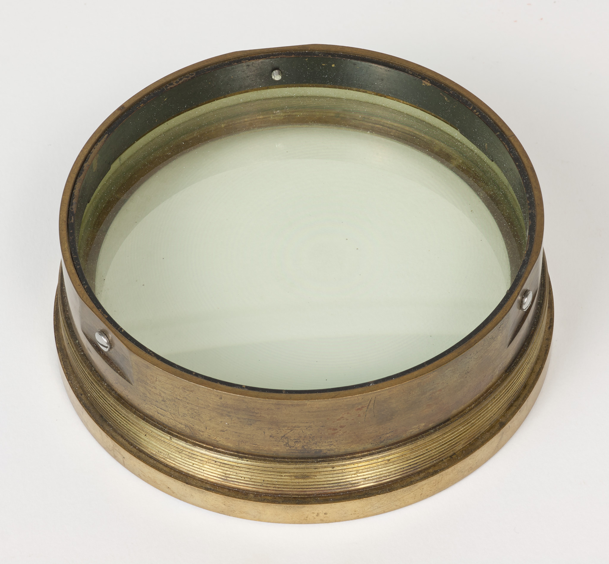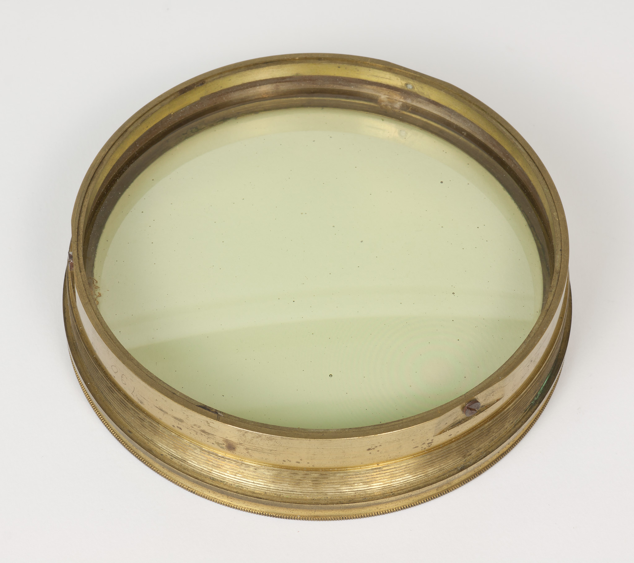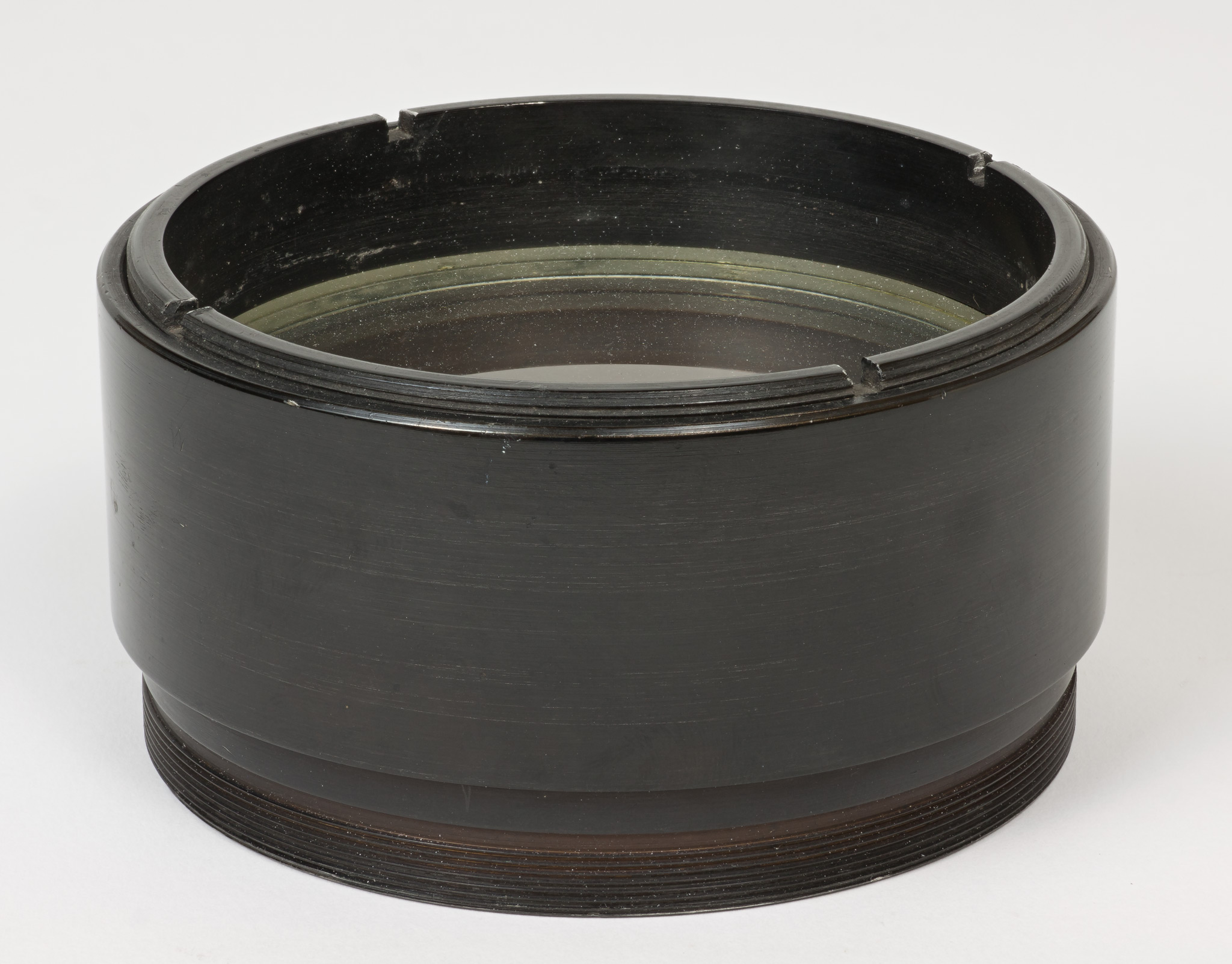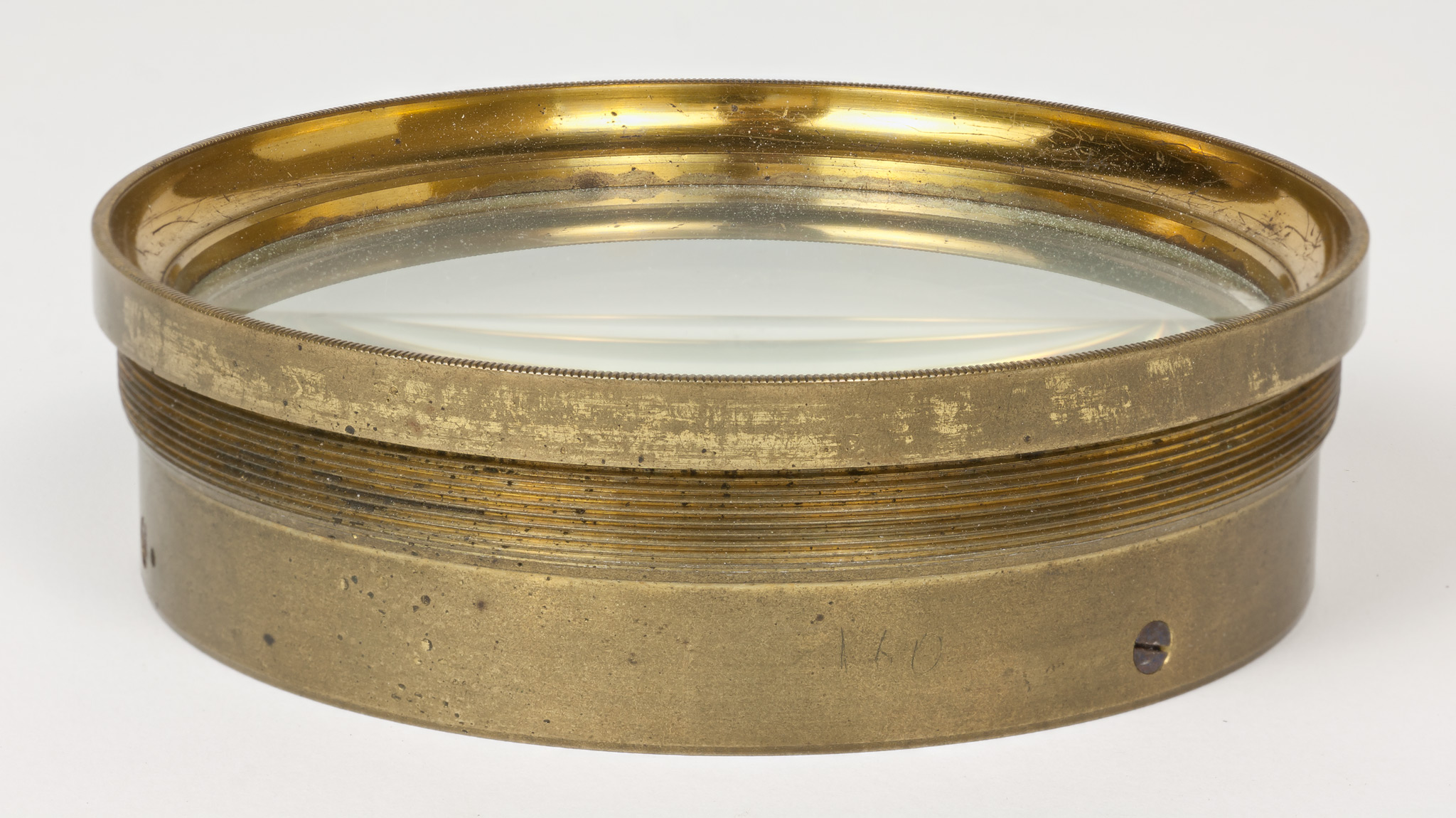 Obiettivo (B). La lunghezza focale e il diametro suggeriscono che si tratti dell'obiettivo del circolo meridiano di Starke, collocato nel 1834 a Brera sulla torre che era stata il campanile della chiesa di Santa Maria in Brera, e distrutto in un bombardamento aereo durante la Seconda Guerra Mondiale; tuttavia all'inizio della guerra gli obiettivi di diversi strumenti erano stati trasportati a Merate, proprio in previsione di possibili danni per i bombardamenti. Nell'introduzione al catalogo stellare prodotto con il circolo di Starke negli anni 1860-72, Schiaparelli e Celoria riportano le misure approssimate della lente (l'obbiettivo è di 4 pollici, misura di Parigi, la distanza focale di 5 piedi) e aggiungono: Una esatta idea della sua costruzione si può avere consultando la descrizione e il disegno pubblicato da Santini del Circolo Meridiano della Specola di Padova, il quale è quasi perfettamente eguale al nostro. Nella pubblicazione citata, Santini riporta (pag. 13): Il cannocchiale acromatico ad obbiettivo duplicato [...] ha 48.5 linee (misura di Parigi) di apertura; la sua distanza focale è di pollici parigini 60.5. Il pollice parigino (pouce) equivale a 2.707 cm e la linea (ligne) ne è la dodicesima parte, cioè equivale a 2.256 mm. Quindi le misure indicate dal Santini equivalgono a 10.94 cm di apertura e 163.35 cm di focale, in buon accordo con i valori determinati per l'obiettivo (B).