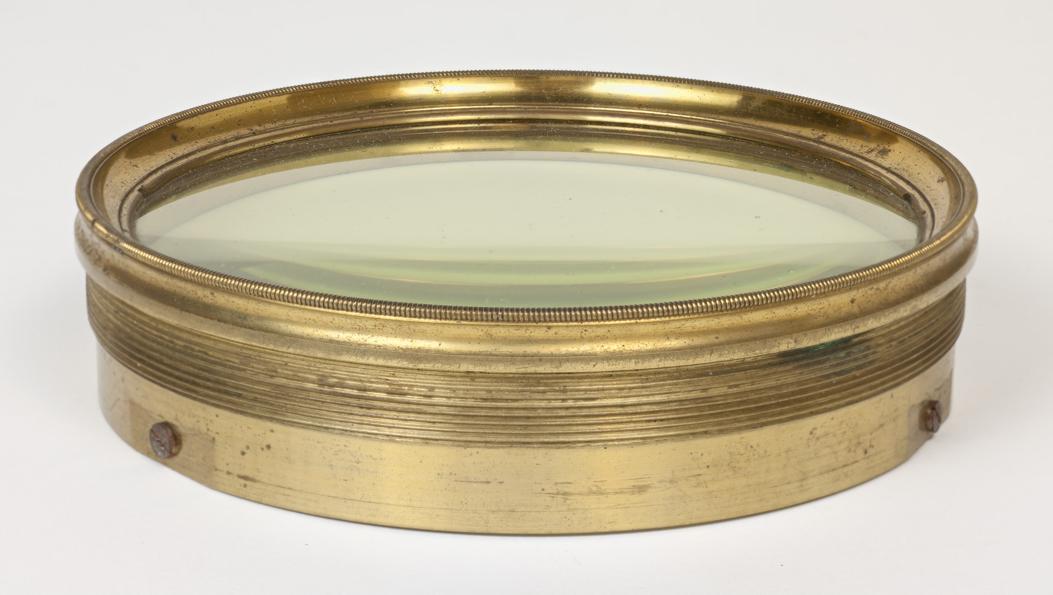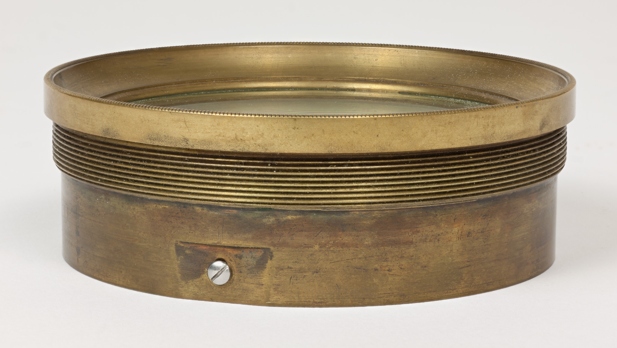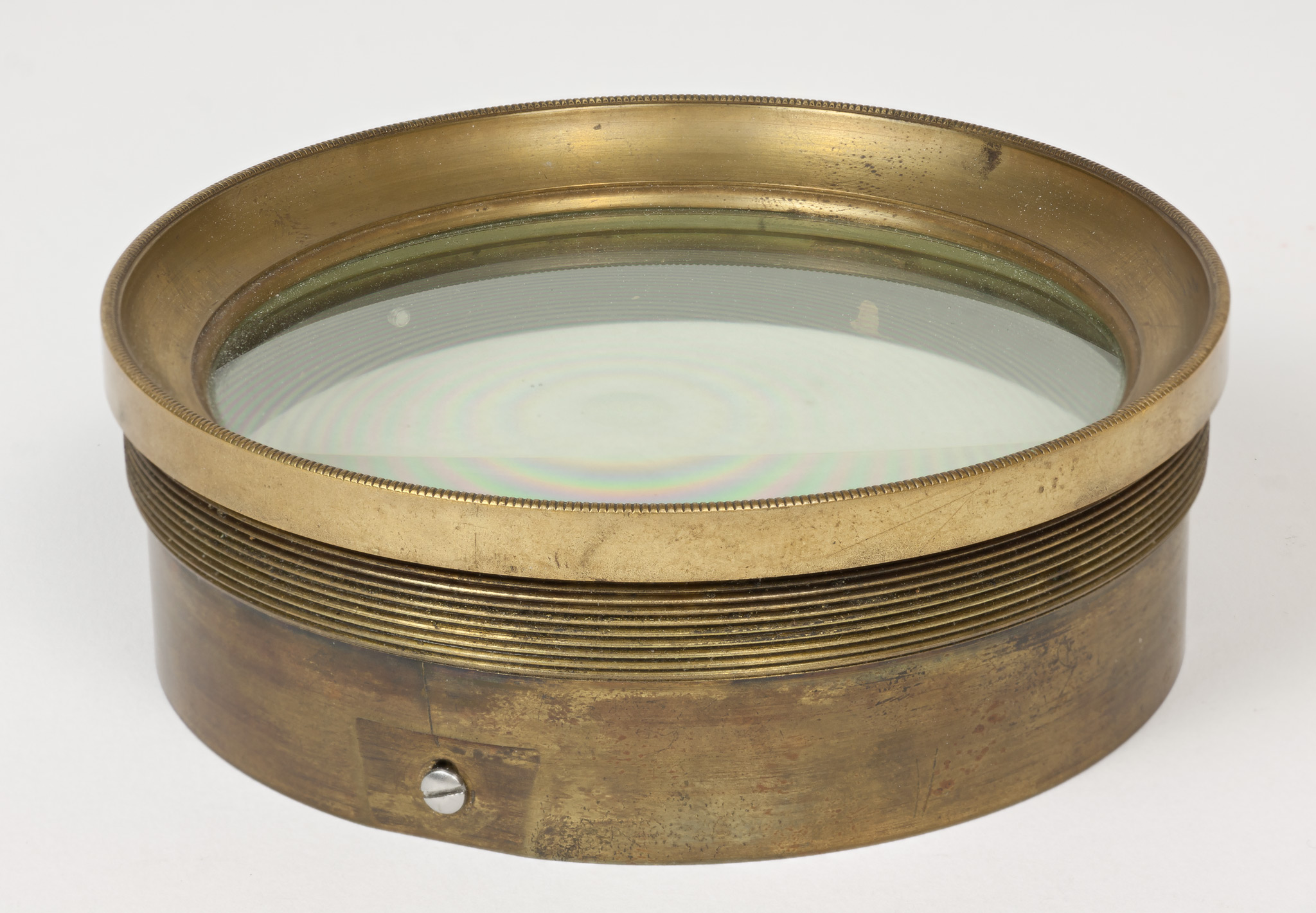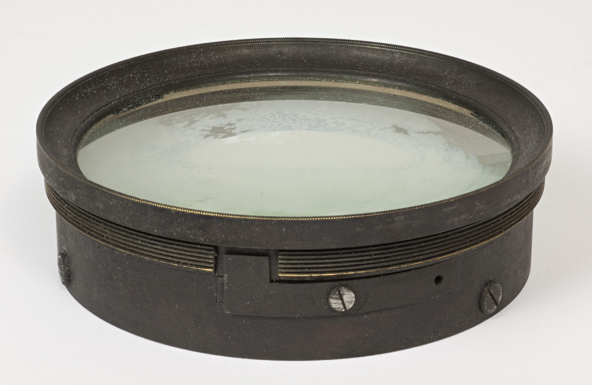 Obiettivo (B). La lunghezza focale e il diametro suggeriscono che si tratti dell'obiettivo del circolo meridiano di Starke, collocato nel 1834 a Brera sulla torre che era stata il campanile della chiesa di Santa Maria in Brera, e distrutto in un bombardamento aereo durante la Seconda Guerra Mondiale; tuttavia all'inizio della guerra gli obiettivi di diversi strumenti erano stati trasportati a Merate, proprio in previsione di possibili danni per i bombardamenti. Nell'introduzione al catalogo stellare prodotto con il circolo di Starke negli anni 1860-72, Schiaparelli e Celoria riportano le misure approssimate della lente (l'obbiettivo è di 4 pollici, misura di Parigi, la distanza focale di 5 piedi) e aggiungono: Una esatta idea della sua costruzione si può avere consultando la descrizione e il disegno pubblicato da Santini del Circolo Meridiano della Specola di Padova, il quale è quasi perfettamente eguale al nostro. Nella pubblicazione citata, Santini riporta (pag. 13): Il cannocchiale acromatico ad obbiettivo duplicato [...] ha 48.5 linee (misura di Parigi) di apertura; la sua distanza focale è di pollici parigini 60.5. Il pollice parigino (pouce) equivale a 2.707 cm e la linea (ligne) ne è la dodicesima parte, cioè equivale a 2.256 mm. Quindi le misure indicate dal Santini equivalgono a 10.94 cm di apertura e 163.35 cm di focale, in buon accordo con i valori determinati per l'obiettivo (B).