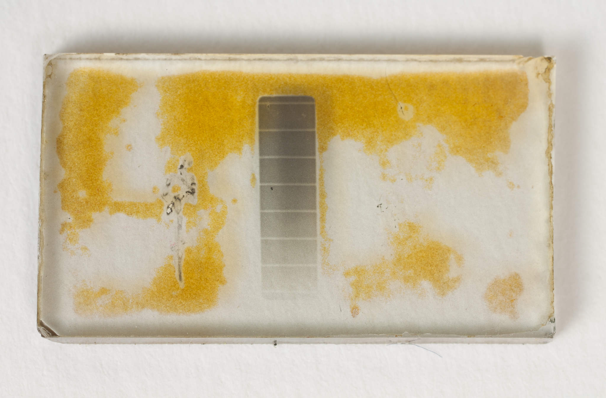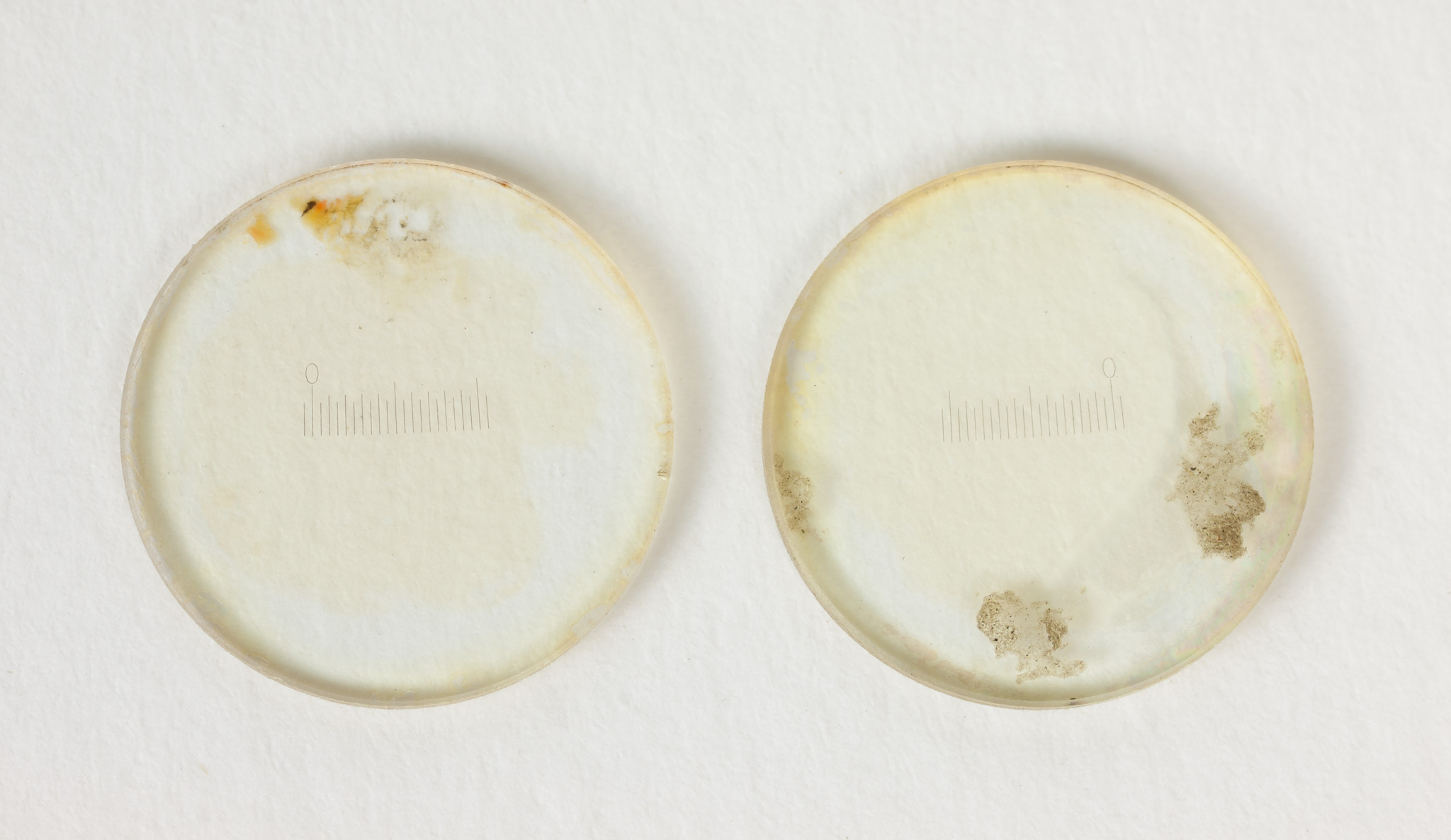(A) Vetrini contenuti in una scatoletta di plastica verde