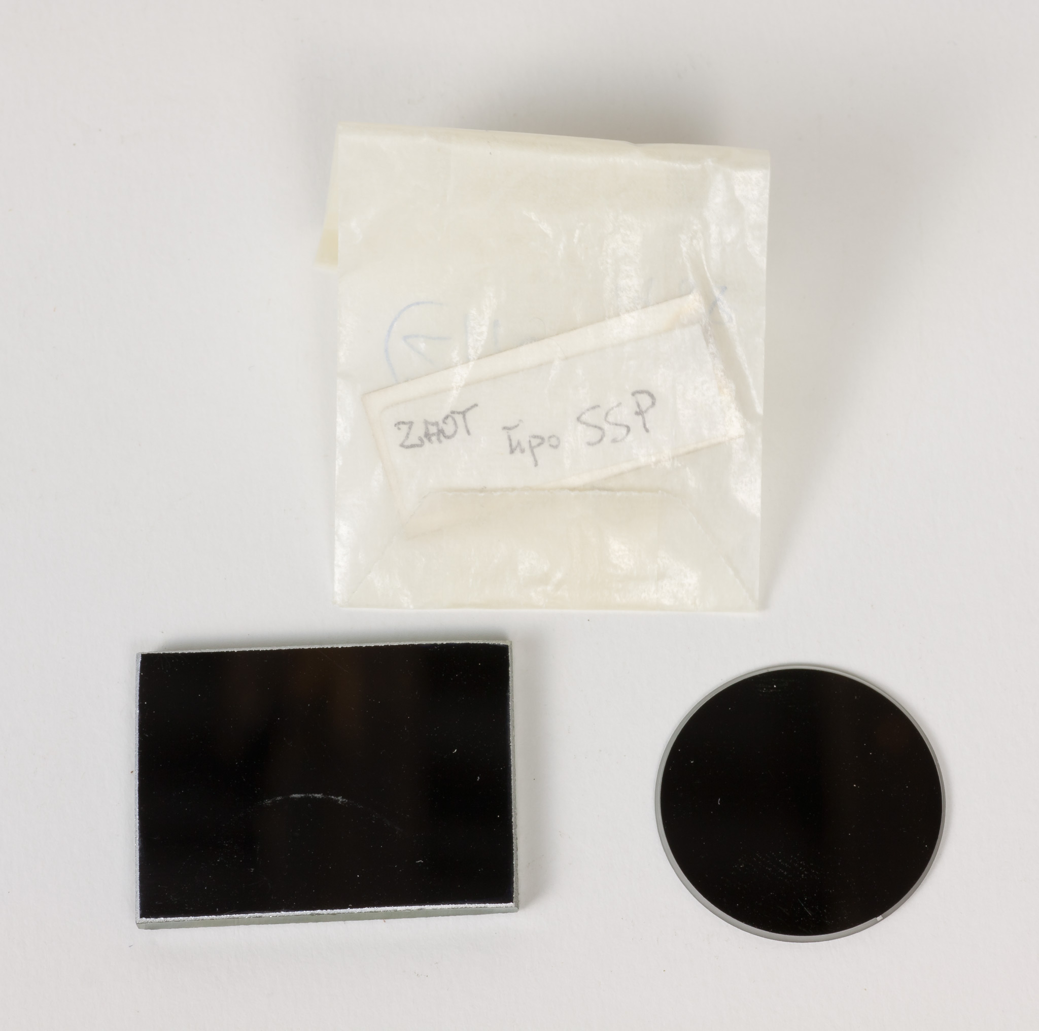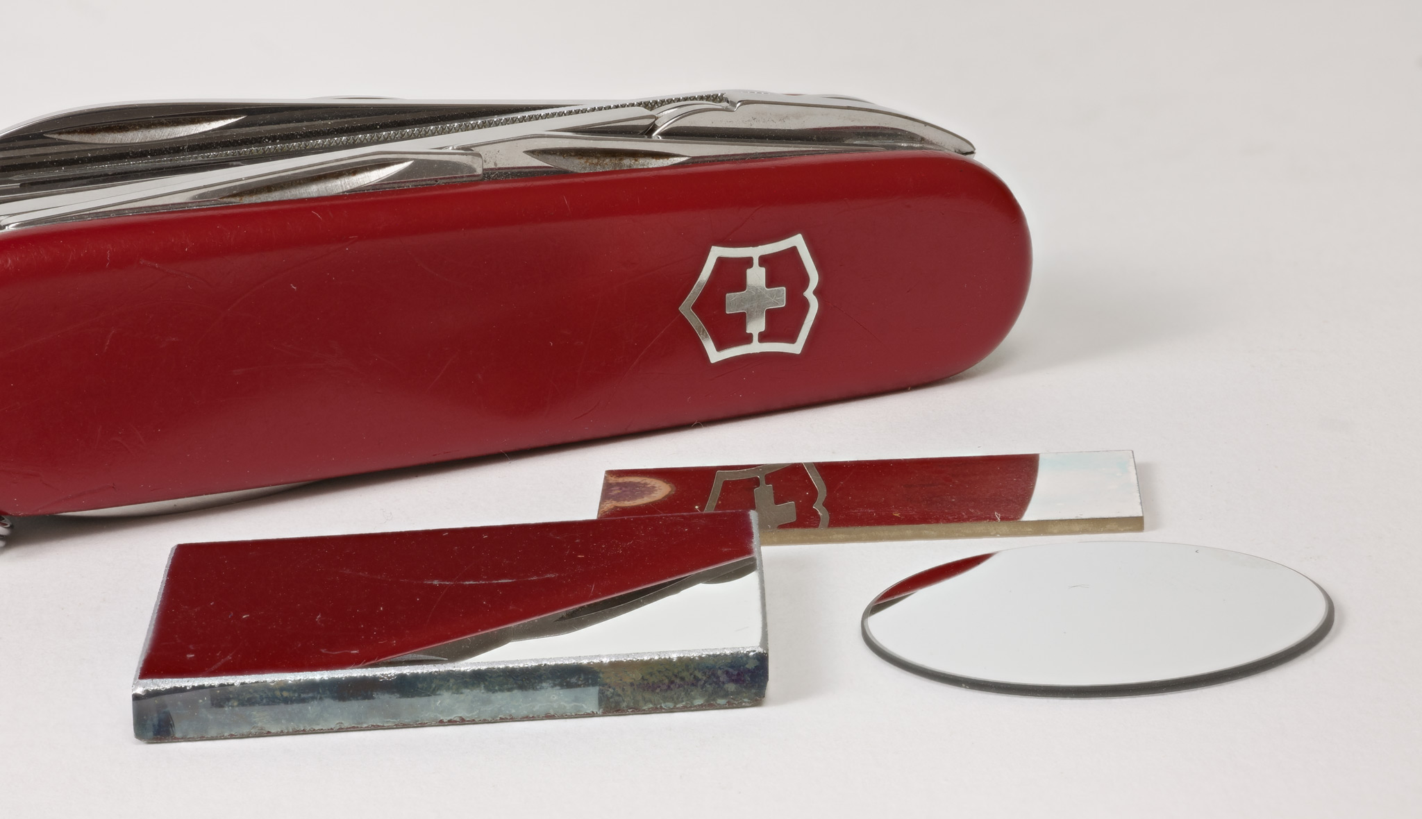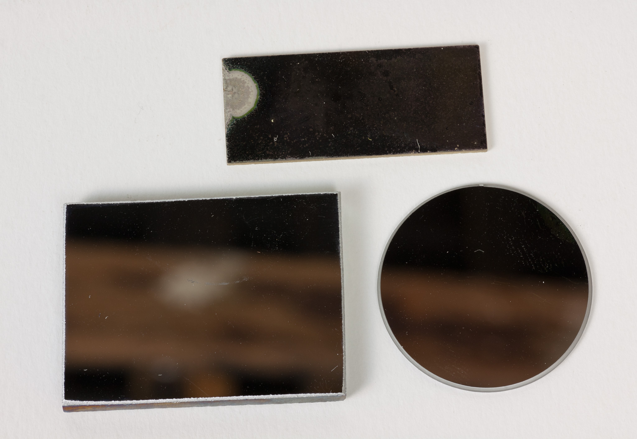 (B, C, D) Tre specchietti piani (due rettangolari, uno rotondo)