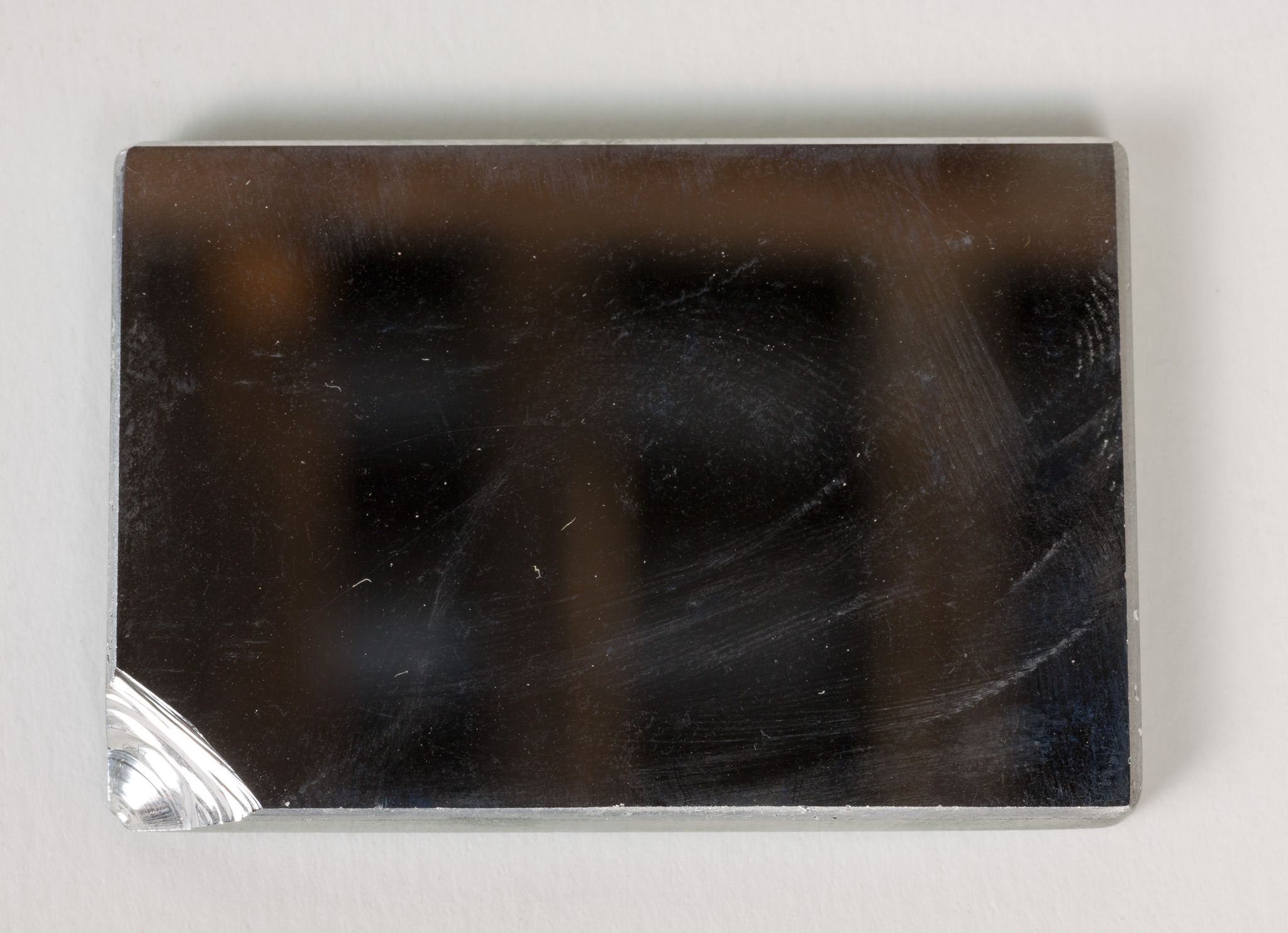 (E) Specchio rettangolare con un angolo sbrecciato