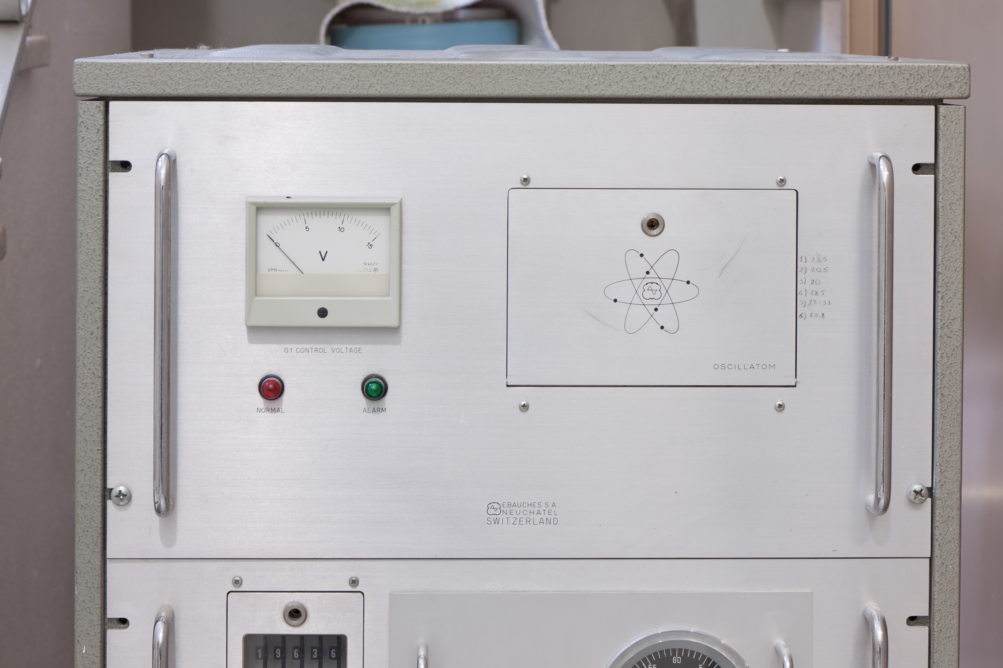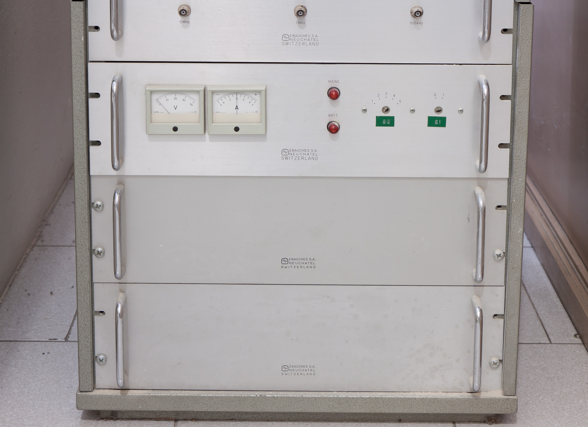 - Rack di strumenti elettronici che facevano parte di un orologio atomico (?).