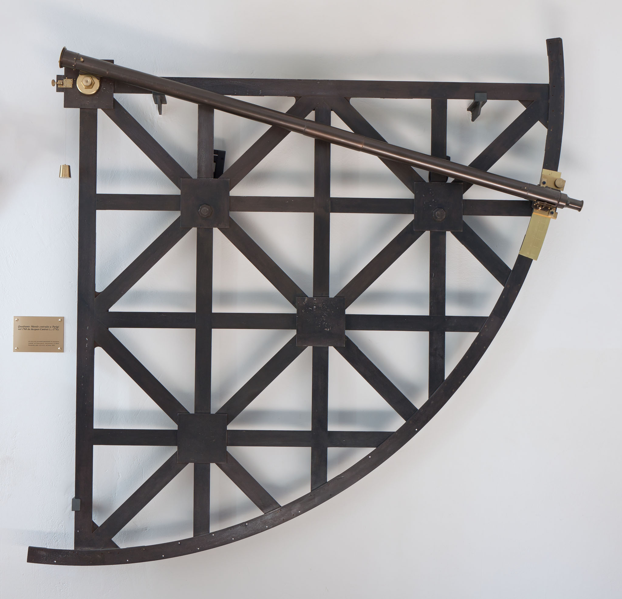 Il quadrante murale del costruttore francese Canivet (del 1768), uno dei primi strumenti di precisione installati all'Osservatorio dopo la sua fondazione. Lo strumento è attalmente esposto sul fondo della sala POE della sede di Merate.