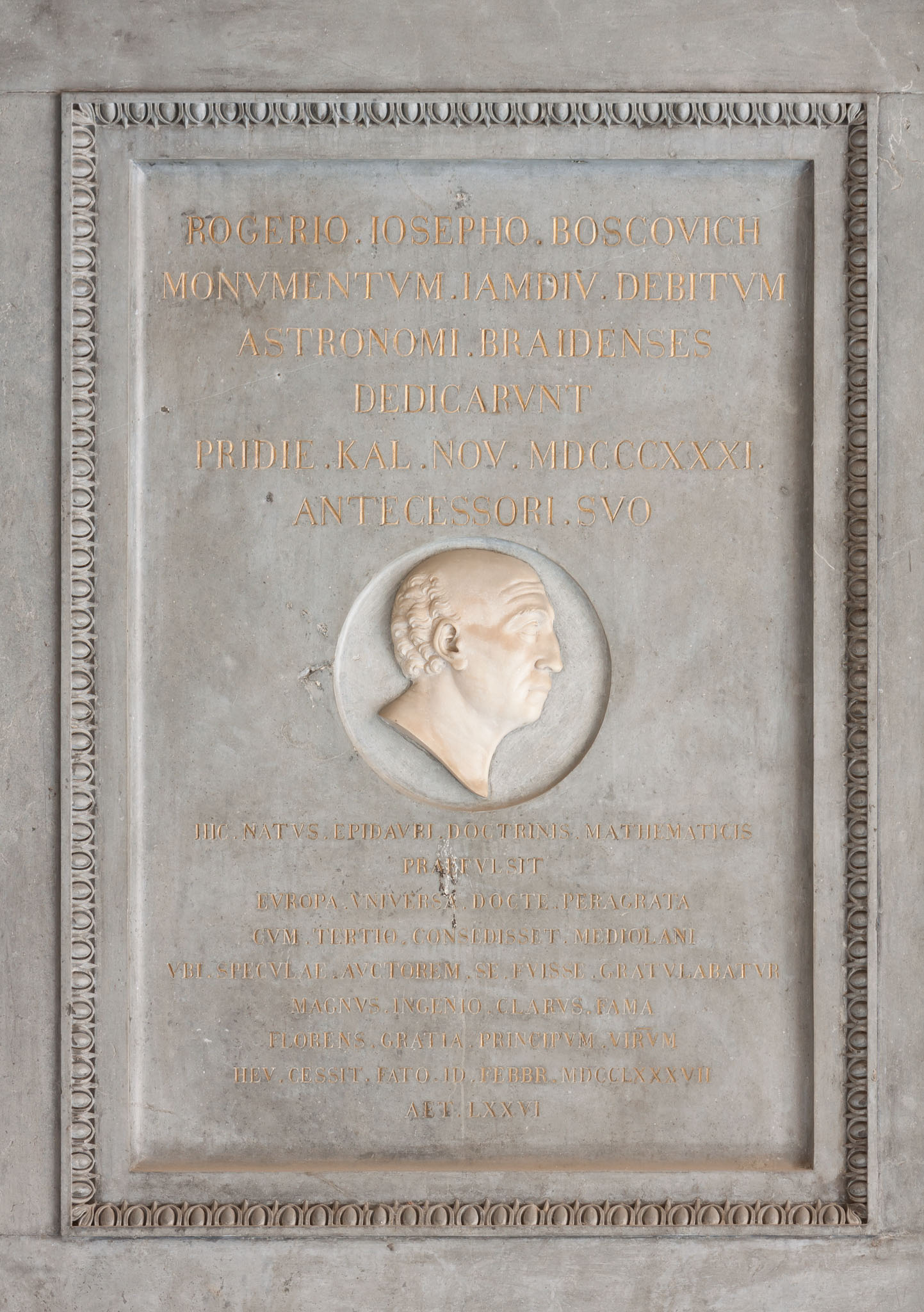 Monumento commemorativo di Ruggiero Giuseppe Boscovich (1711-1787) situato nei corridoi dell'Accademia di Brera.