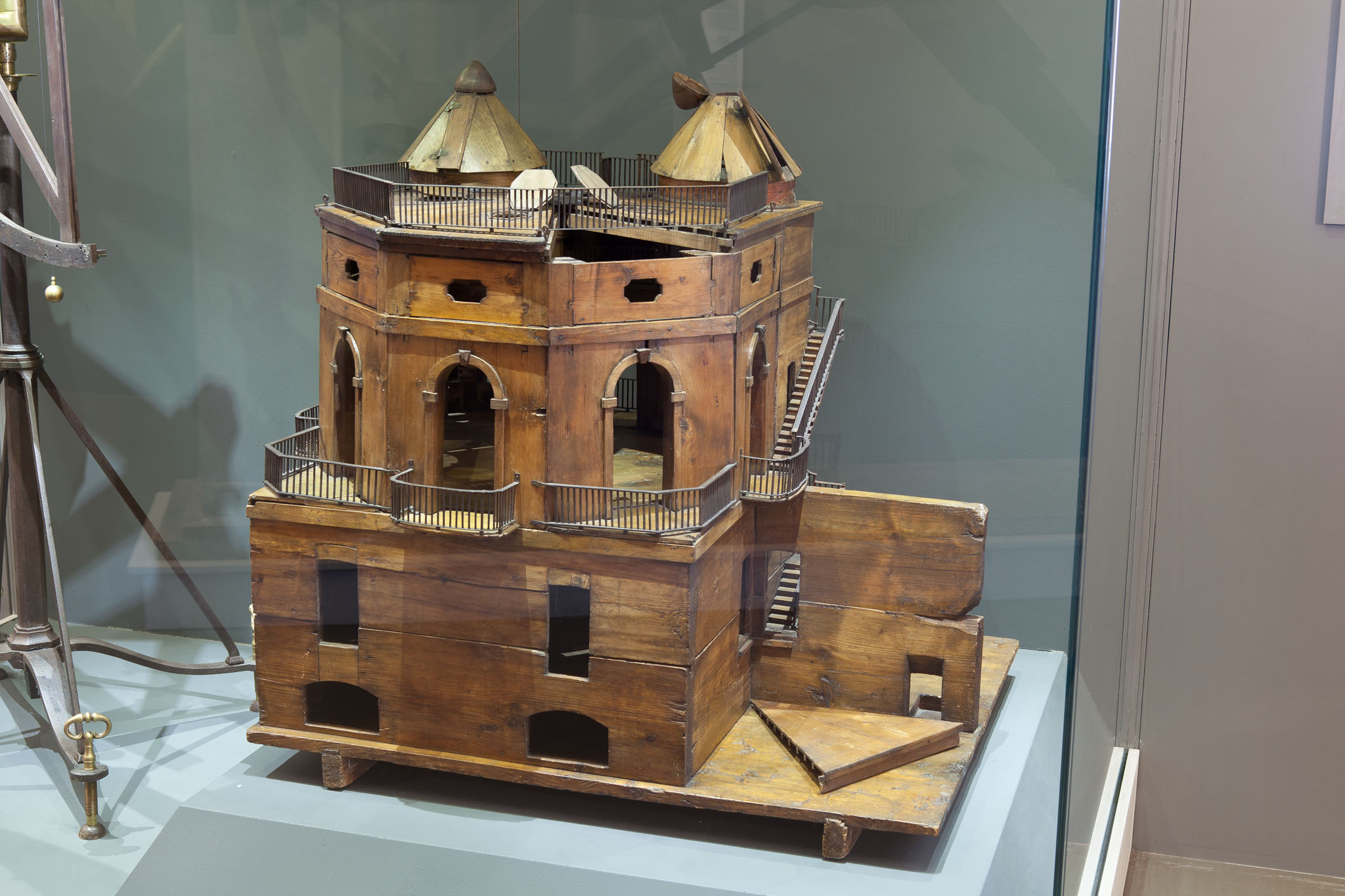 Modello ligneo originale della specola di Boscovich, nella teca in cui è attualmente esposto al Museo Nazionale della Scienza e della Tecnologia Leonardo da Vinci di Milano.