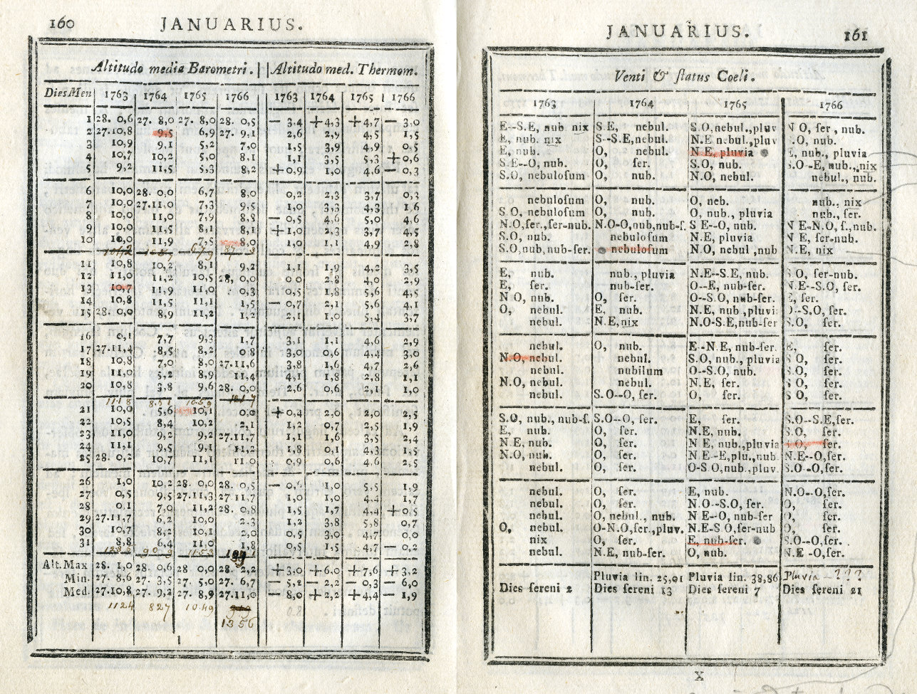 Prima pagina delle tavole di osservazioni meteorologiche effettuate all'Osservatorio di Brera, tratta dalle Effemeridi di Milano per il 1779. Come risulta dal documento, le osservazioni meteorologiche furono iniziate in modo sistematico dal padre Louis Lagrange nel gennaio 1773, l'anno prima che venisse costruita la torretta di Boscovich.