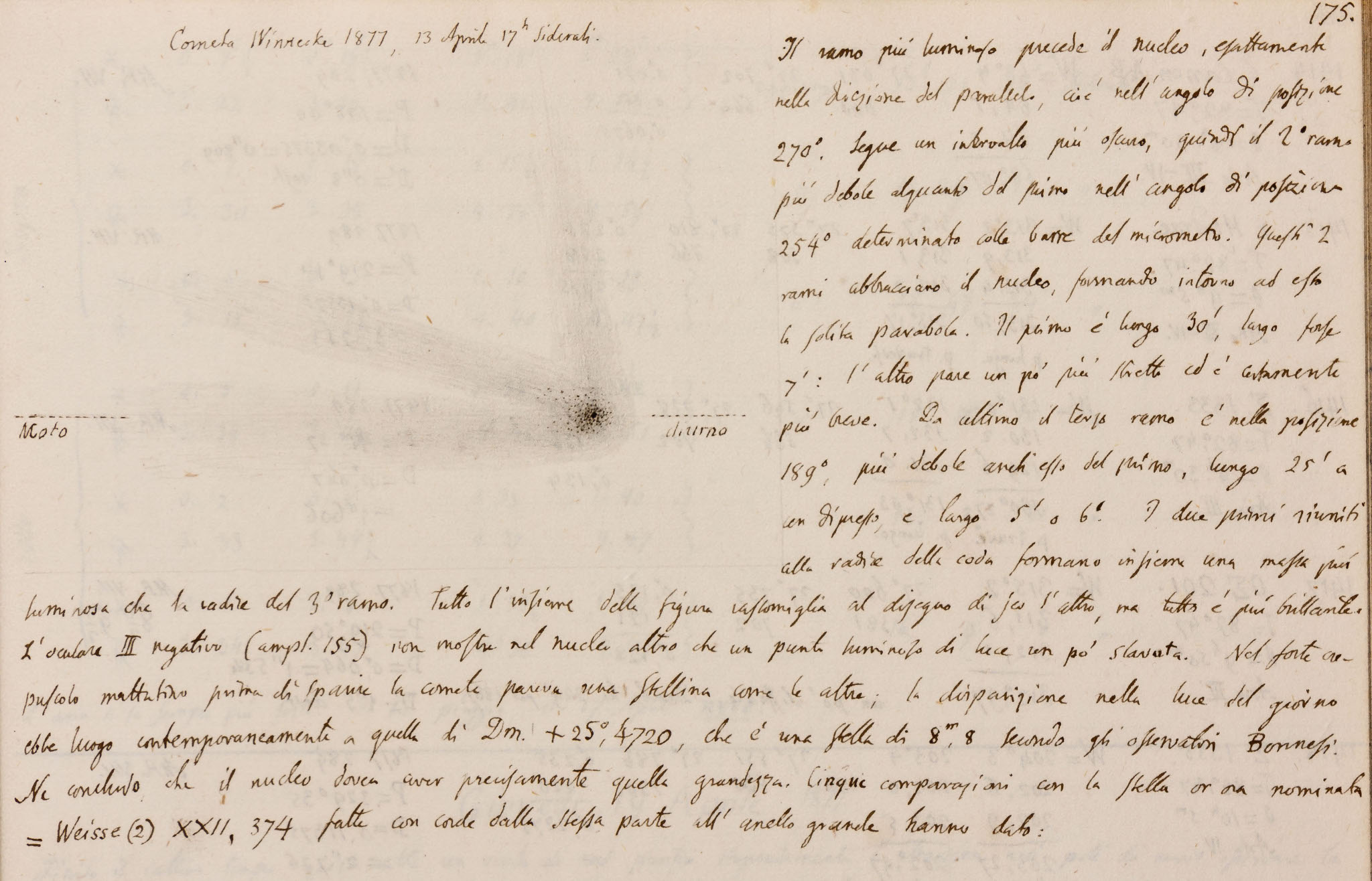Un'osservazione della cometa di Winnecke (dai diari osservativi di Schiaparelli, 13 aprile 1877).